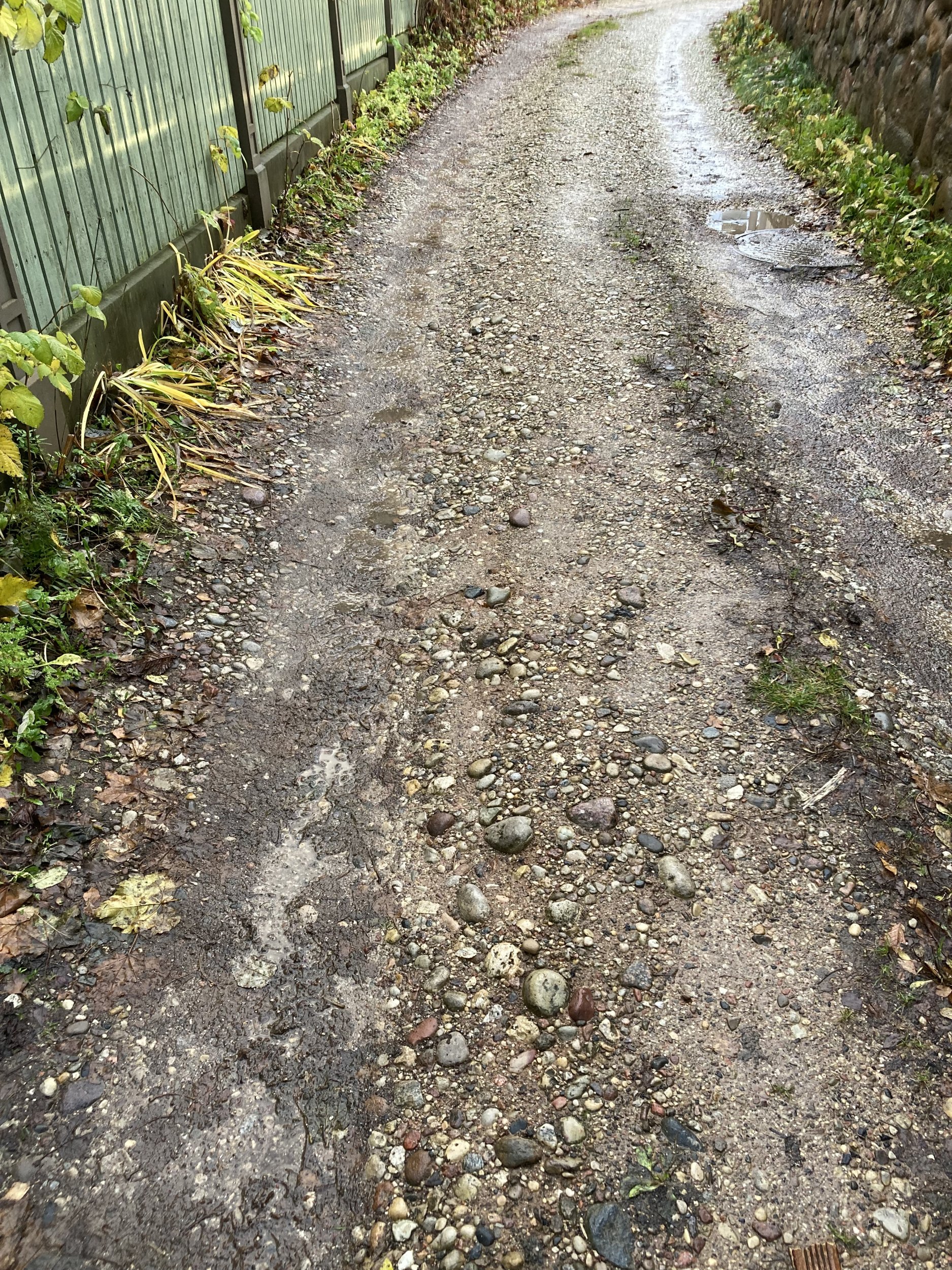 Oleks vaja teha tee võimalikult siledaks, et saaks vedada suuri prügikaste. Ühes roopas asub kanalisatsioonikaevu kaas, mida peab arvestama kõrguse planeerimisel.