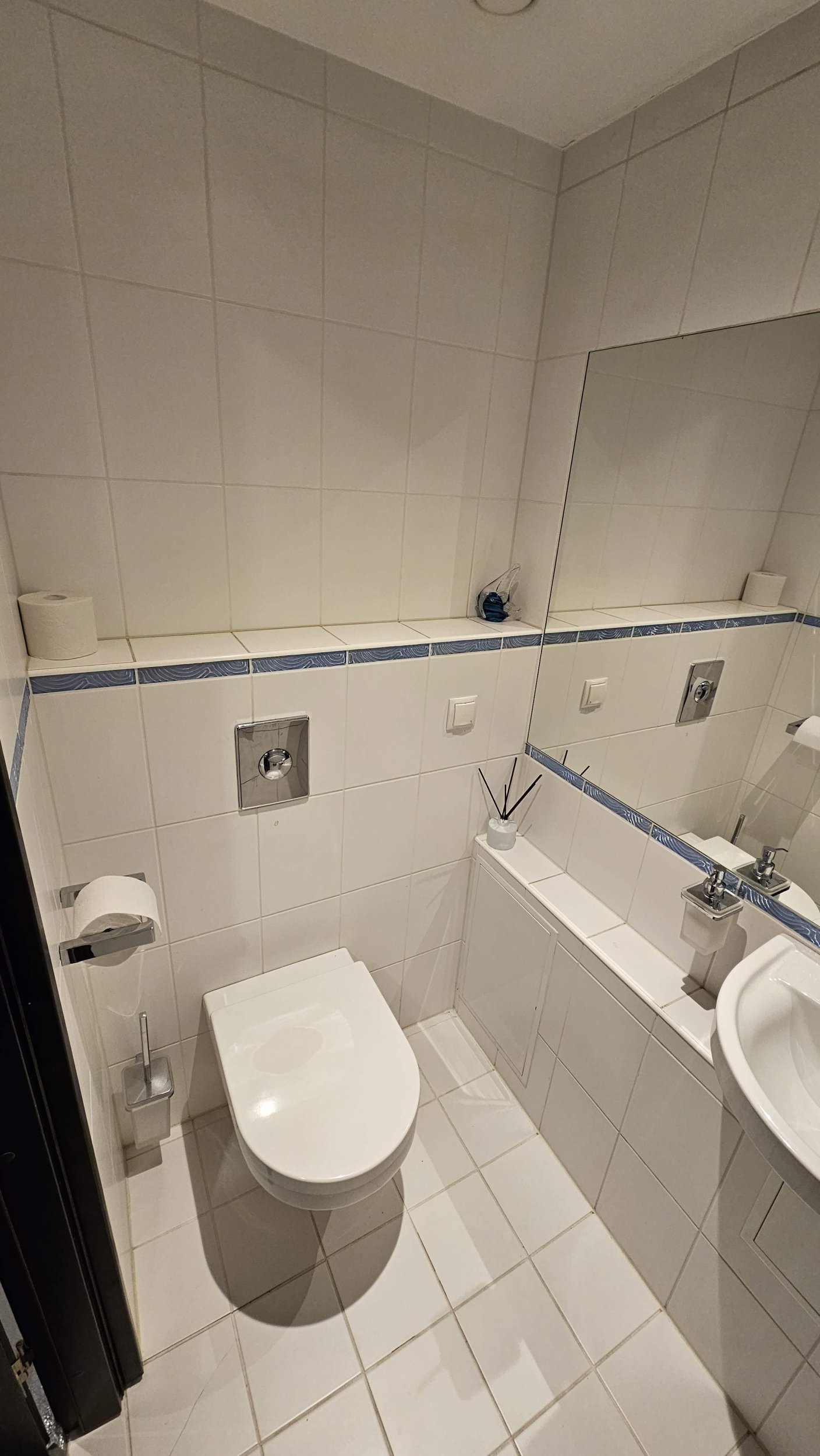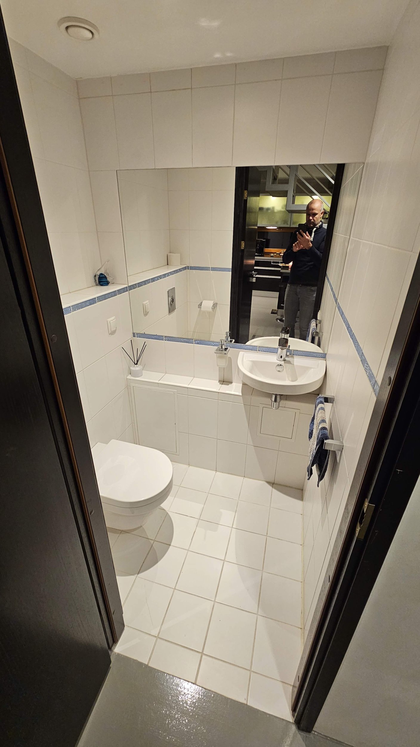 WC-potti vastas olev ja peegliga seinad on kiviseinad, wc-potti-ga sein on minuteada kipsplaadist. Sooviks ka teha see sein, mis on praegu peegliga, lamedaks, ilma karbita allpool.