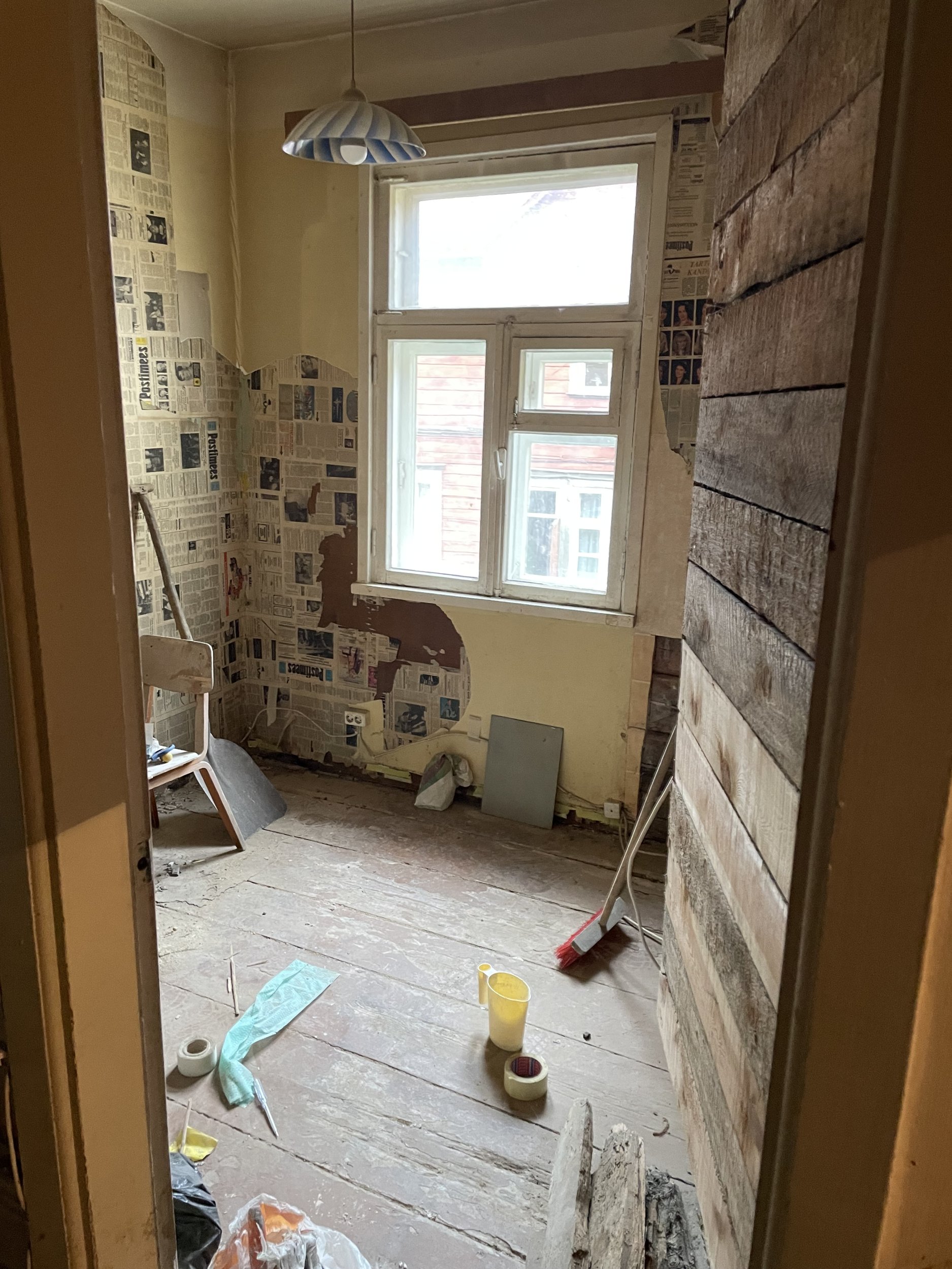 Vanas puumaja korteris renoveerida kõrvuti asetsevad köök ja vannituba (laudsein eraldab neid ruume). Ruumid on tühjaks lõhutud ning piltidel olevas seisukorras. Viimsitlusmaterjalid (keraamilised plaadid, linoleum, lõppvärv) ja sanitaartehnika ostan ise, kuid üldehituses vajamineva (kips, pahtel, kruvid ja kinnitusvahendid, plaatimise ja hüdro materjalid, kruntvärv, ja muu vajalik) võiks arvestada pakkumisse.