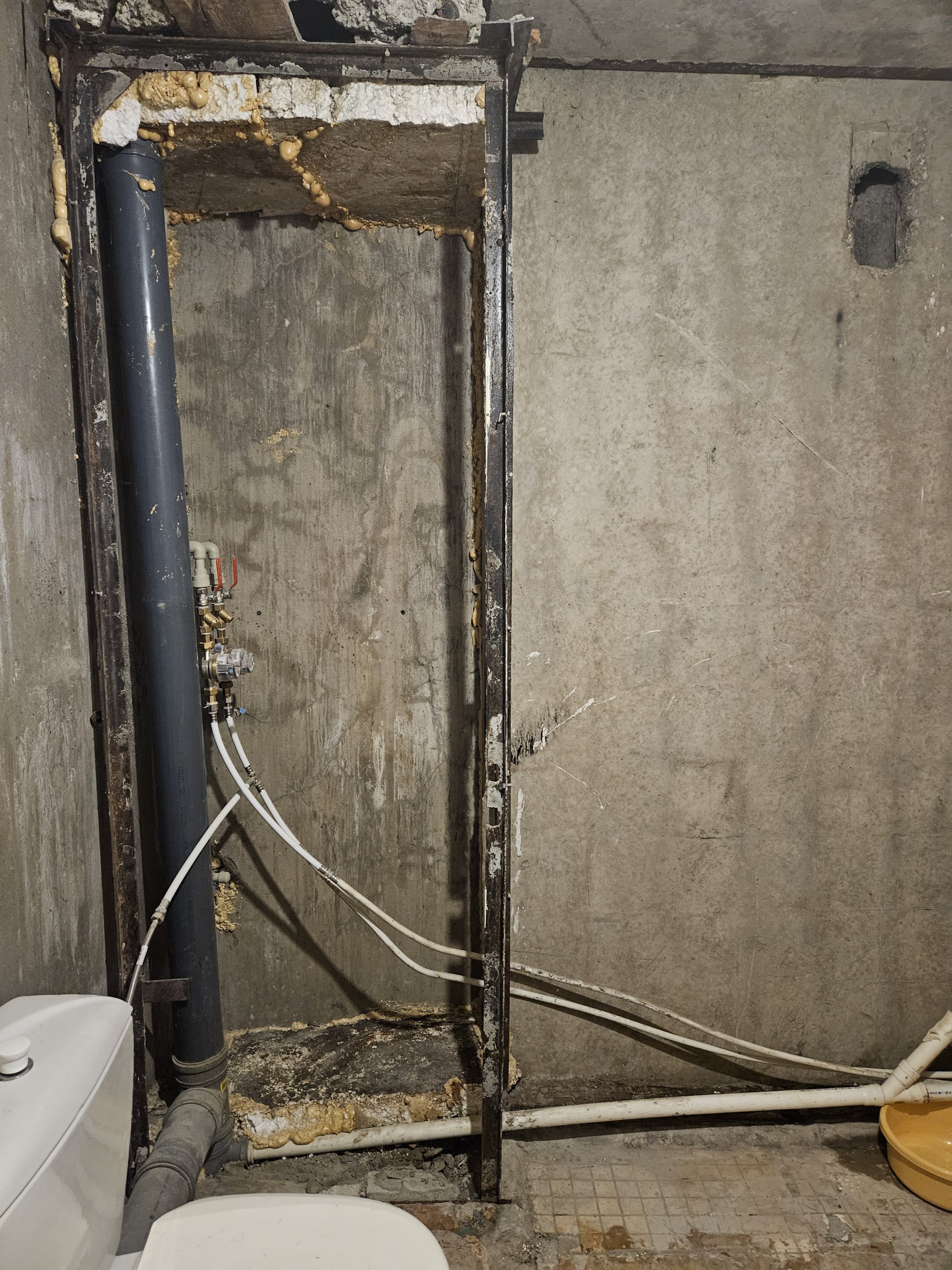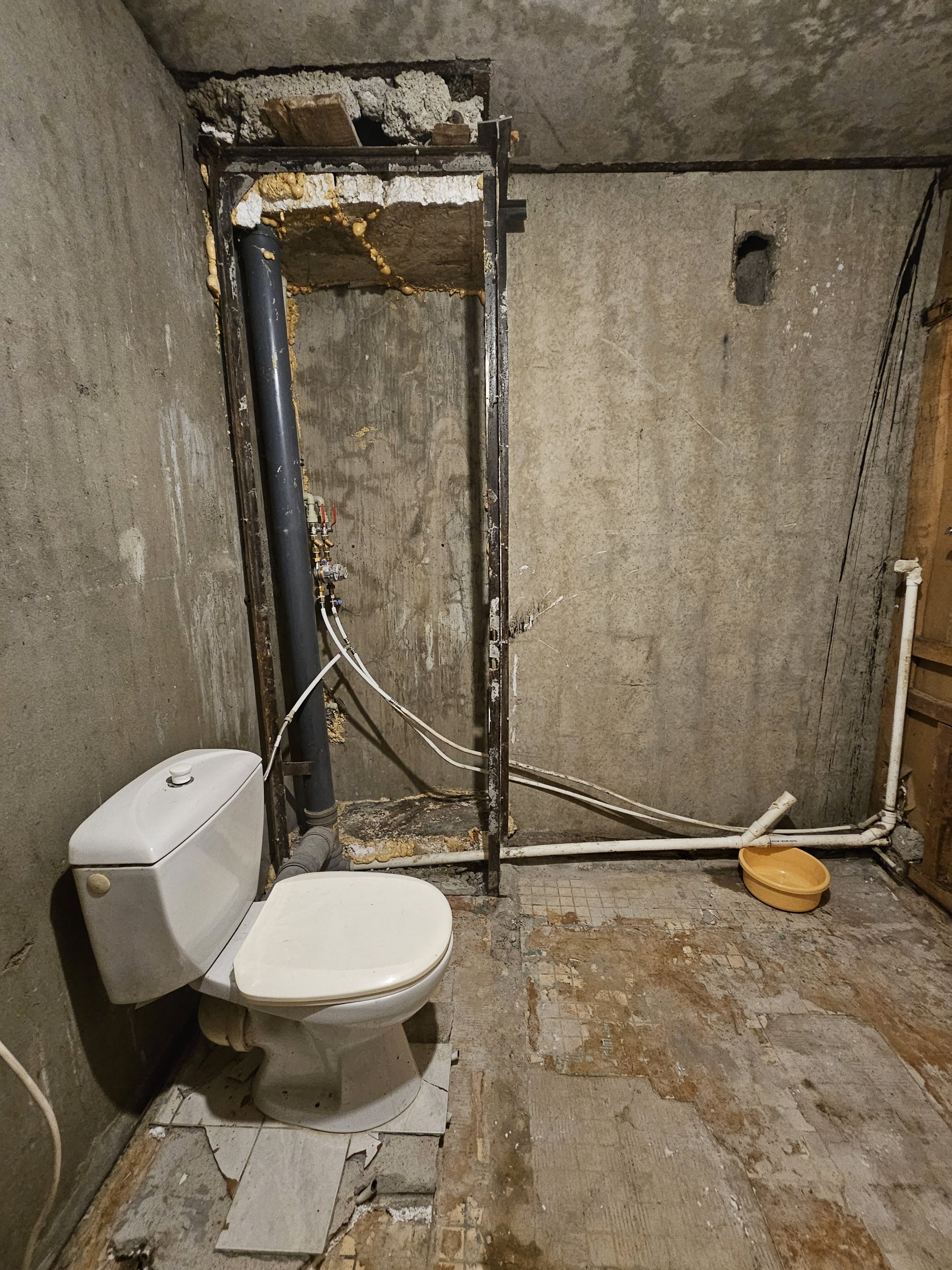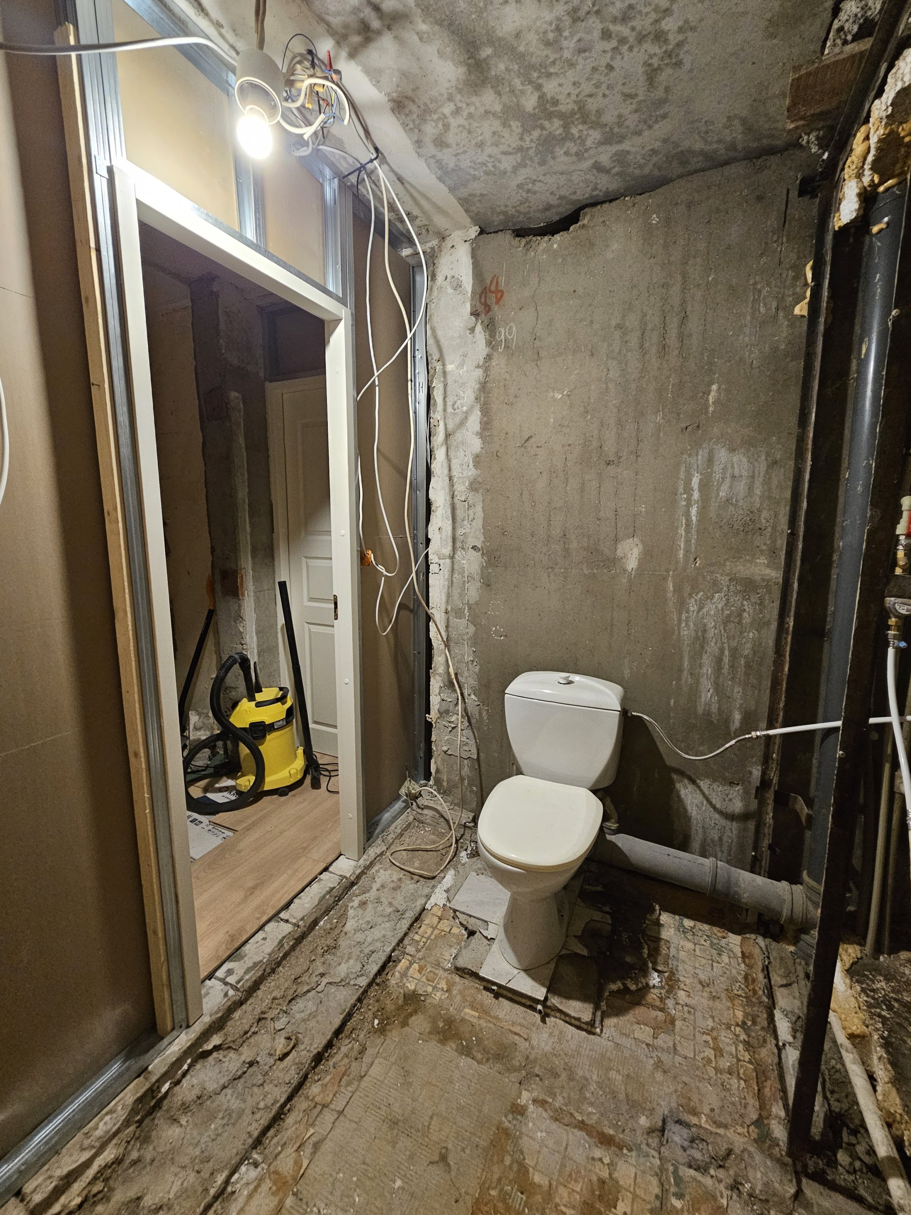 Vaja teha uus põrand+põrandaküte, uus sein(vannitoa ja köögi vahele) ning vannitoa ning esikuvahelise seina lõpetamine, karkass, kips, hüdroisolatsioon, põranda ja seinte plaatimine. Uus lagi.