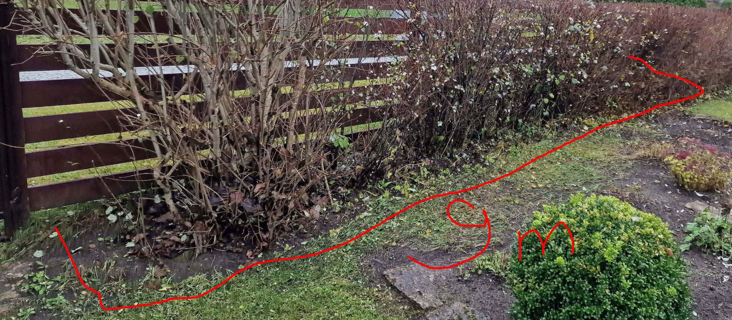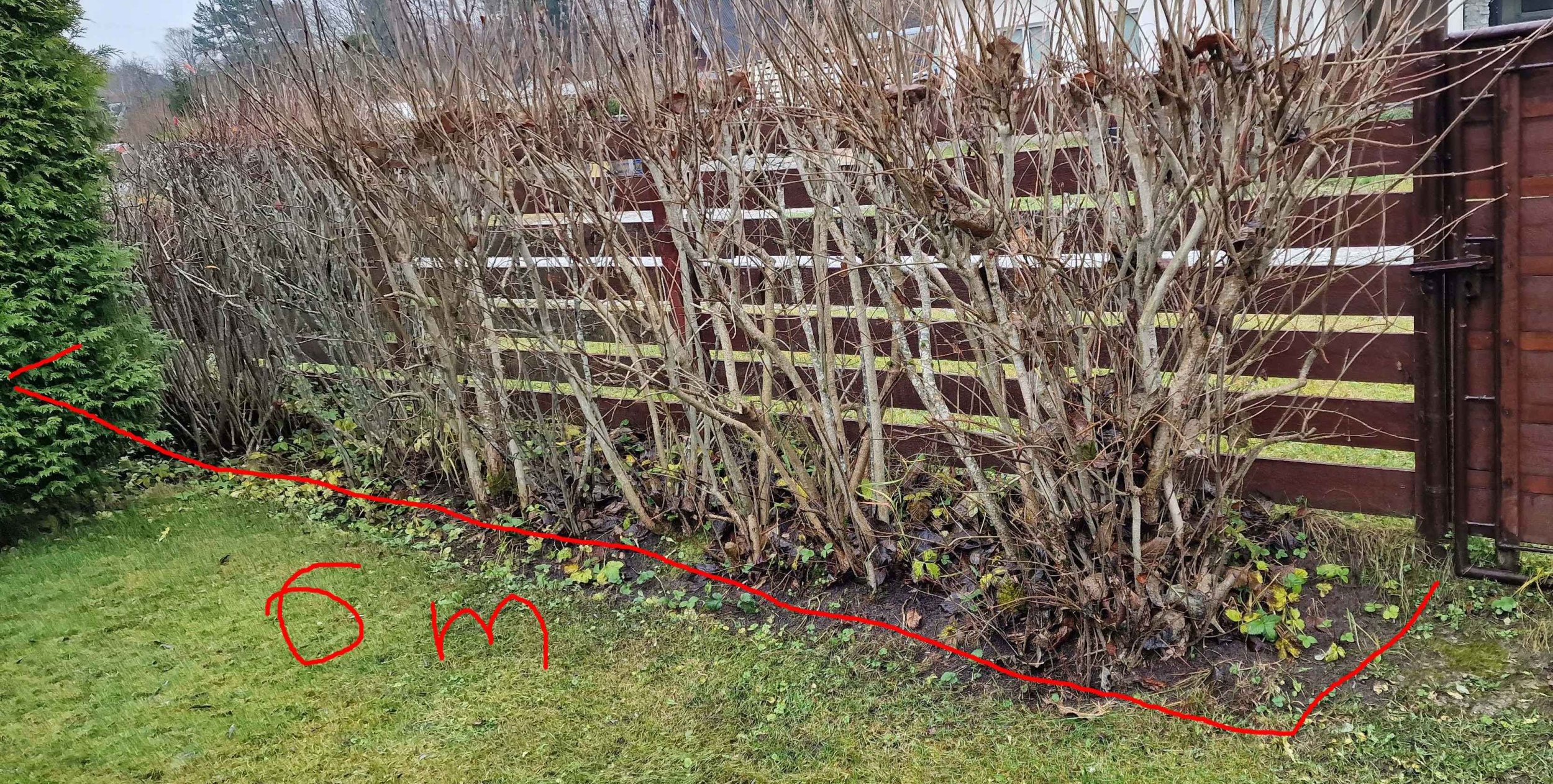 Olemasoleva põõsasheki (sirel + aroonia) ca15m mahavõtmine, väljajuurimine ja äravedu (utiliseerimine). Väljakaevatud osa taastamine uue pinnasega teostaja vahendite ja materjalidega.