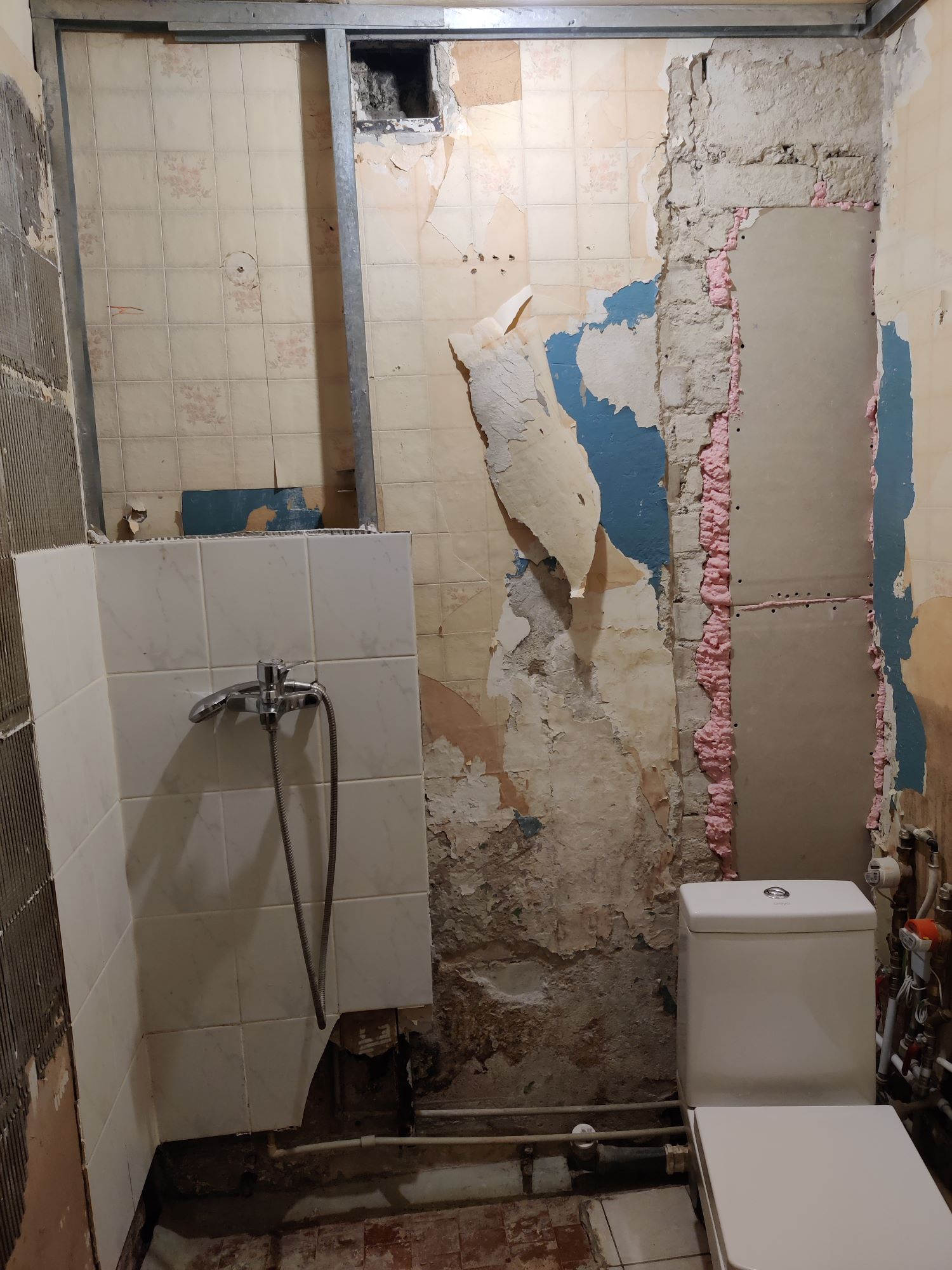 Tere pakkumine tehtud vastavalt hanke kirjelduse järgi.Meie poolt lammutus,uute seinade ehitus.torutööd ,elektritööd ja plaatimine.Tööaeg max kuu.Materjal tellija poolt.Garantii 2aastat.Lgp S.E