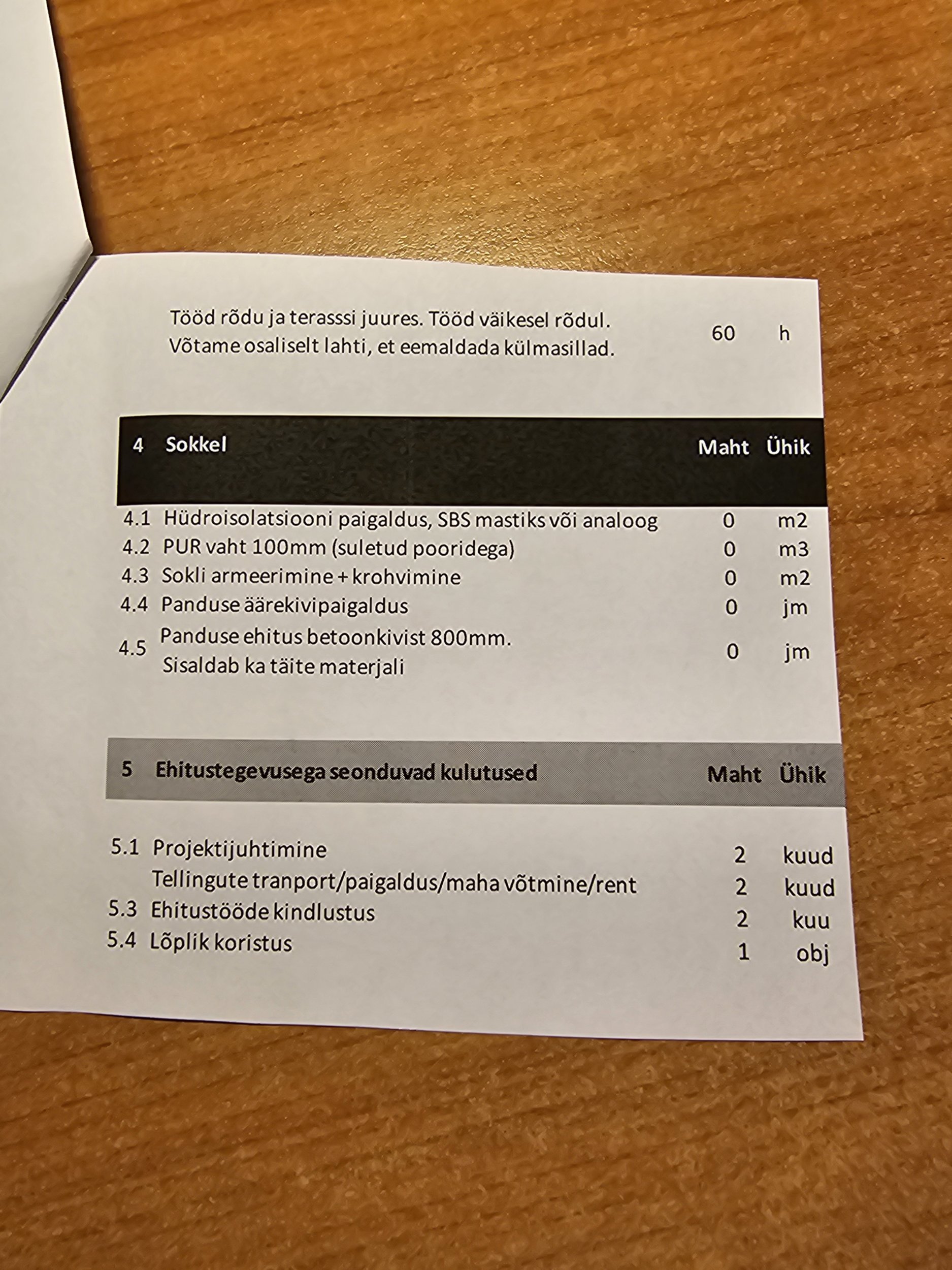| Ehitusmaterjalid: | Töö tellija poolt |