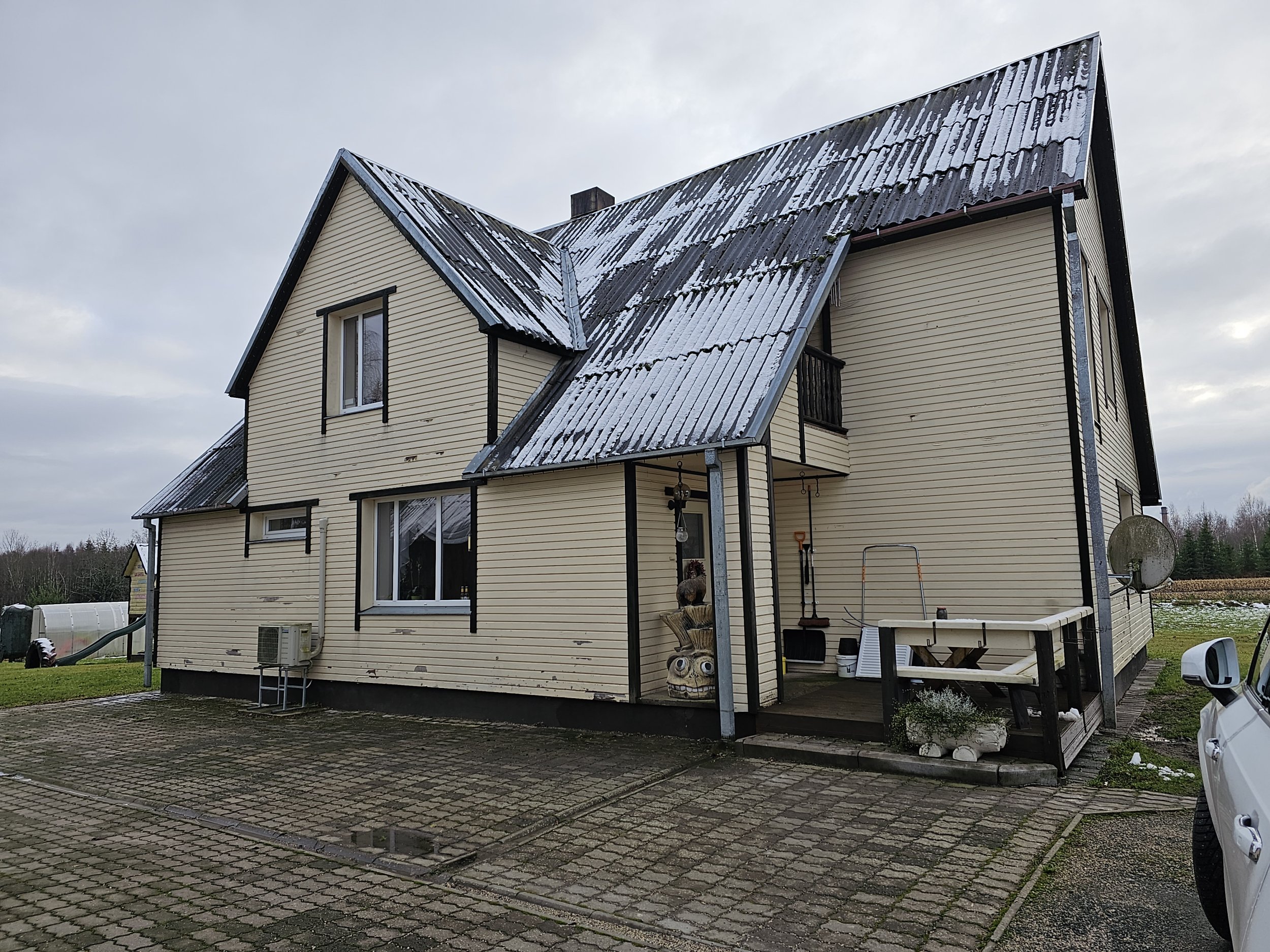 Eramaja oluline renoveerimine. Vaja vahetada külmkatus, fasaad, sokkel lisaks paigaldada soojustagastusega ventilatsioon. Vahetamist vajavad ka aknad. Praegu eterniit katus uus Ruuki klassikprofiil. Hetkel majal puitvooder uus tsementkiud laudis, soojustus vill uus tuleb pir plaat, sokkel hetkel soojustatud penoga ja krohvitud uus pur vaht +kiudplaat. Praegused aknad vaja eemaldada ja avad suurendada allapoole.