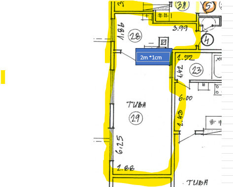 - Ehitada WC/vannitoa seinad – ristkülik 2m x 1m, joonisel sinisega