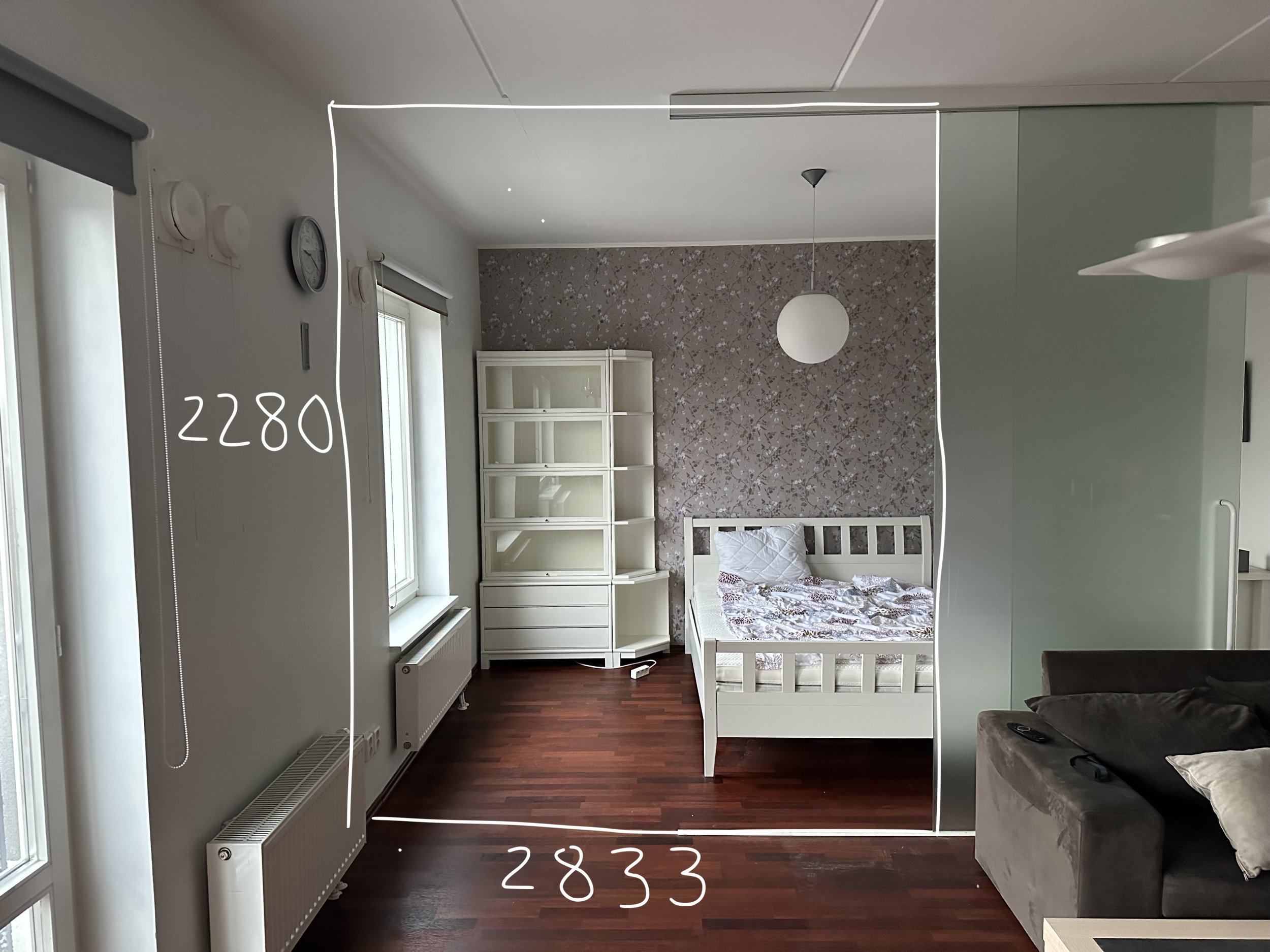 Ava mõõtmed, kuhu sein tuleb on: 2833 mm laius ja 2280 mm kõrgus.