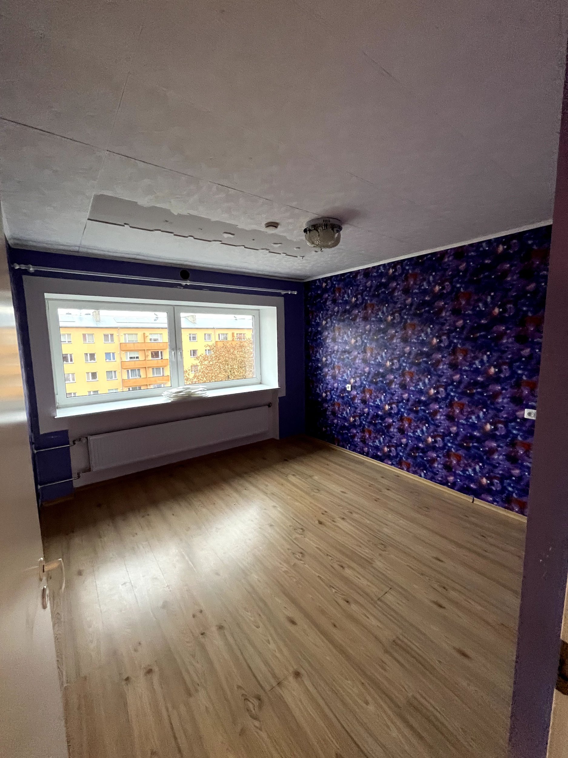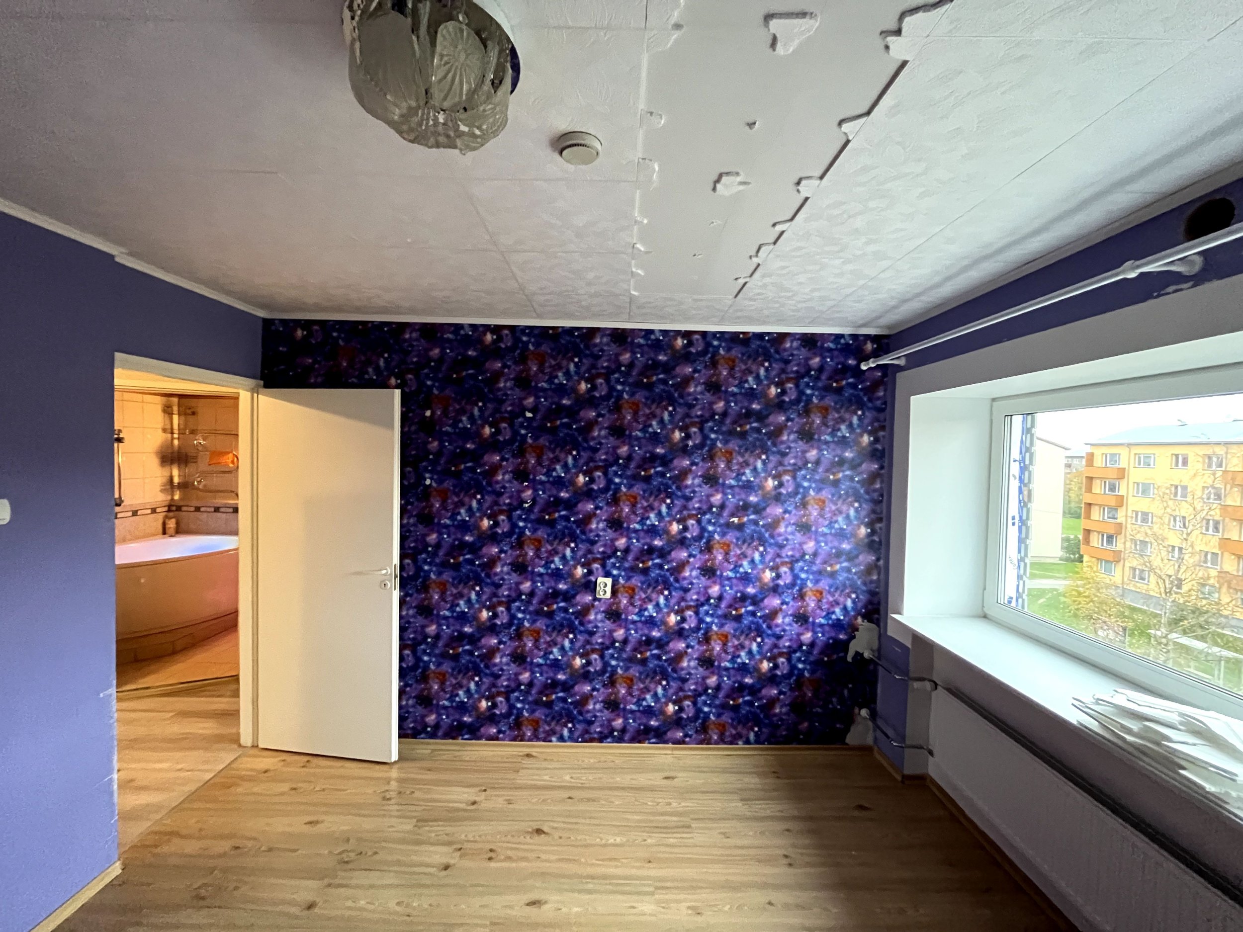 Seintelt tapeedi eemaldamine ja jääkidest puhastamine. Eelnevalt on seintel tapeeti pannes eemaldatud kõik vanad tabeedi kihid, seega peaks alles olema ainult 1 kiht tapeeti (täpsem olukord selgub kohapeal). Köögi seinad on värvitud ja seal pole tapeeti. Seintel pahteldada augud ja nurgad. Seinte värvimine strukuurvärviga : https://uku.eu/lubjatooted/lubivarv/. Elutoas 1 pikim sein hall (piltidel lilla tapeediga), ülejäänud naturaalne valge. Akna ümbrused on just hiljuti maja renoveerimise käigus korda tehtud ja üle värvitud, seega neid ei ole vaja struktuurvärviga värvida.
