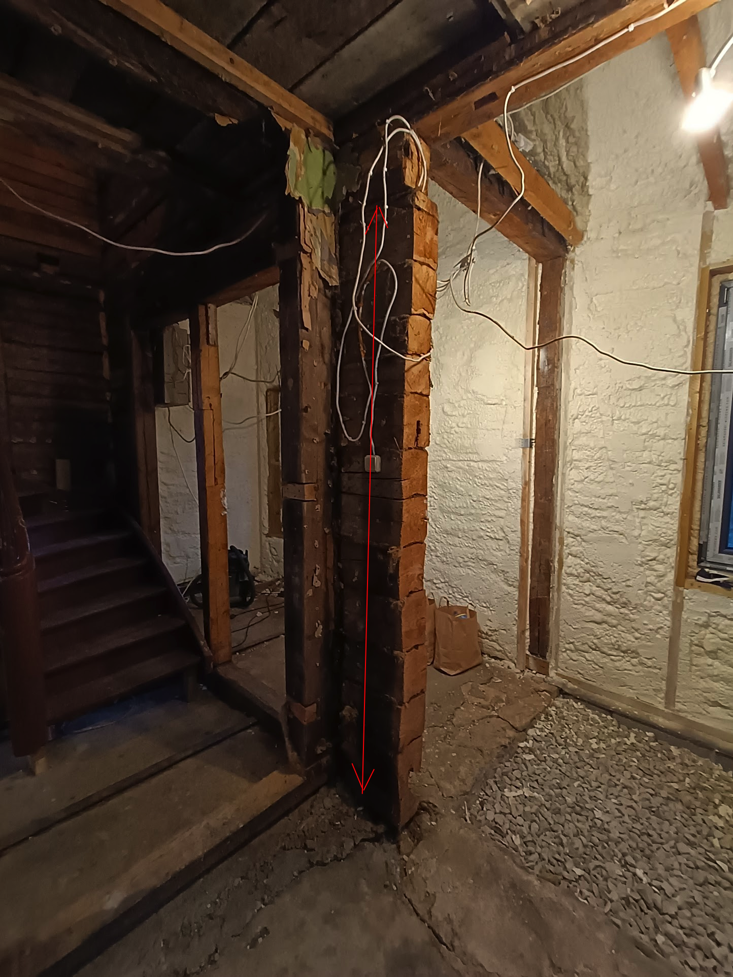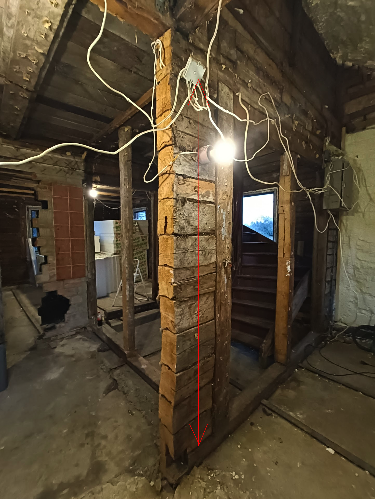 Üks tugipost vaja vahetada, teine tuleks uude kohta ning kolmas tuleks ühe vanema posti kõrvale kust vana palkmaja sein on eelmiste omanike poolt enamjaolt ära lõigatud. Ligipääs igal pool kergesti olemas