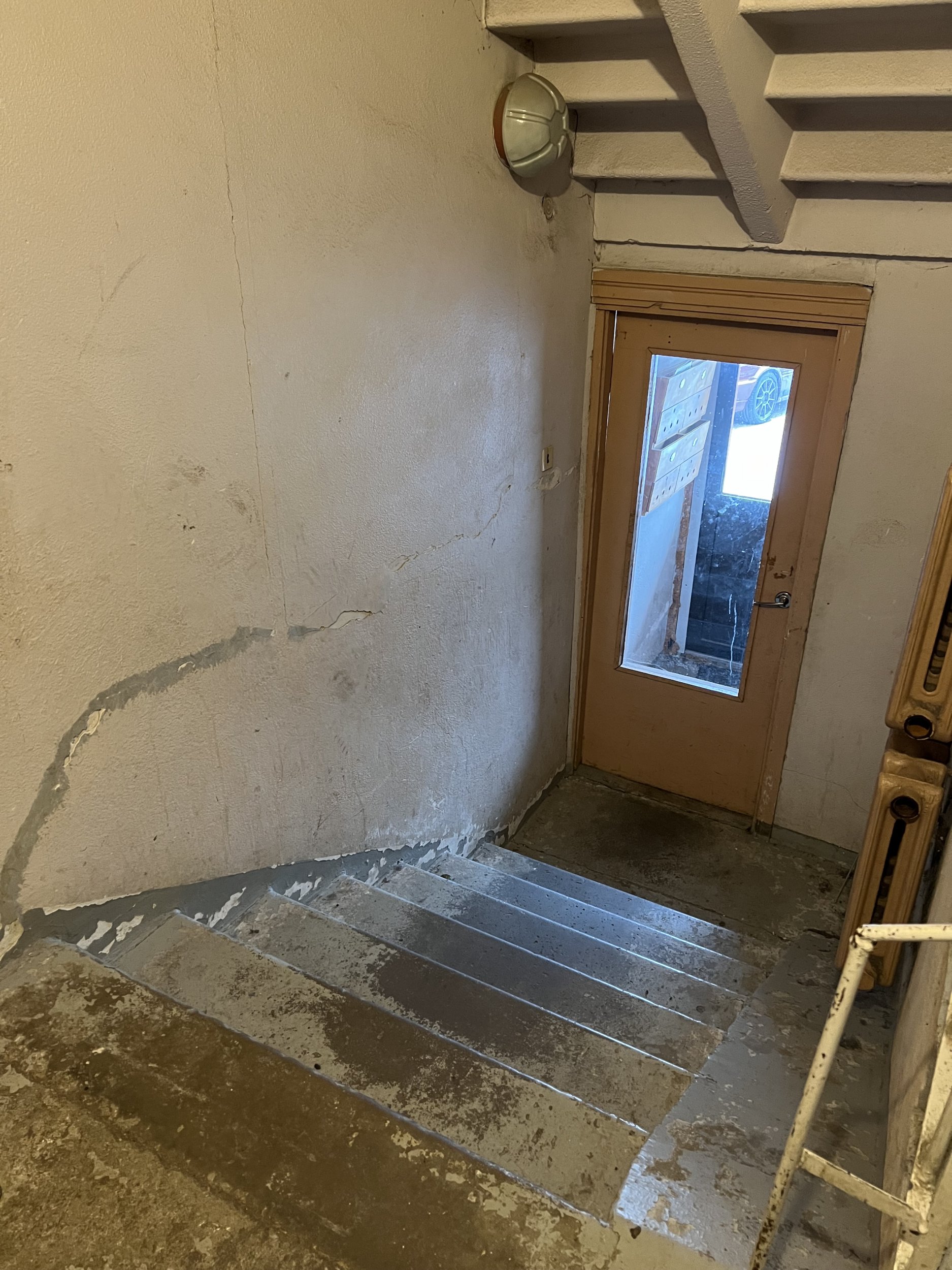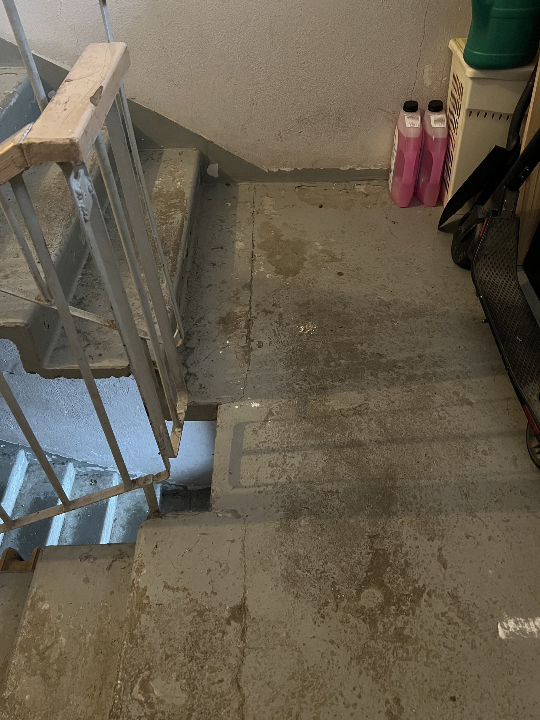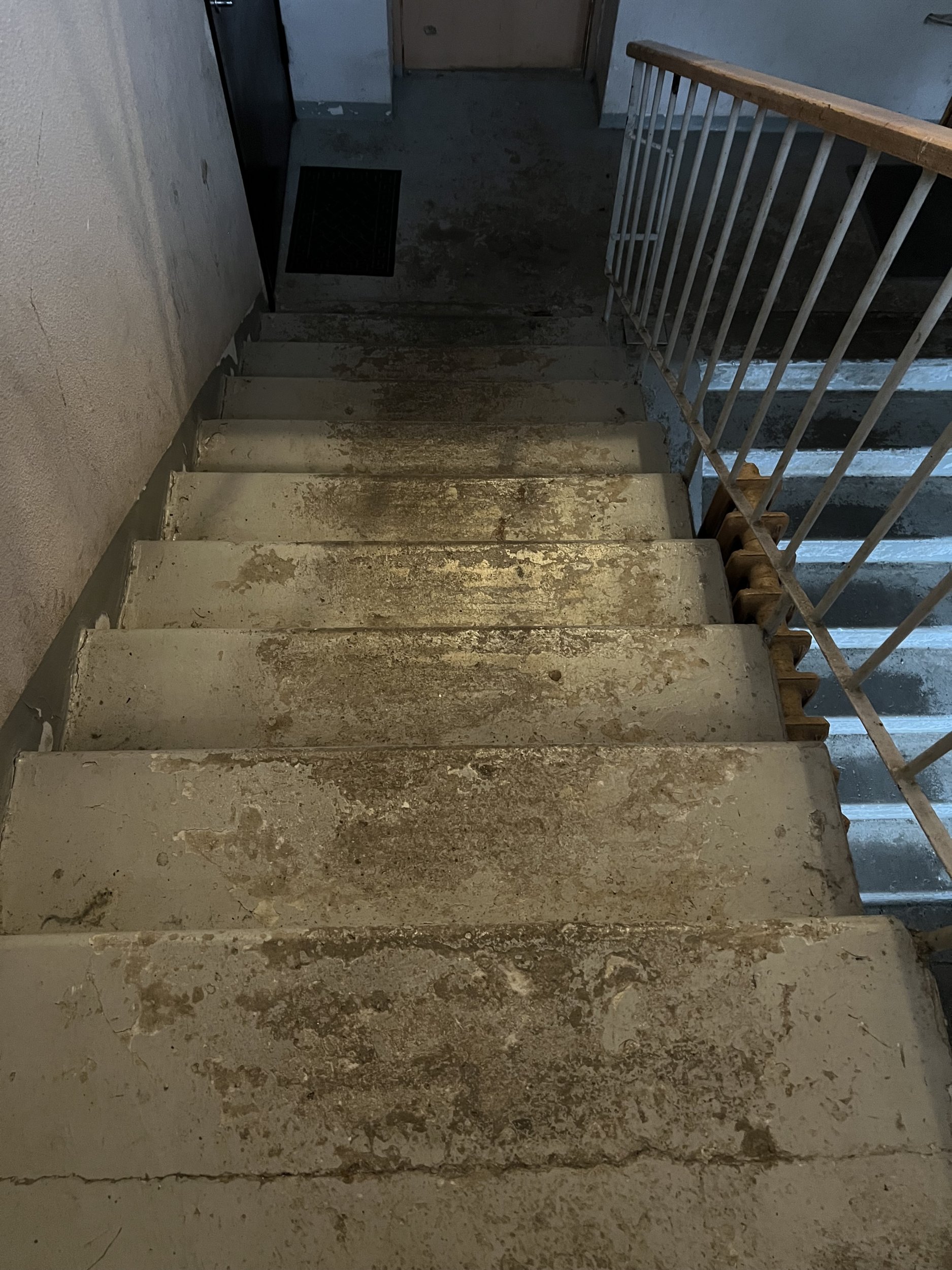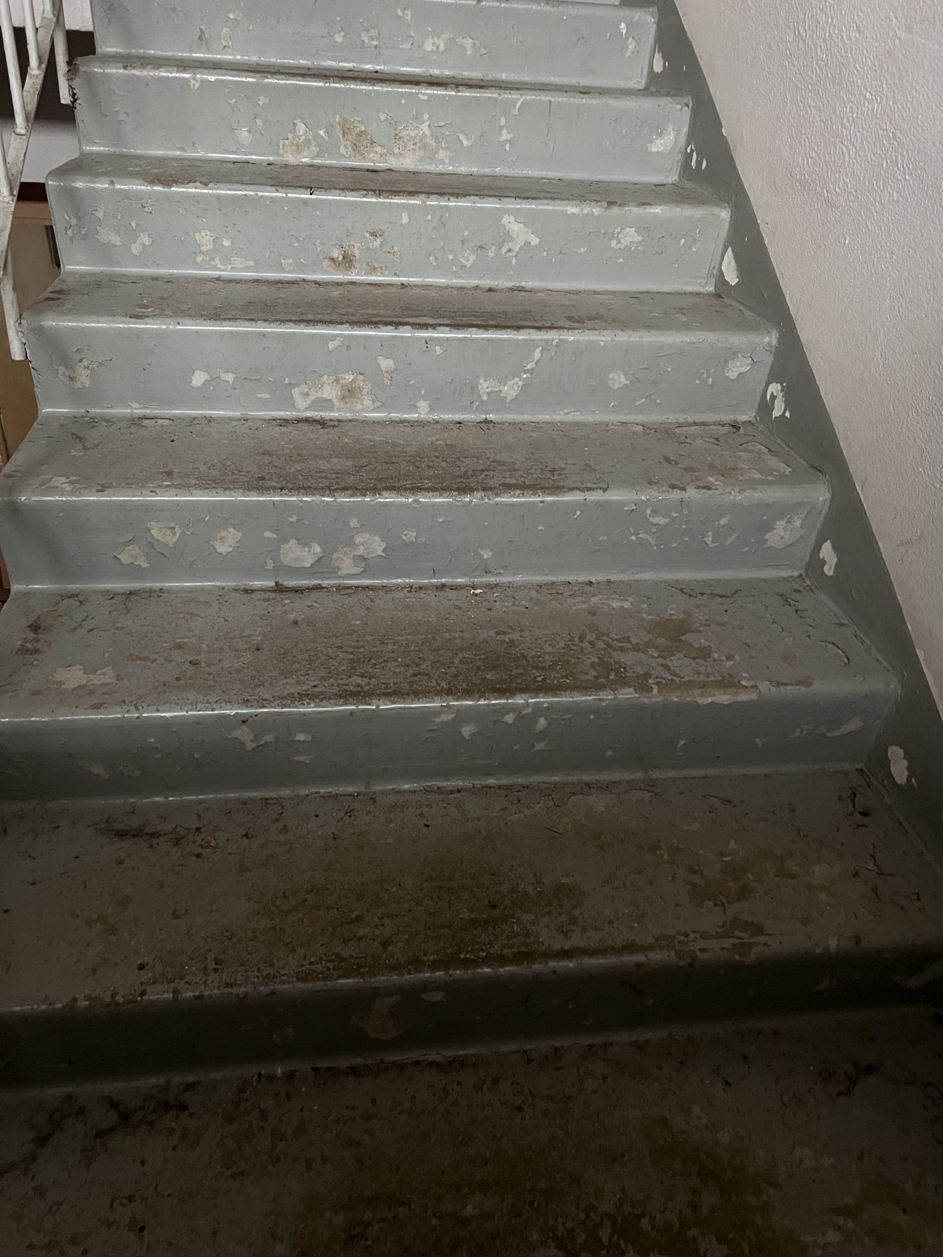 Trepp sooviks, et oleks kaetud epoksiidiga (ei tea täpselt mõisteid), hetkel kaetud värviga, mis on osaliselt maha kulunud ja kooruv. Vana värv on vaja eemldada eelnevalt. Plaatimise soov kõige madalal osal esimese ja tagumise väljapääsu ees.