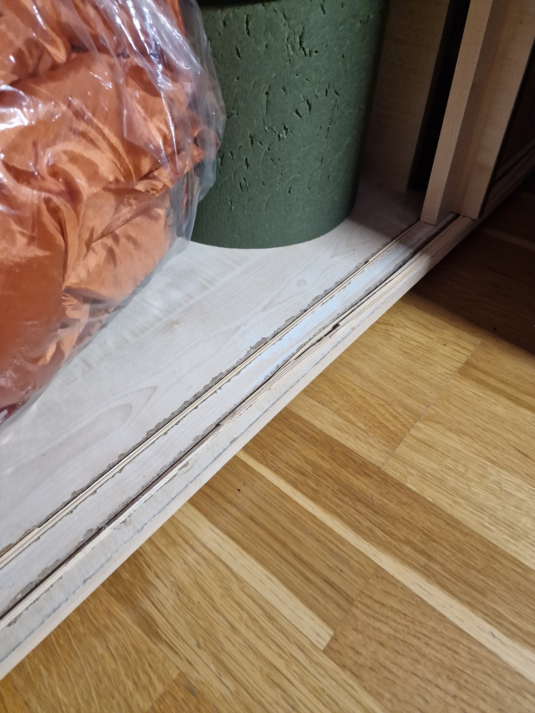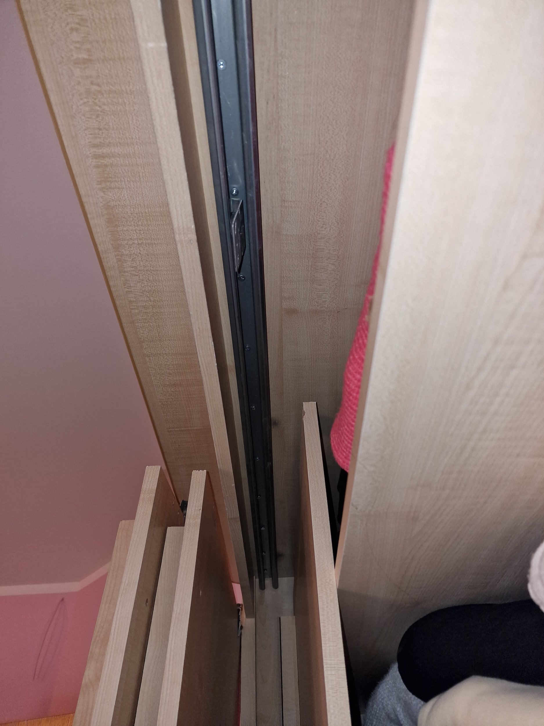 Mõlemal kapil uksed ei liigu korralikult. Ühelt kapilt on uksed täitsa eest ära tulnud.