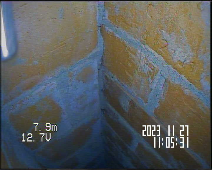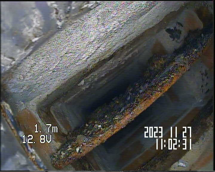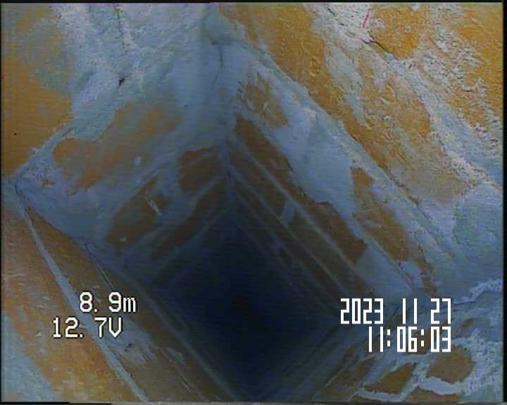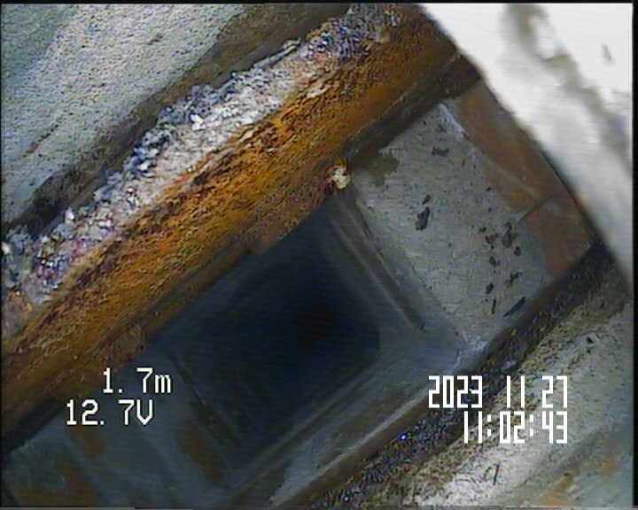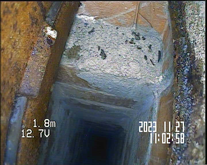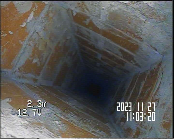 Tegemist on uue korstnaga, lõõr on puhas aga osade kivide vahel on segu kehvalt paigaldatud. Enne tööd me eemaldame korstnast valesti paigaldatud pöörsiibri luugi. Sattusime algaja otsa, ta oli koroona ajal töötu ja meie poolne tööõnnetus, et teda palkasime.
