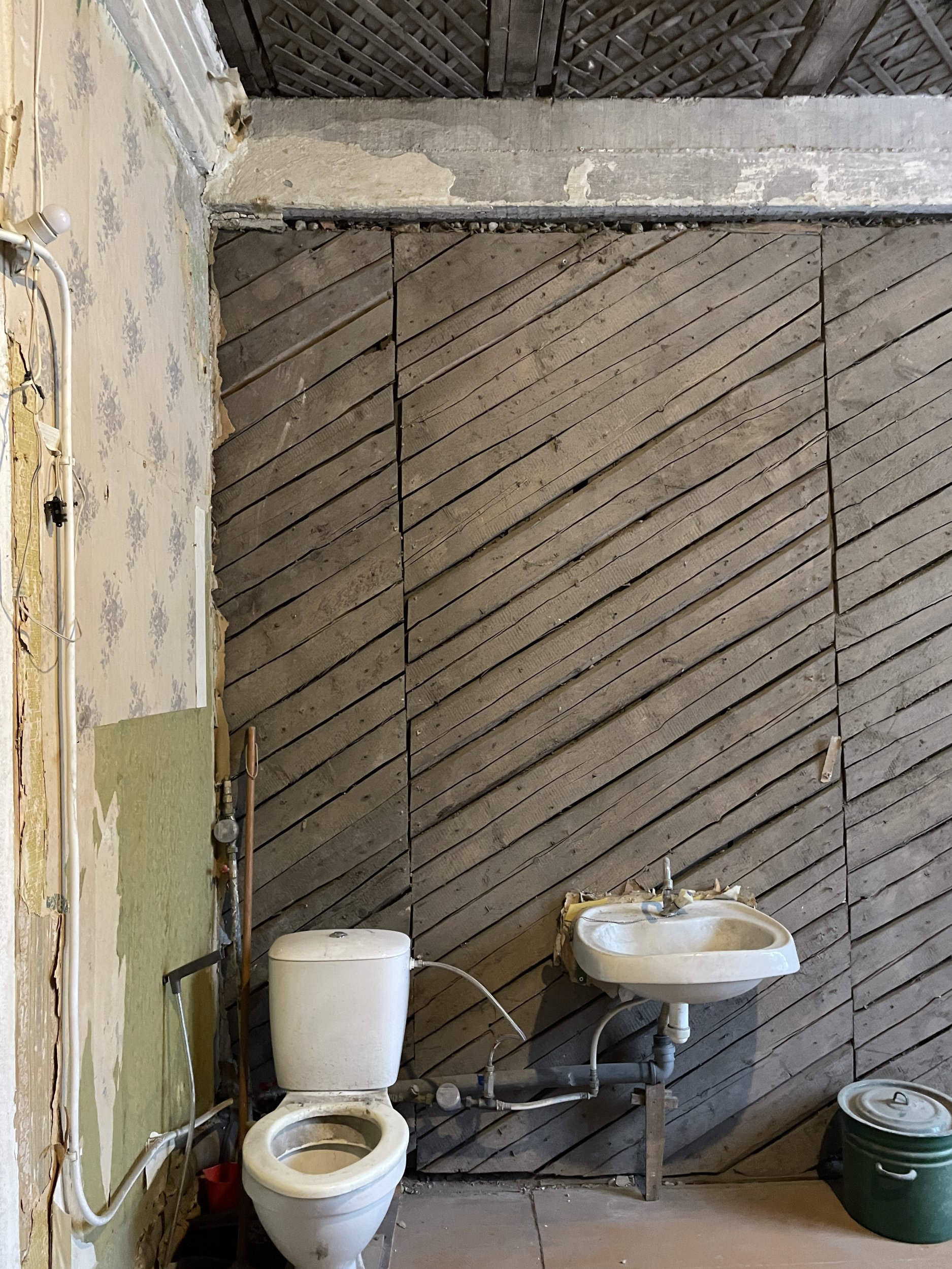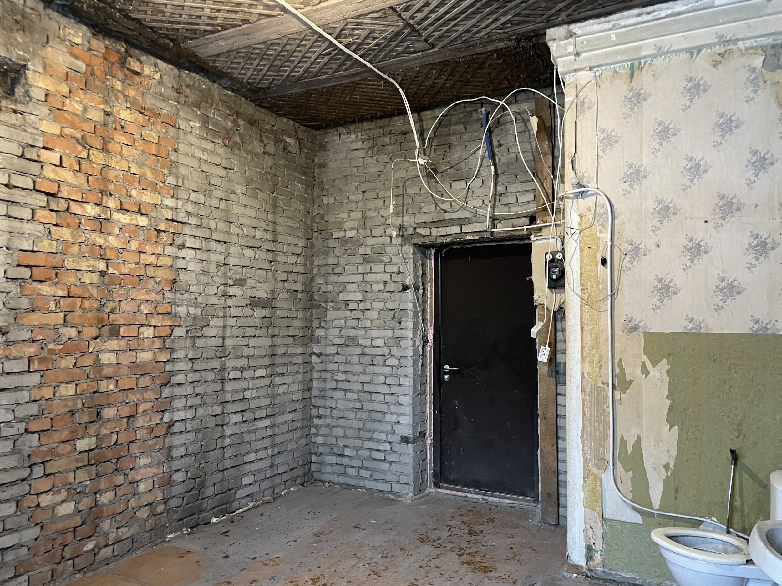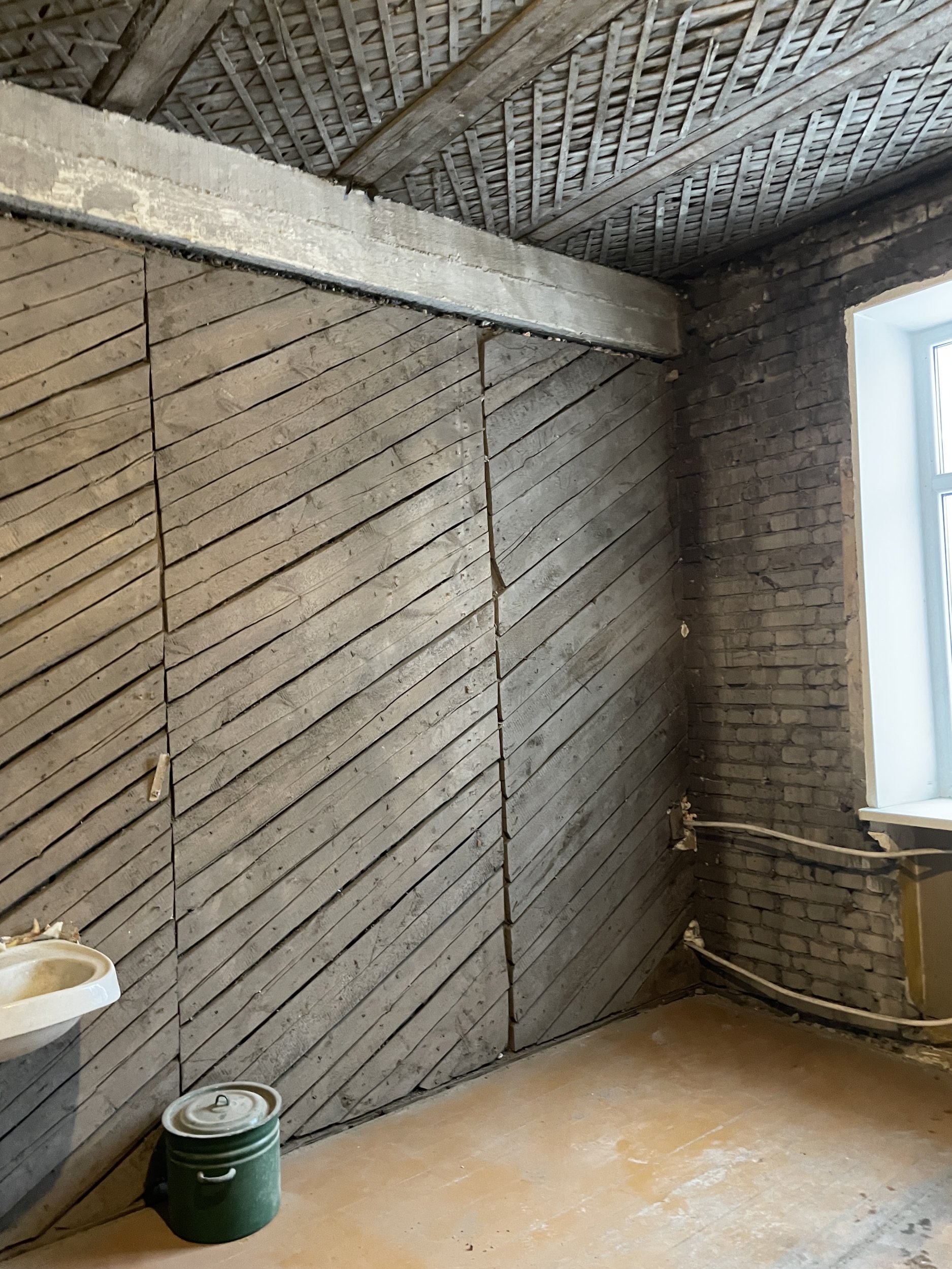 3. vasakus seinas puitlaudis ja tellistest korsten (korstnas on 4 lõõri, ühes neist on kanalisatsioonitoru ja teise lõõri tuleb uus ventilatsiooniava)