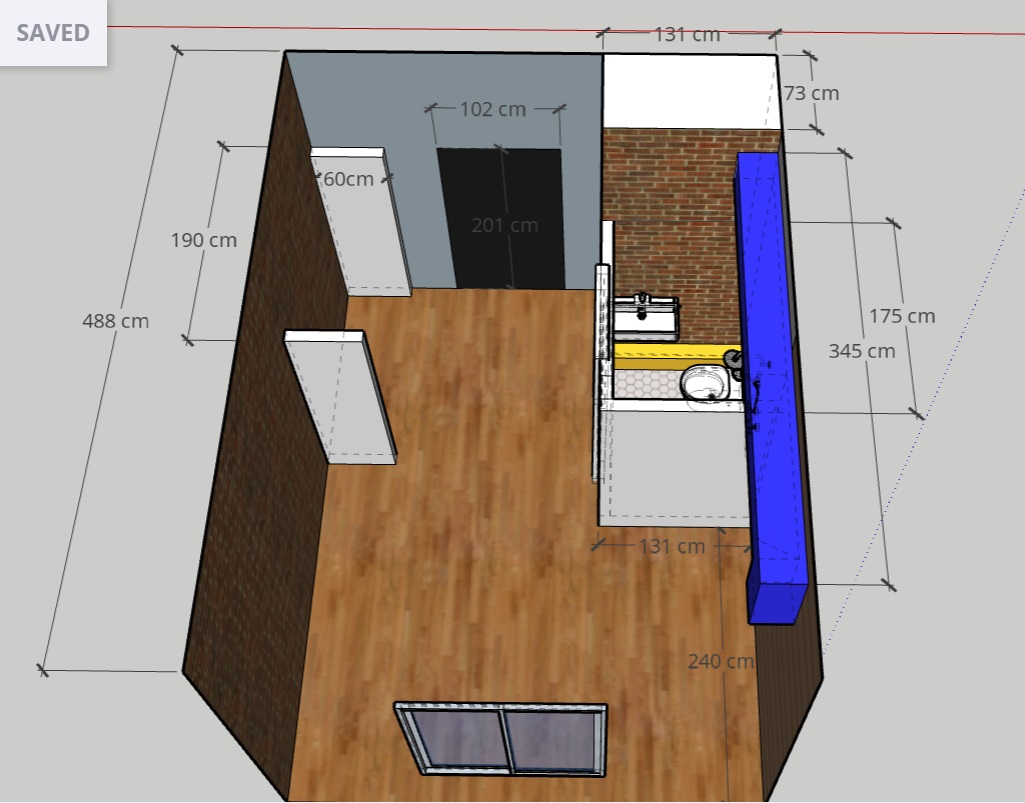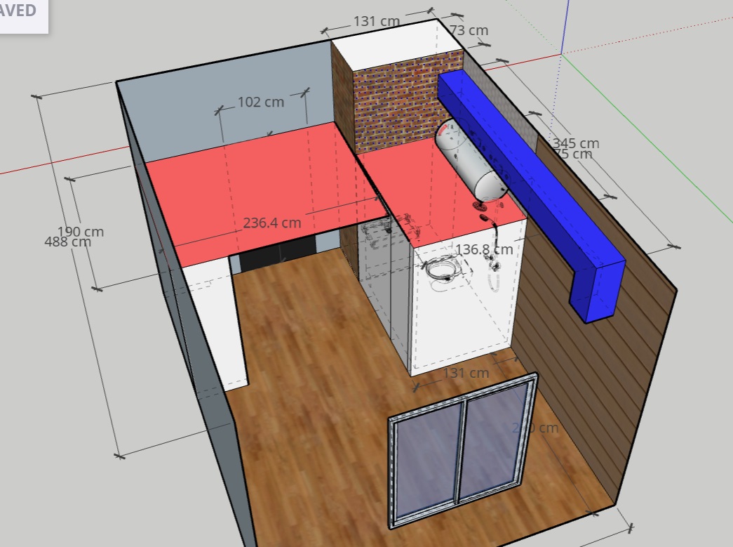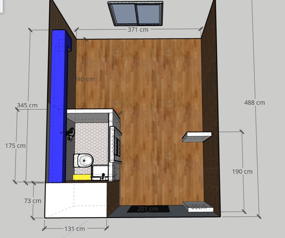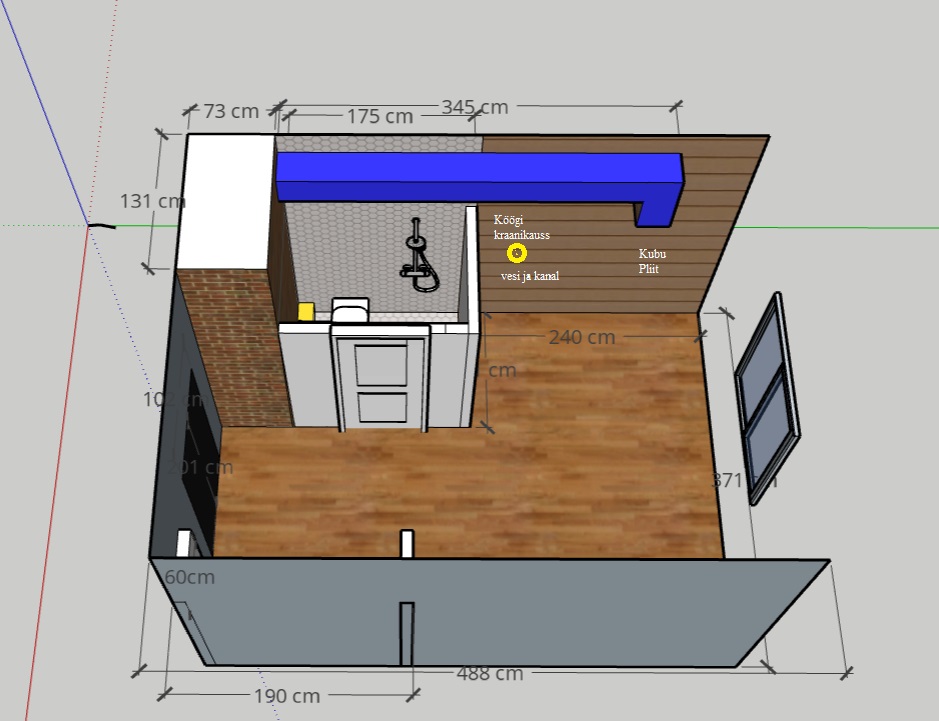 3. Ehitada wc-dushiruum: kaks uut seina, ühes seinas saab olema 80cm uks. Seinte peale hakkab toetuma magamislavats.