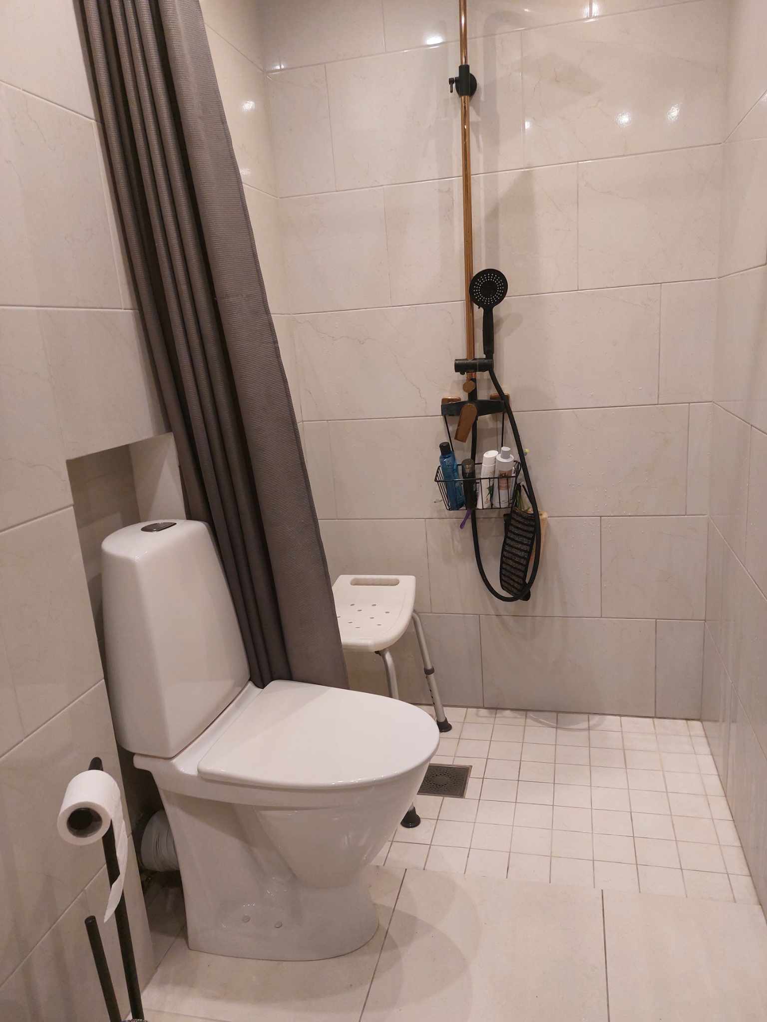 Palun vaadake fotosid ja plaani. Lisaks on fotode hulgas ka foto vannitoast, mis sarnaneb paigutuse (WC-pott ja segisti) poolest oodatavale tulemusele. Selline paigutus on oluline, sest ruum peab olema hästi ligipääsetav ratastoolis liikuvale inimesele.