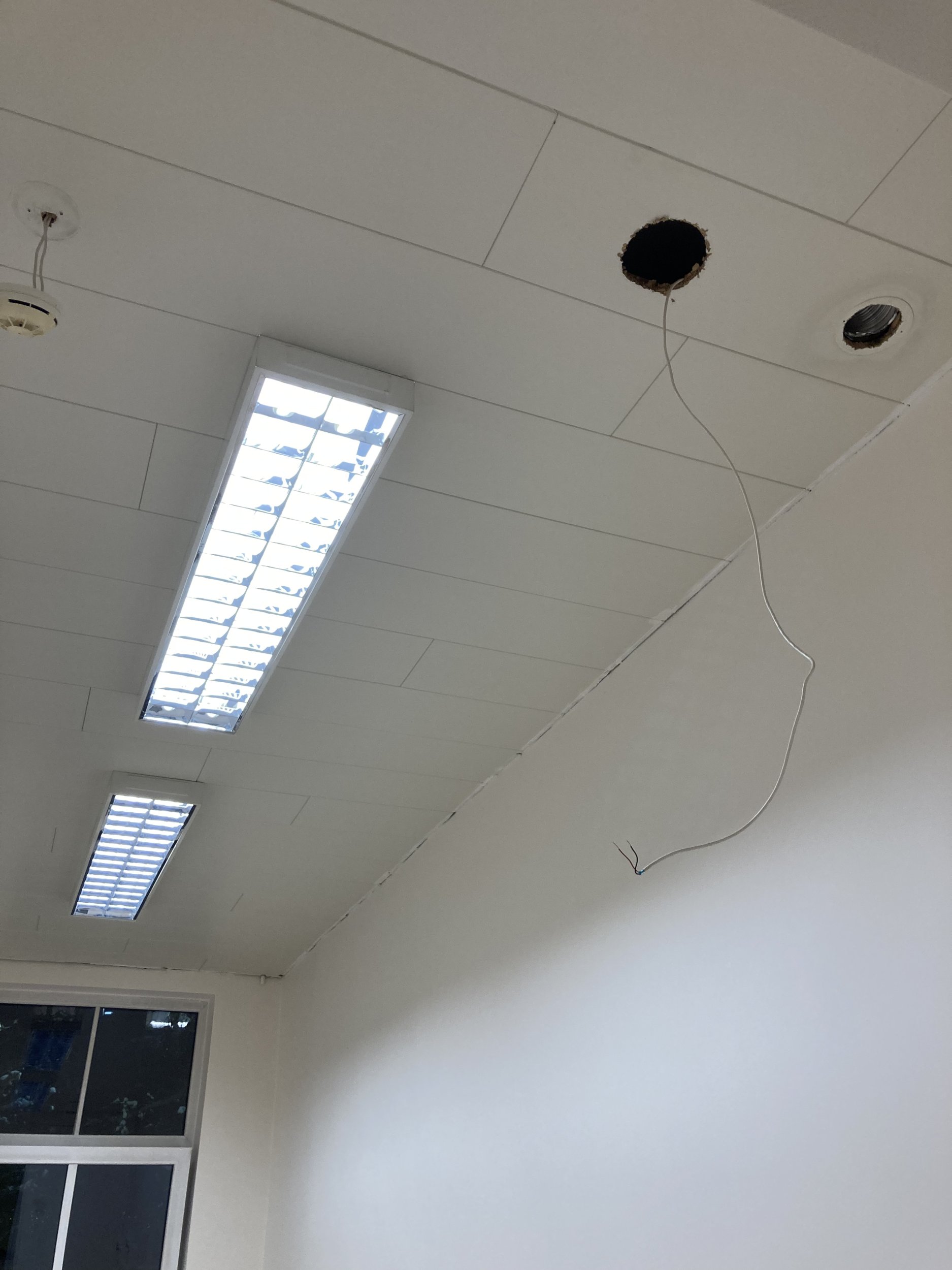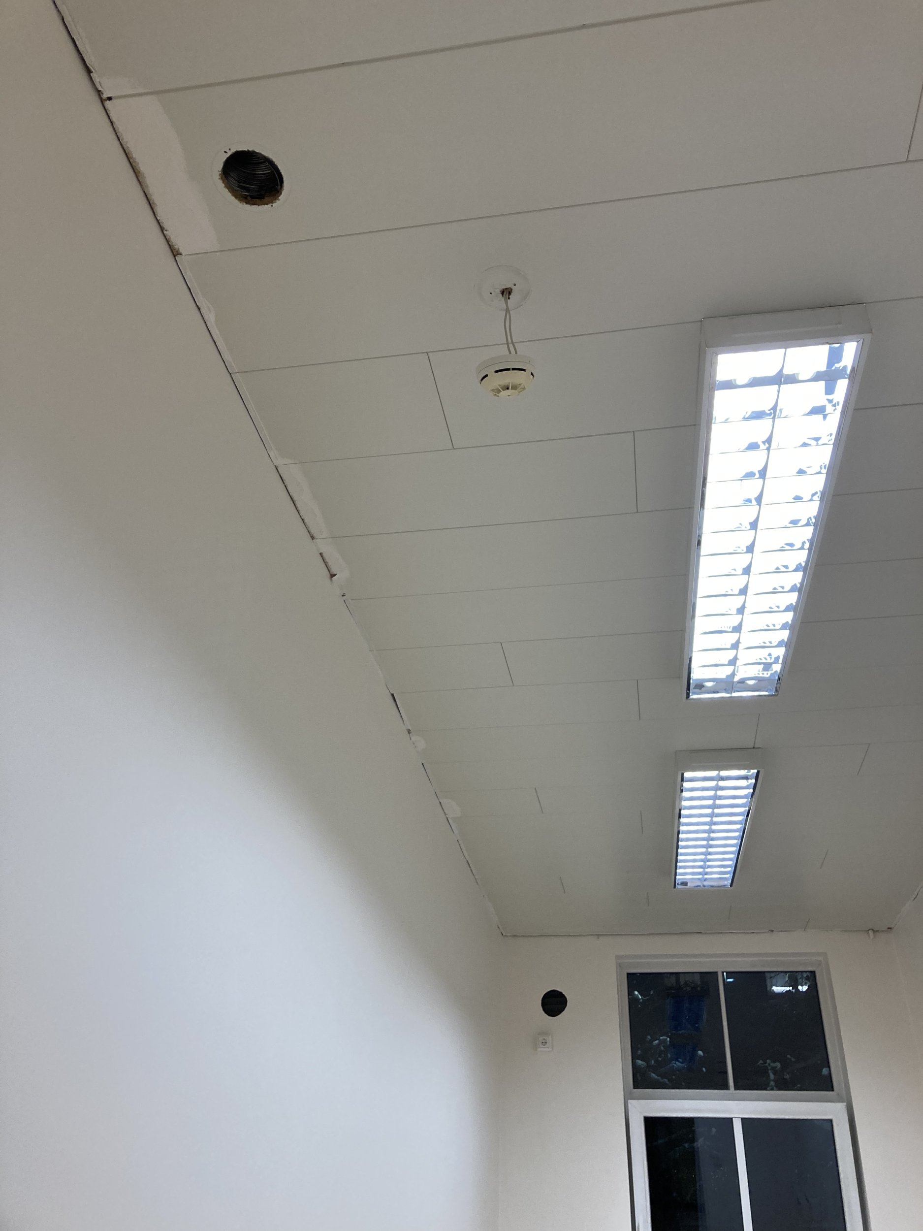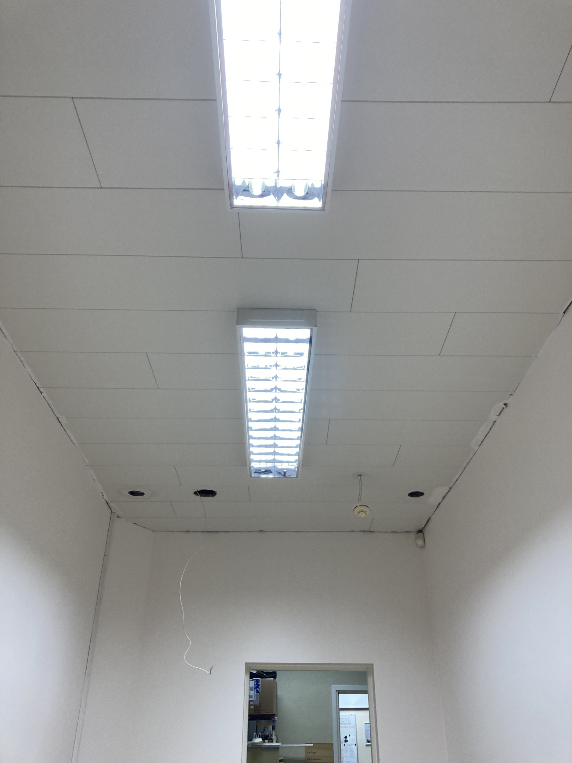 Piltidel näidatud 13.5m2 kontoripinnal on vaja teostada uute laepaneelide paigaldus. Seina viimistlustööde käigus eemaldati liistud ja selle käigus kahjustati ka laepaneelide servasid.