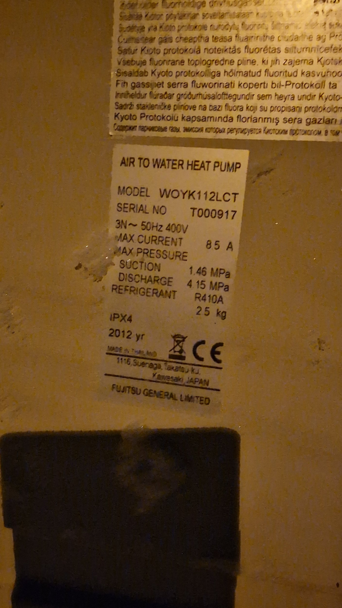 Meie majas, Tallinnas, Tanuma 45, Kakumäe Selveri läheduses on Fujitsu Waterser õhk-vesi soojapump. Tänasest ei tööta ta enam korralikult. Välisosa ventilaatorid töötavad vähese võimsusega ja pump ei suuda soojendada vett ega maja. Võimalik, et viga on defrostimises. Hea oleks kiirelt abi saada, sest praeguse ilmaga sooja vee ja kütte puudus väga hea ei ole.