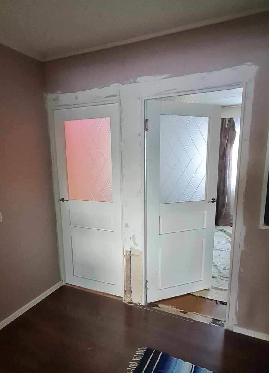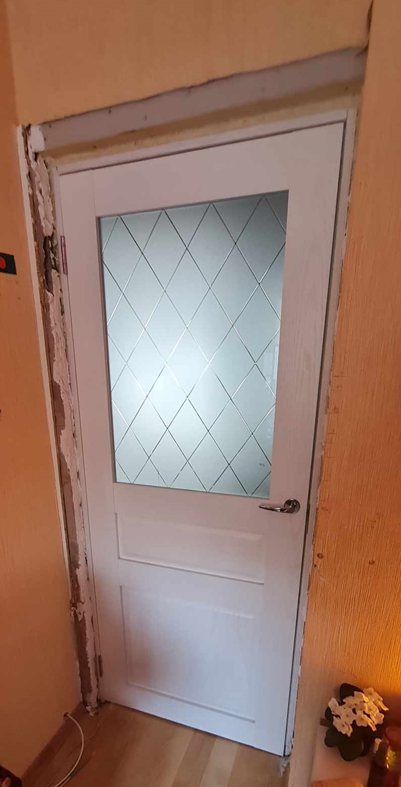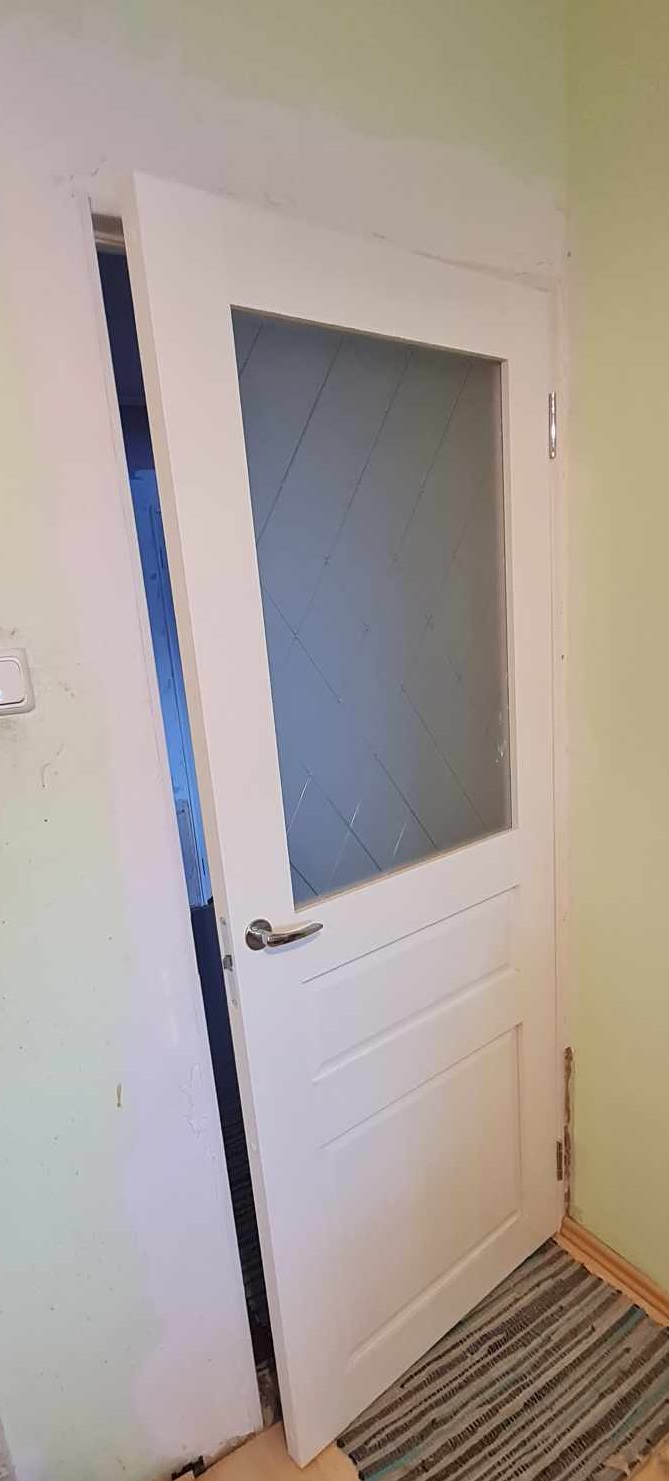 Korteri 4 siseukse vahetuse järgne viimistlus: pahteldamine, lihvimine, värvimine. Ühe topeltukse sisemuse täitmine ja viimistlemine. Liistude paigaldamine.