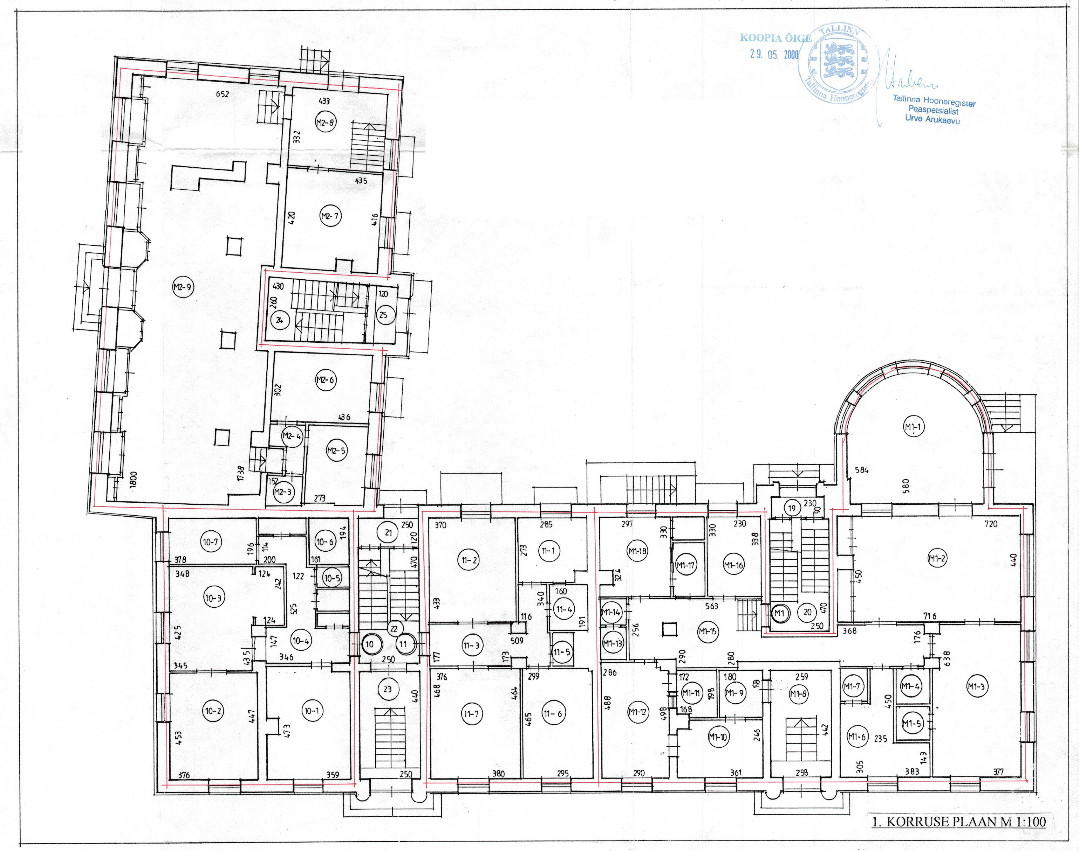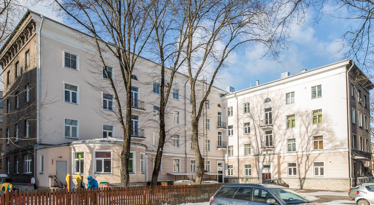 Staliniaegne maja, 4 korrust, 3 trepikoda, 32 korterit, täiskelder, tühi pööning.