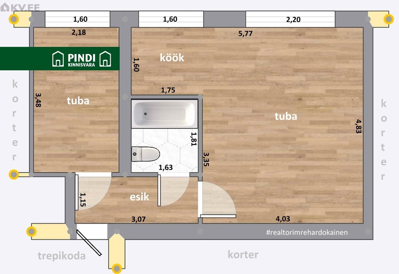 1. Seinte peenkrohvimine ja värvimine. Kolm ruumi: magamistuba, esik, elutuba-köök. Ruumide pindala kokku 33 m2. Ruumide kõrgus standartne umbes 2,5 m. Seinte laiused toodud pildil.