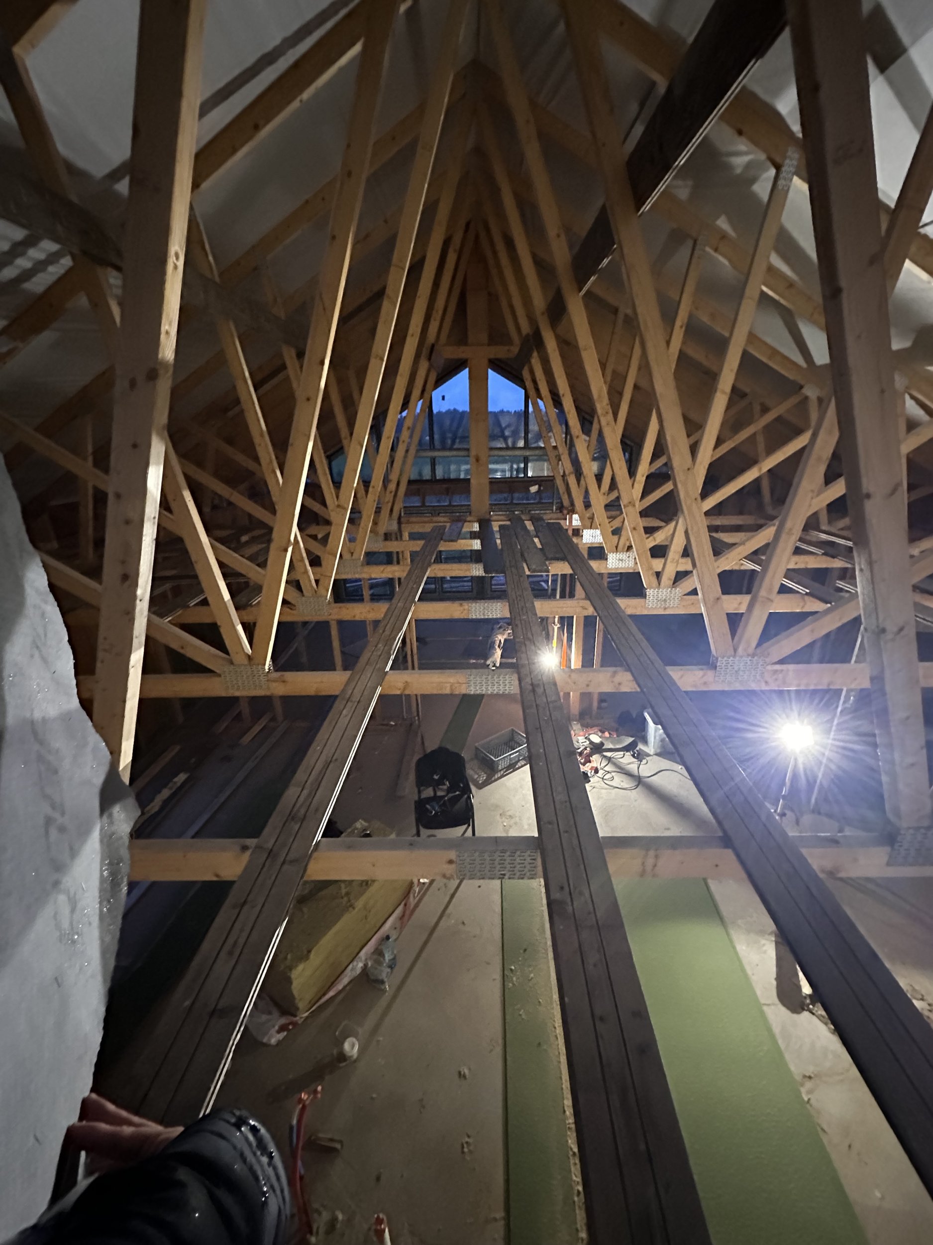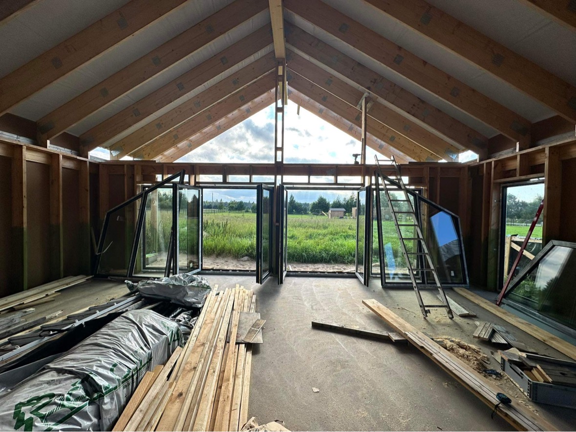 Maja kõrges avatud osas sarikate vahe 52 m2 villa paksus 40 cm
