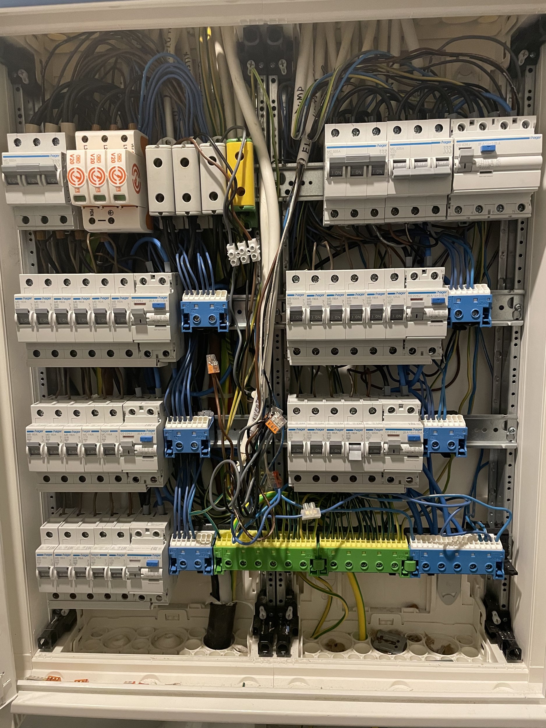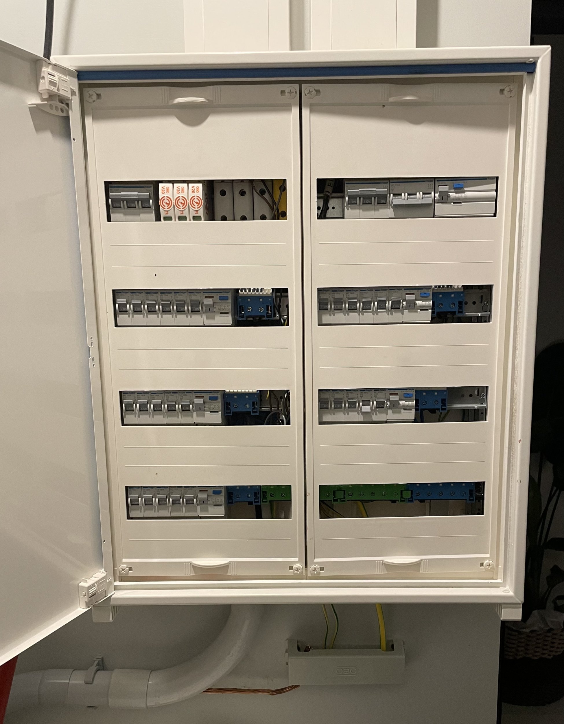 Elektrikilp valmis, kilp, pistikud, lülitid, valgustid jms ühendatud ja paigas.,