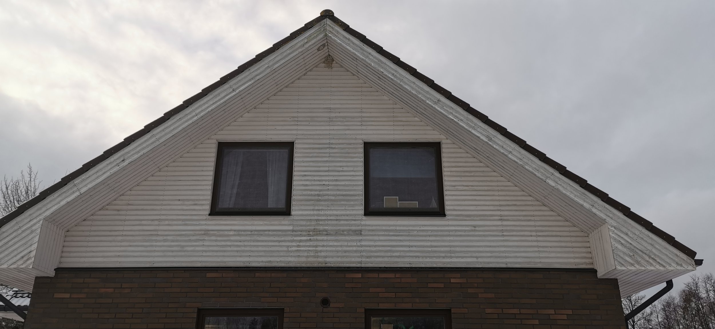 Töö seisneb maja fassadi ülemise poole laudise puhastamine ja üle värvimine. Laudis paigaldatud 2006.