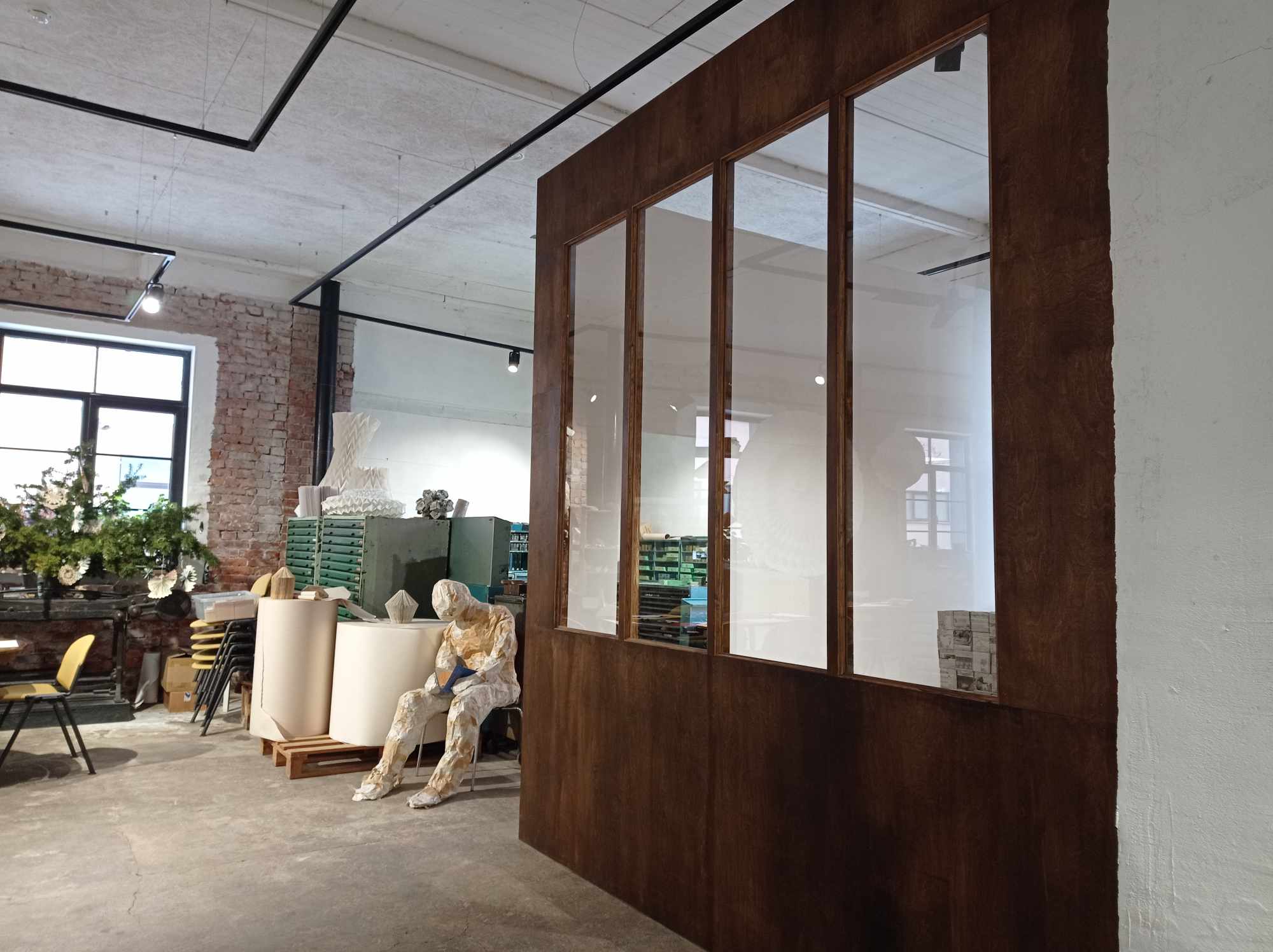 Vahesein - puitsõrestik, kipsplaat, siseuks, siseaknad (olemas). Lisaks vaja lisada ventilatsioon, mis viib õhu ruumist välja (ruumil on kaks välisseina). Seina mõõdud: kõrgus u 4m, laius u 8m. Lisatud pildil näha olemasolev vahesein poole ruumi ulatuses, mida saab võimalusel kasutada uue seina osana. Samuti näha olemasolevad aknad.