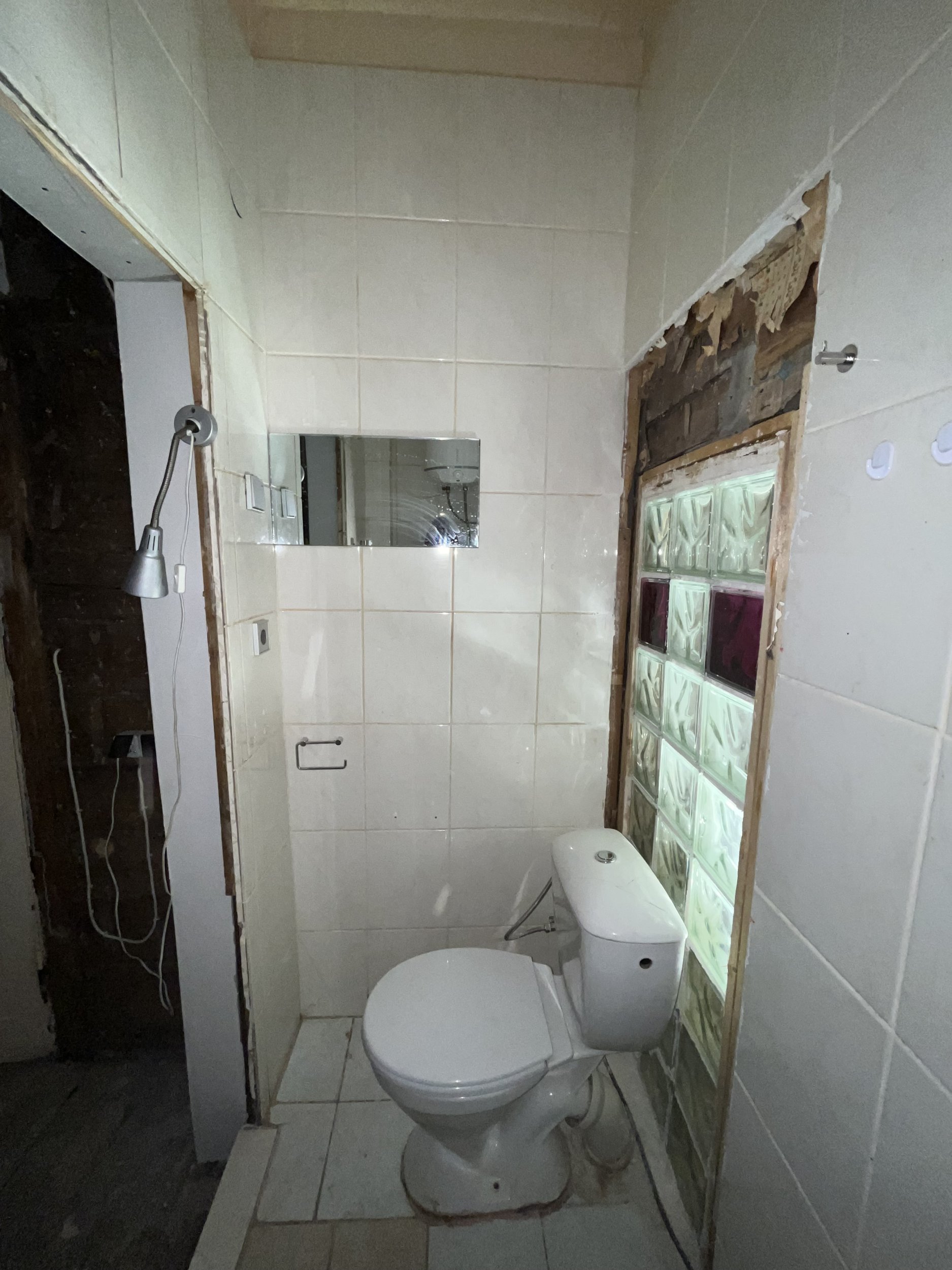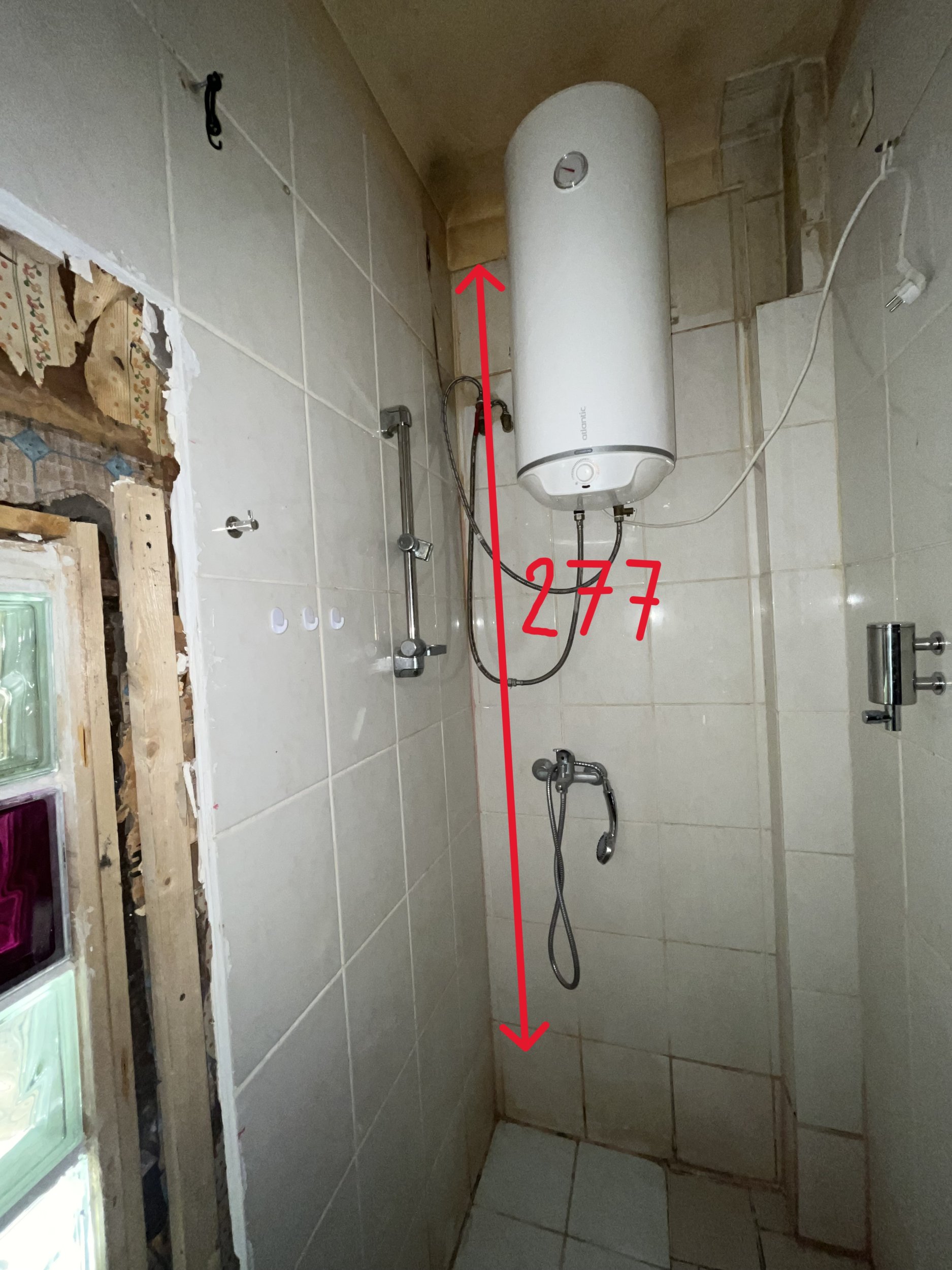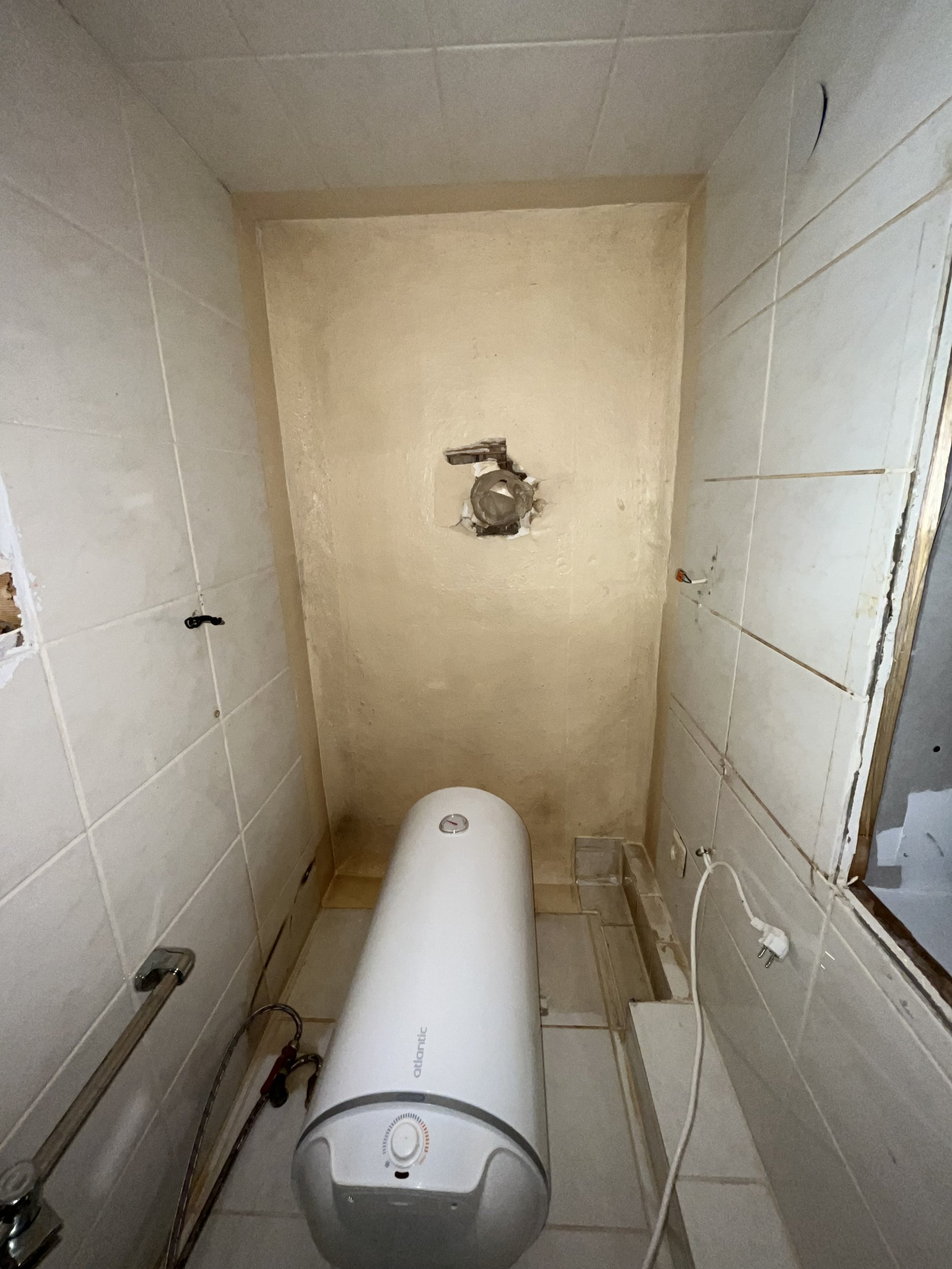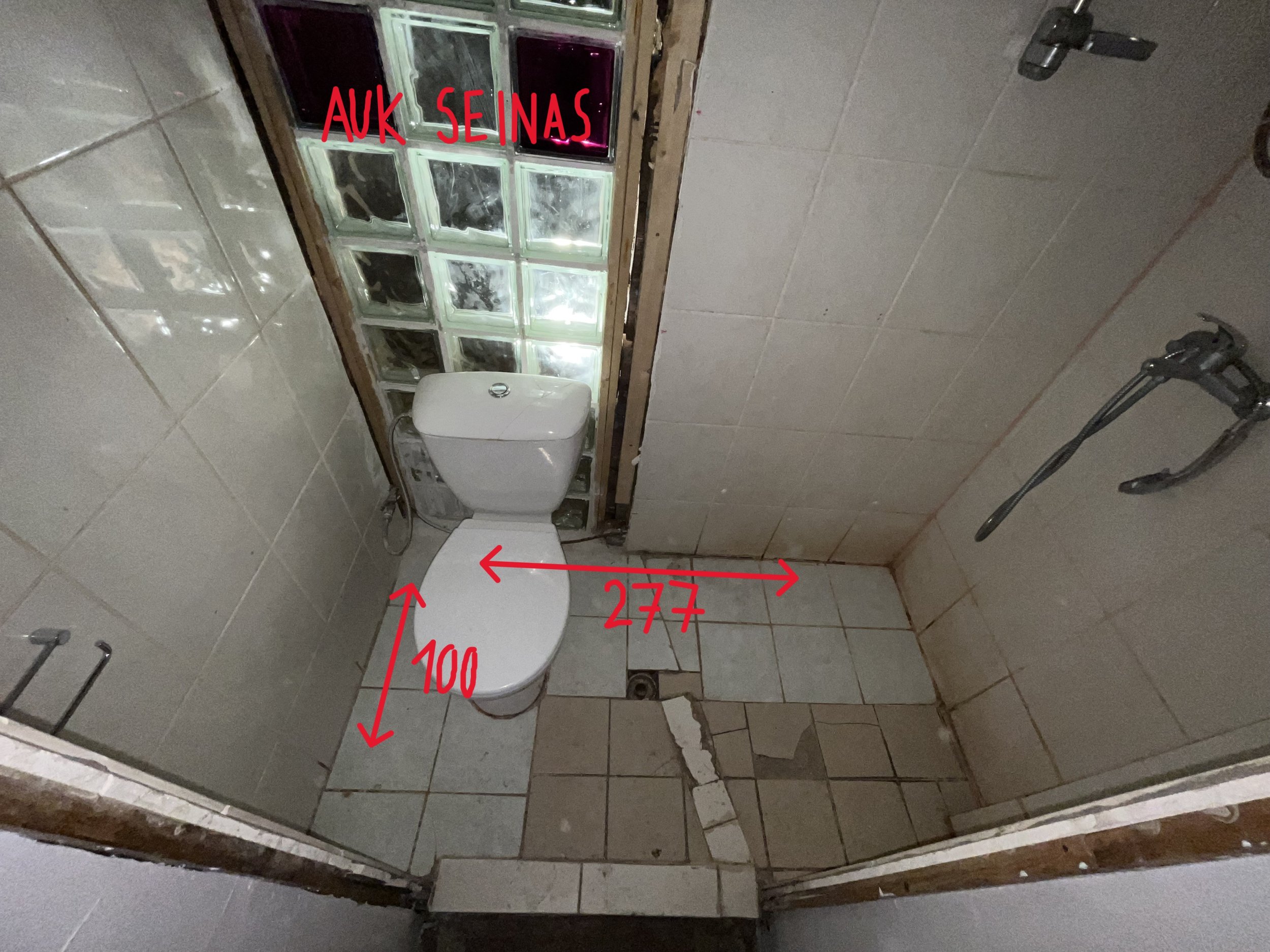 • Auk seinas: Tahaks ära kasutada seinas oleva augu ja paigaldada seinale kinnitatava WC-poti raami auku ja augu kinni müürida. Hea oleks, kui oleks võimalik boiler kõrvaltuppa paigutada ja sama augu kaudu vannitoaga ühendada. Uusi auke seina ei tahaks.