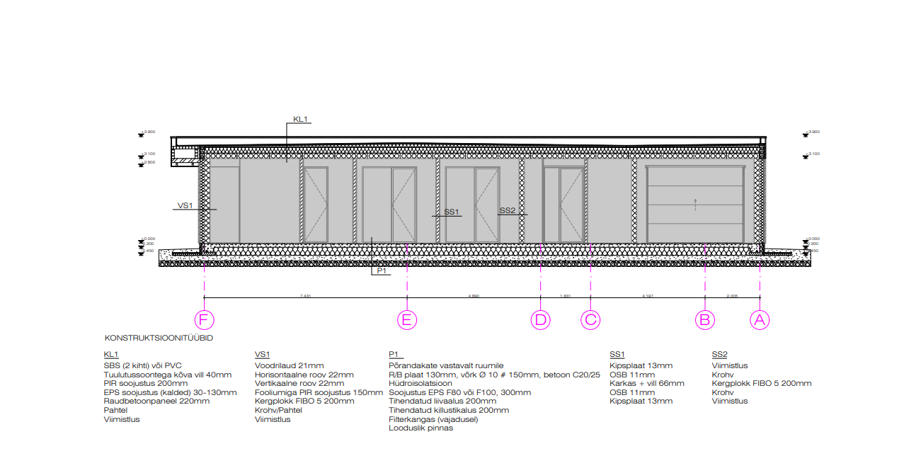 237m2, 1-kordse eramu konstruktsiooni projekt (Laagri) vähemalt alljärgnevas mahus: