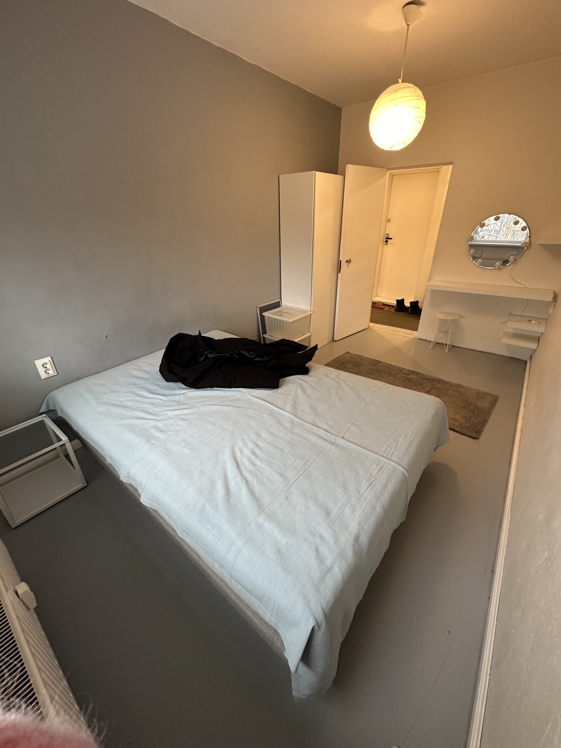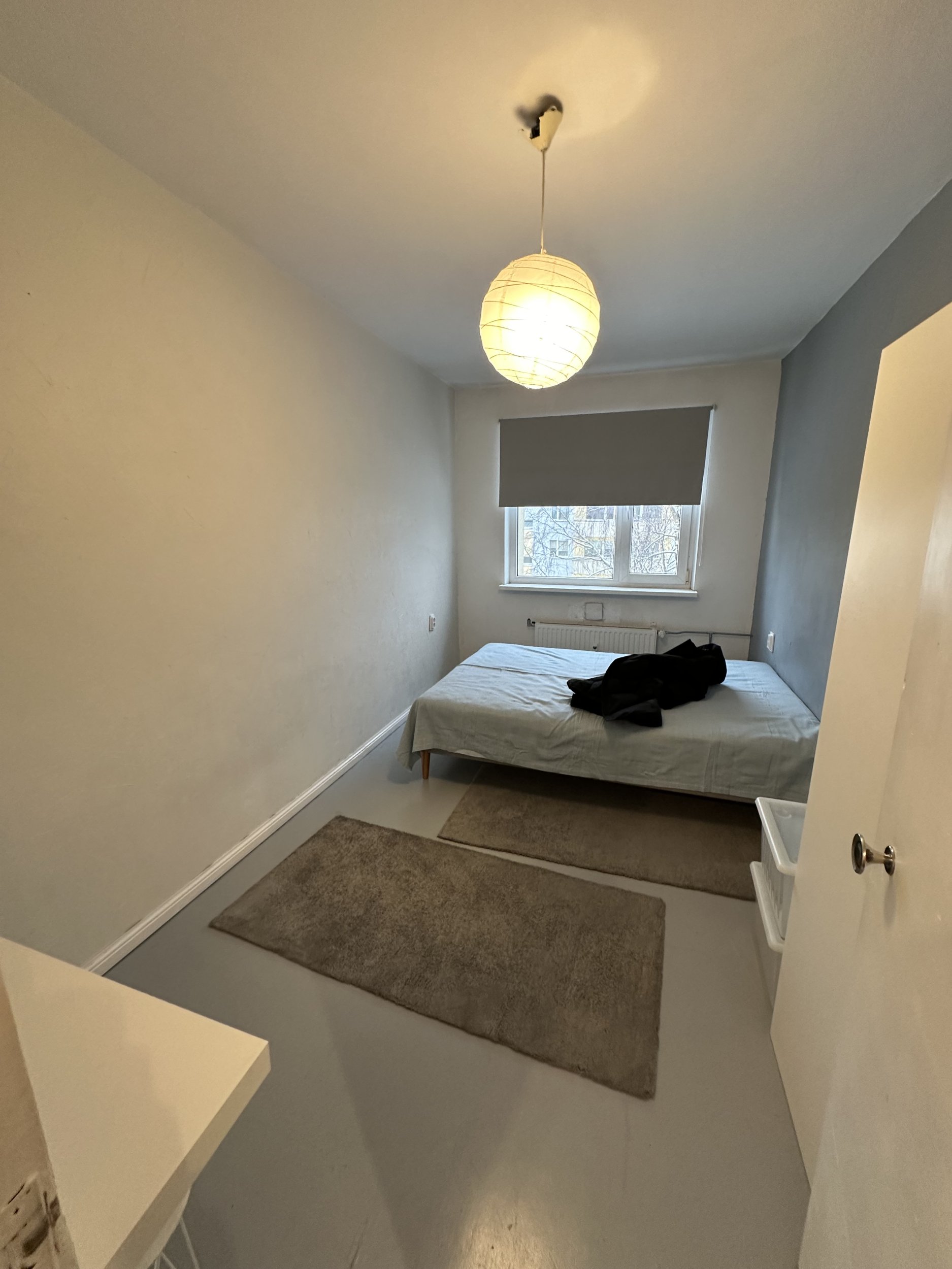 2️⃣ 8. Jaanuar - Teises osas lükatakse diivan ja voodi värvitud ala peale ja värvitakse ülejäänud toa pooled kuni ukseni ning esik. (Esikust on vaibad juba eemaldatud)