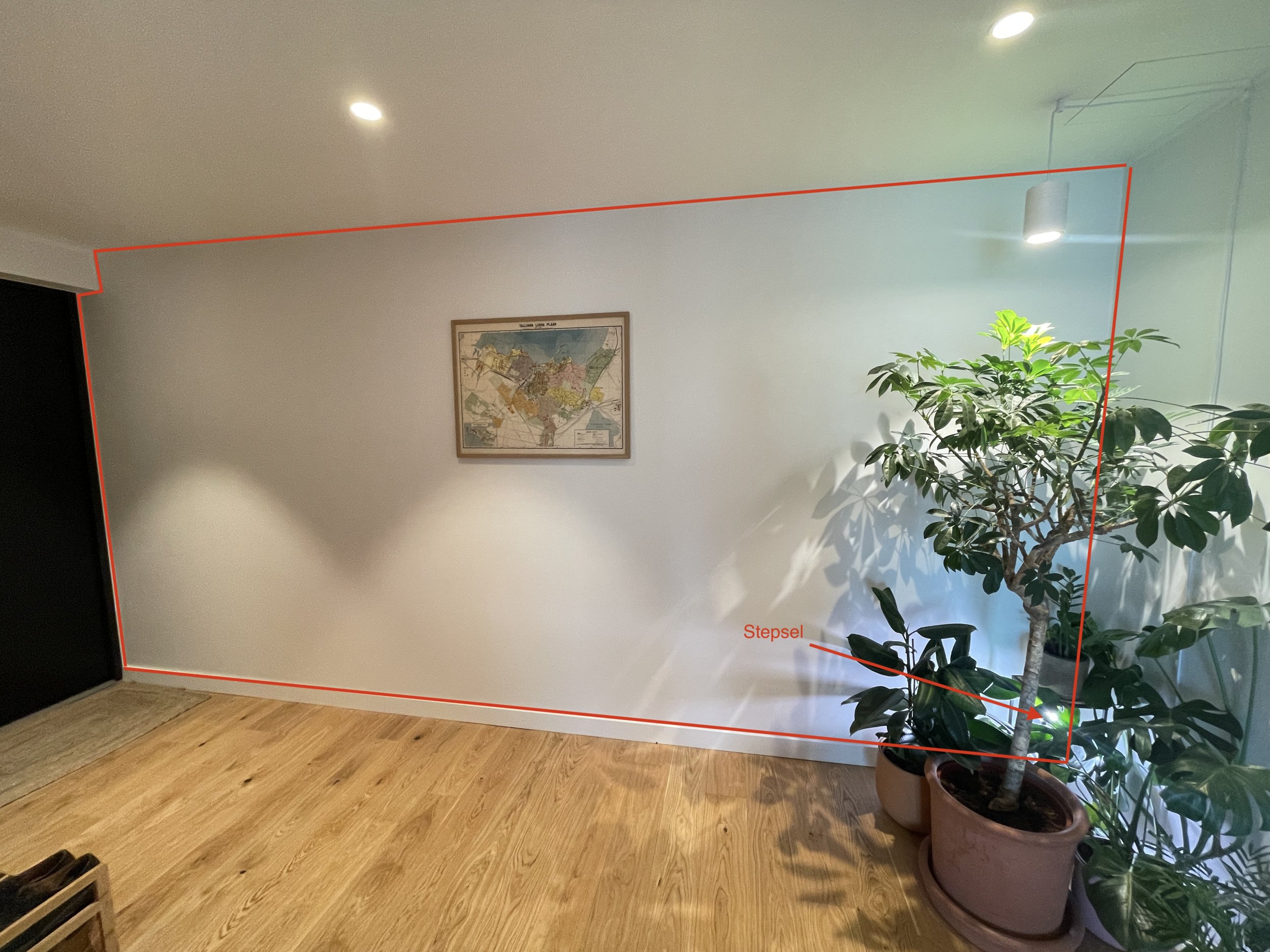 Tarvis tapeetida üks sein (480 x 230 cm), märgitud pildil punase alana.
