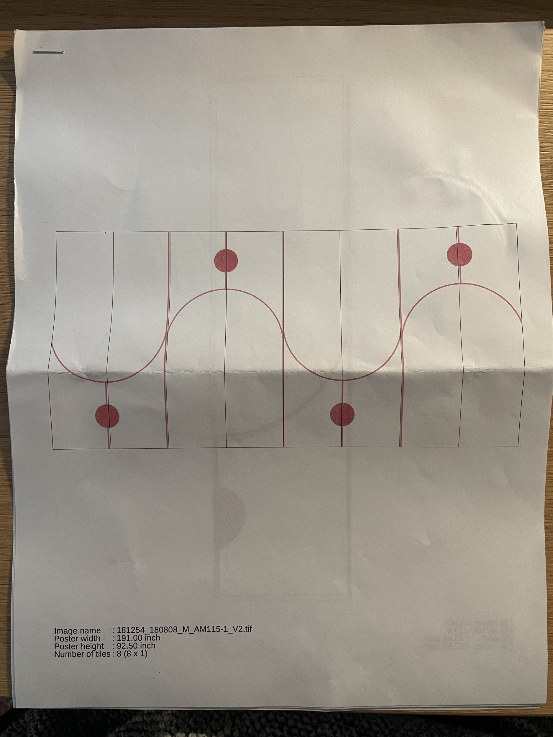 Tapeet on olemas, muud materjalid tegija poolt. Tapeet koosneb 8 võrdse suurusega paneelist, mis kokku ongi seina mõõtudega, lisaks igas ääres 1 toll marginaali. Varumaterjali hankida on keeruline, seega töö peab olema läbimõeldud ja korralik. Põhimõtteliselt on pind lihtsalt ristkülik, ainult üleval vasakul tuleb lae jaoks ning all paremal stepsli jaoks lõiked teha.