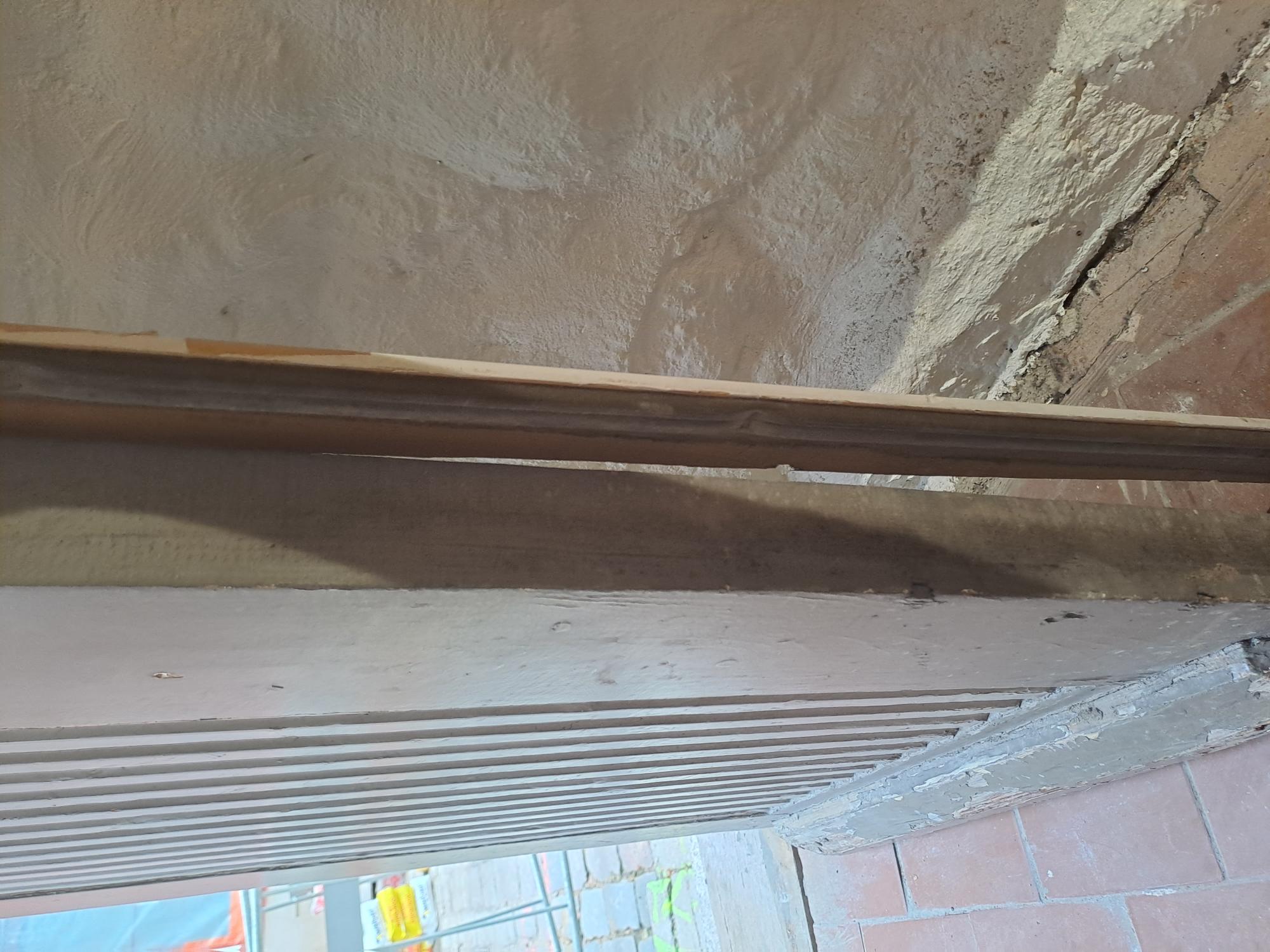 • Puitdetailidelt eemaldada pealmine sünteetiline värvikiht ning kõik lahtised kihid; eesmär- giks ei ole vanade värvikihtide täielik eemaldamine. Teha täiendavad värvisondaažid. Suure- mad mehaanilised vigastused ja ebatasasused korrigeerida puidupahtliga.