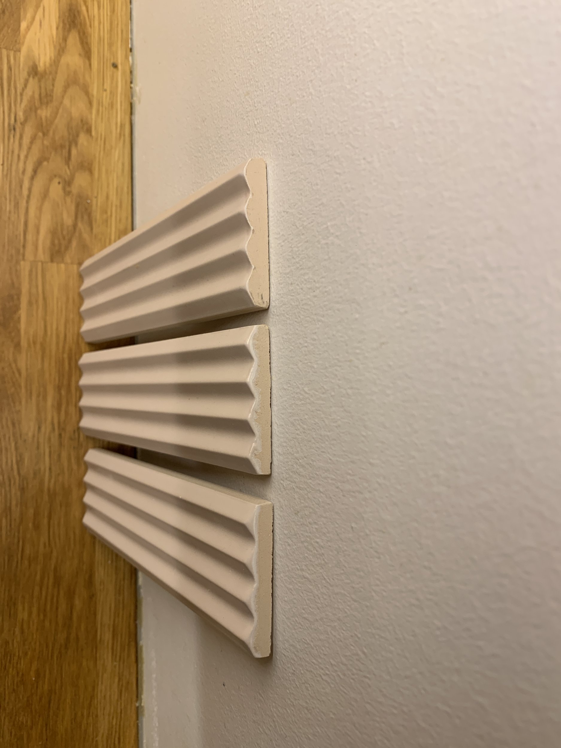 Kuna kolme plaadi pikkuste summa on 600 mm, siis on vaja plaate pikkuses lõigata - nii alumisi kui ülemisi plaate, et pikkuse erinevus ei oleks nii silmatorkav.
