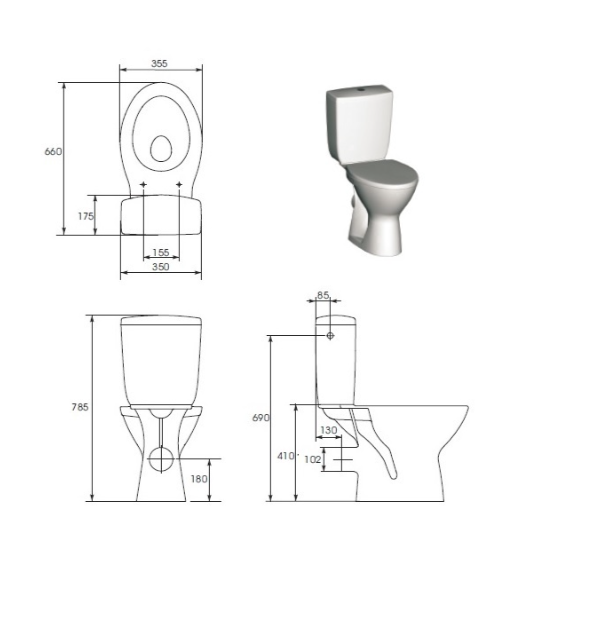 Mudel WC-pott, põrandapealne Cersanit IVA 766,
