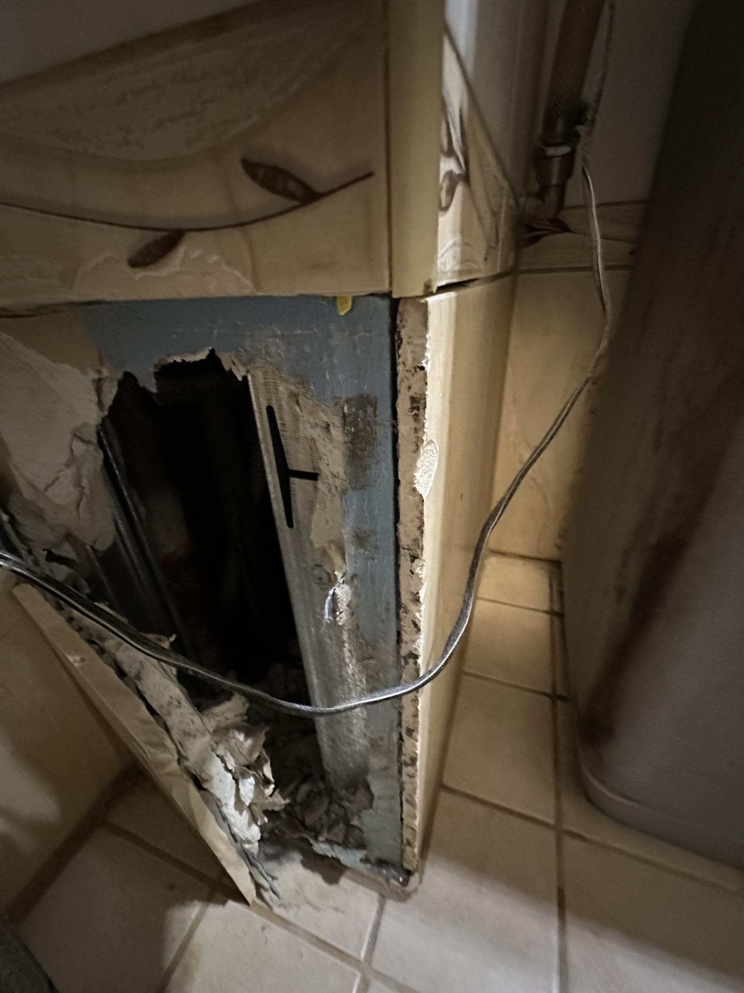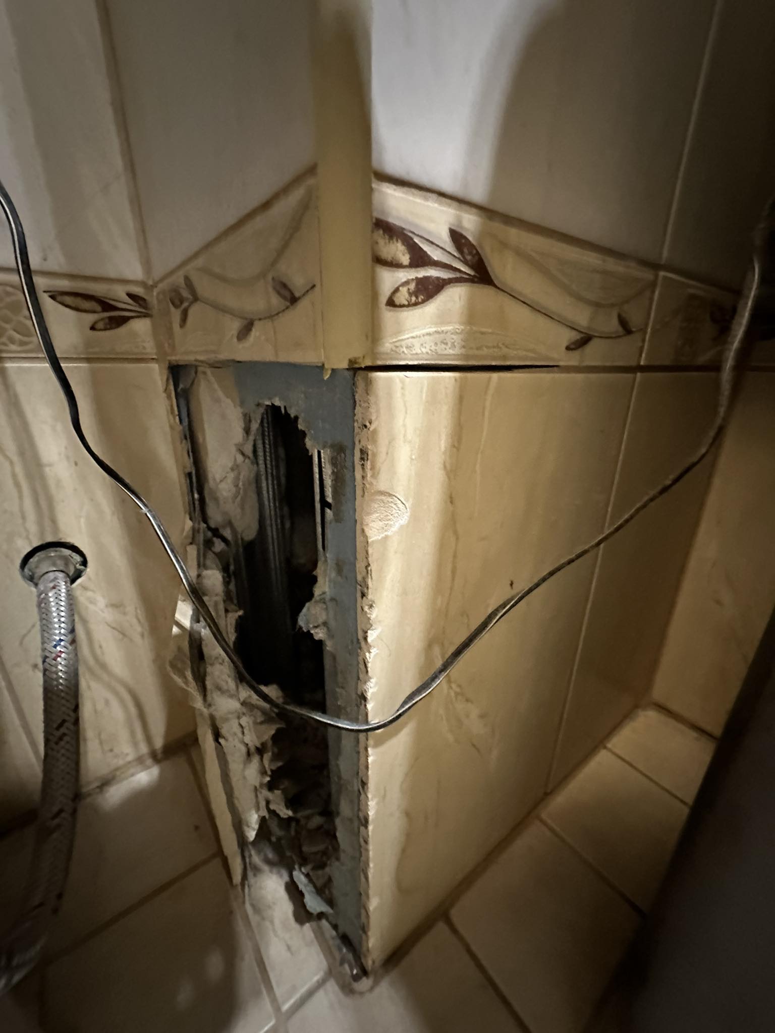 Üks meie vannitoa plaatidest on eemaldatud, et pääseda ligi selle taga olevatele torudele. Selle taga on kipssein. Mul on vaja see ära parandada, minu poolt saate ainult sobiva plaadi tüki.