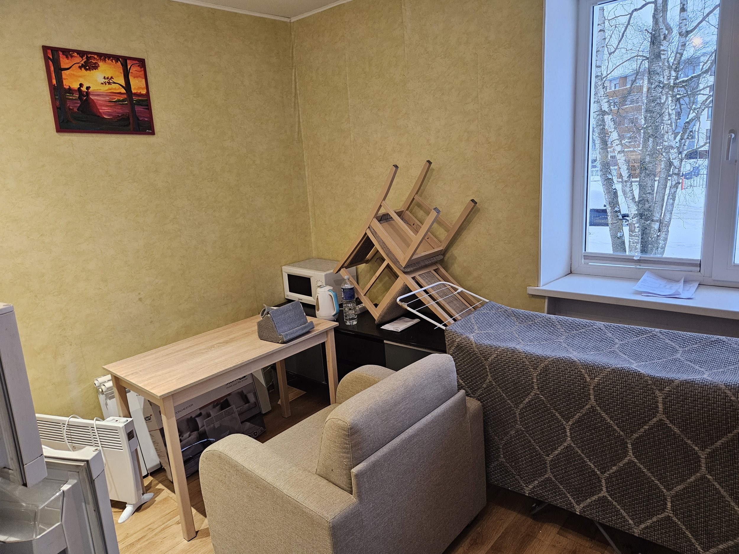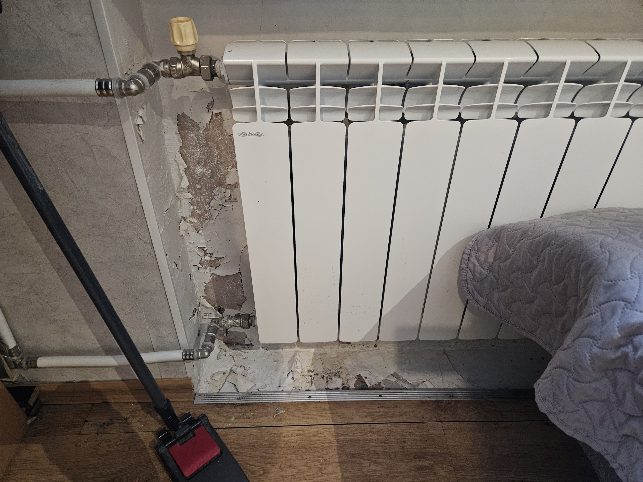 Korteris oli kütteavarii ja radiaatorid külmusid lõhki. Sooja taastumisel voolas radiaatoritest ohtralt küttevett, mis omakorda kahjustas korteri põrandat ja tapeeti seintel. Tänaseks on radiaatorid vahetatud ja korter on soe. Korter asub esimesel korrusel.