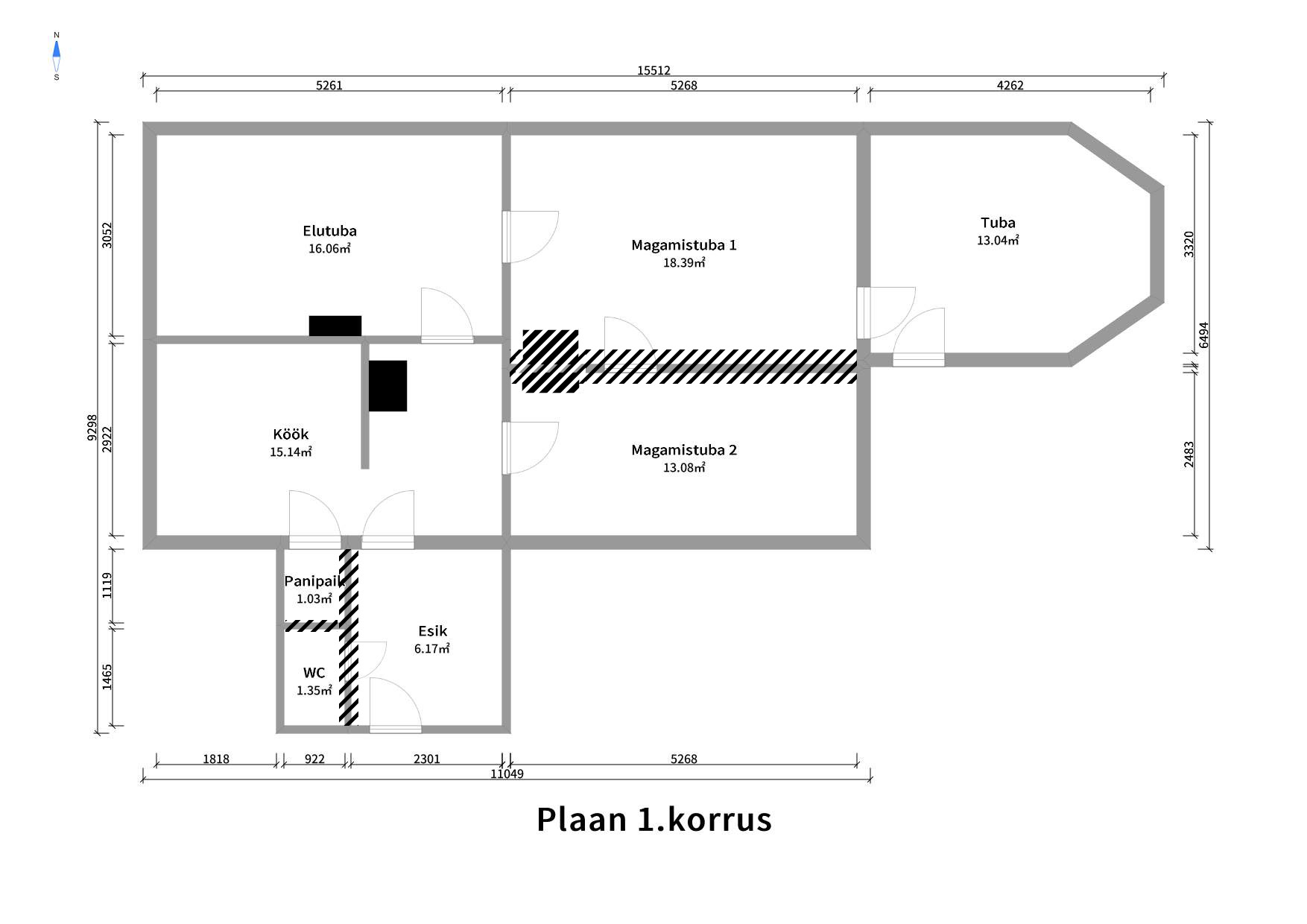 Tegemist on 2 korruselise vana majaga. Esimene korrus circa 80m2 ja teine 60m2. Lisatud on maja pilte ning olemasoleva plaanid ja soovitud uued plaanid.