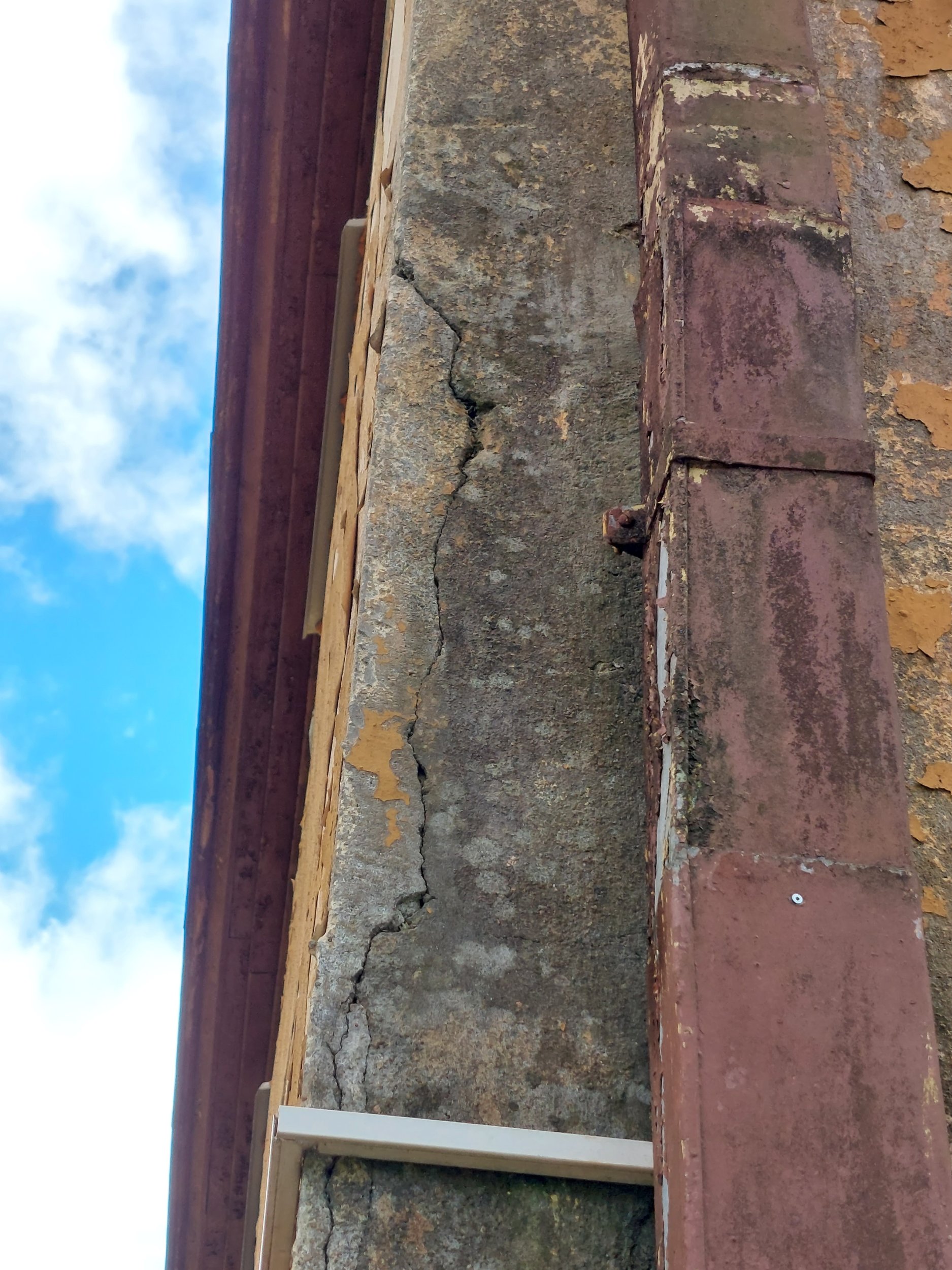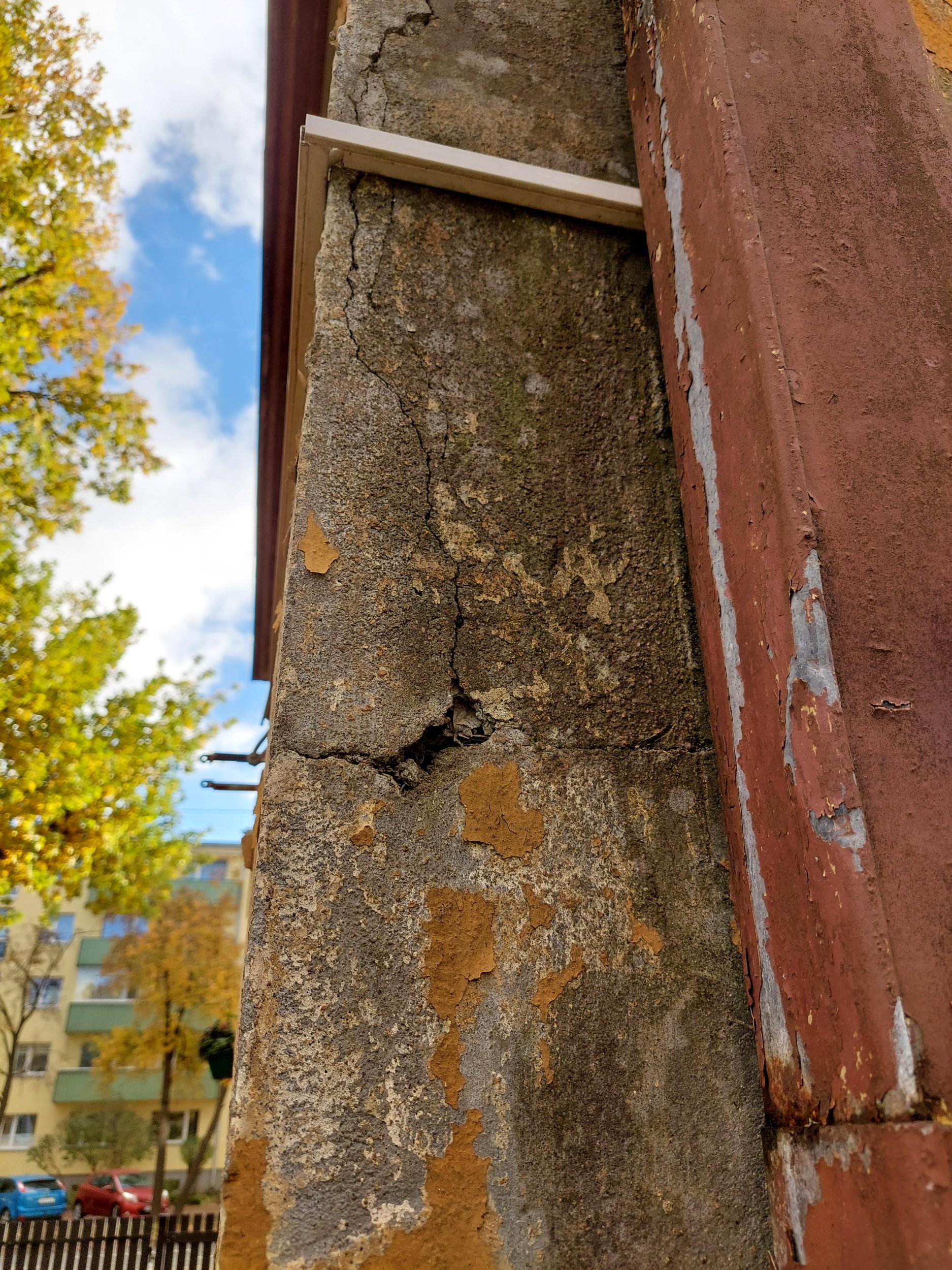 Kortermaja välisseina nurk ning lekkiv vihmaveetoru vaja parandada.