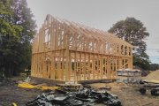 Uue terrassi ehitamine nullist: postid, aluskarkass, geotekstiil, laagid, lauad. Ees kogupikkuses trepiaste, tagumine külg vastu maja. Kogupind 35 ruutmeetrit.