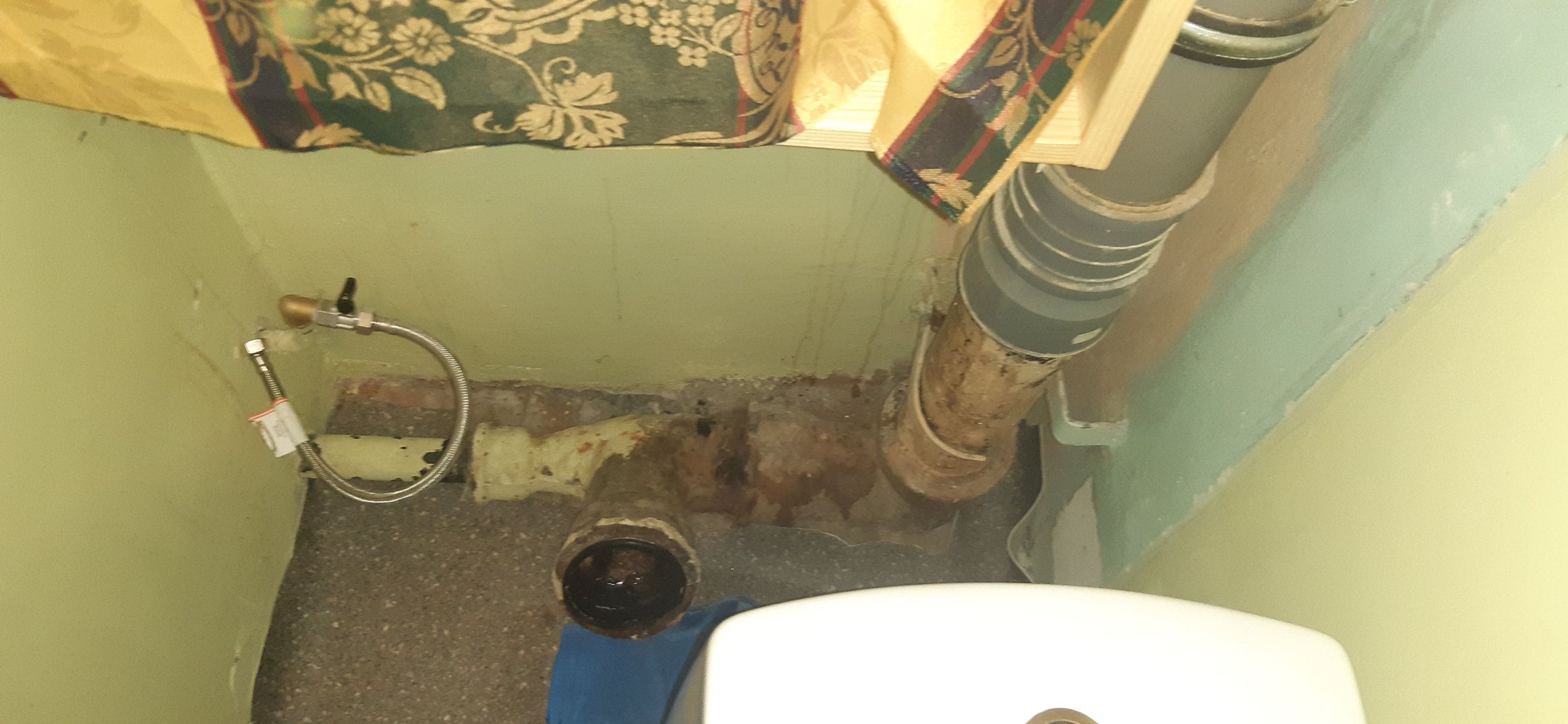 kanalisatsioonitoru vahetus (punane osa), et saaks tahavooluga tualettpoti tahapoole paigaldada. Või plastiktoru vahetus läbi seina minema osaga (roheline osa).