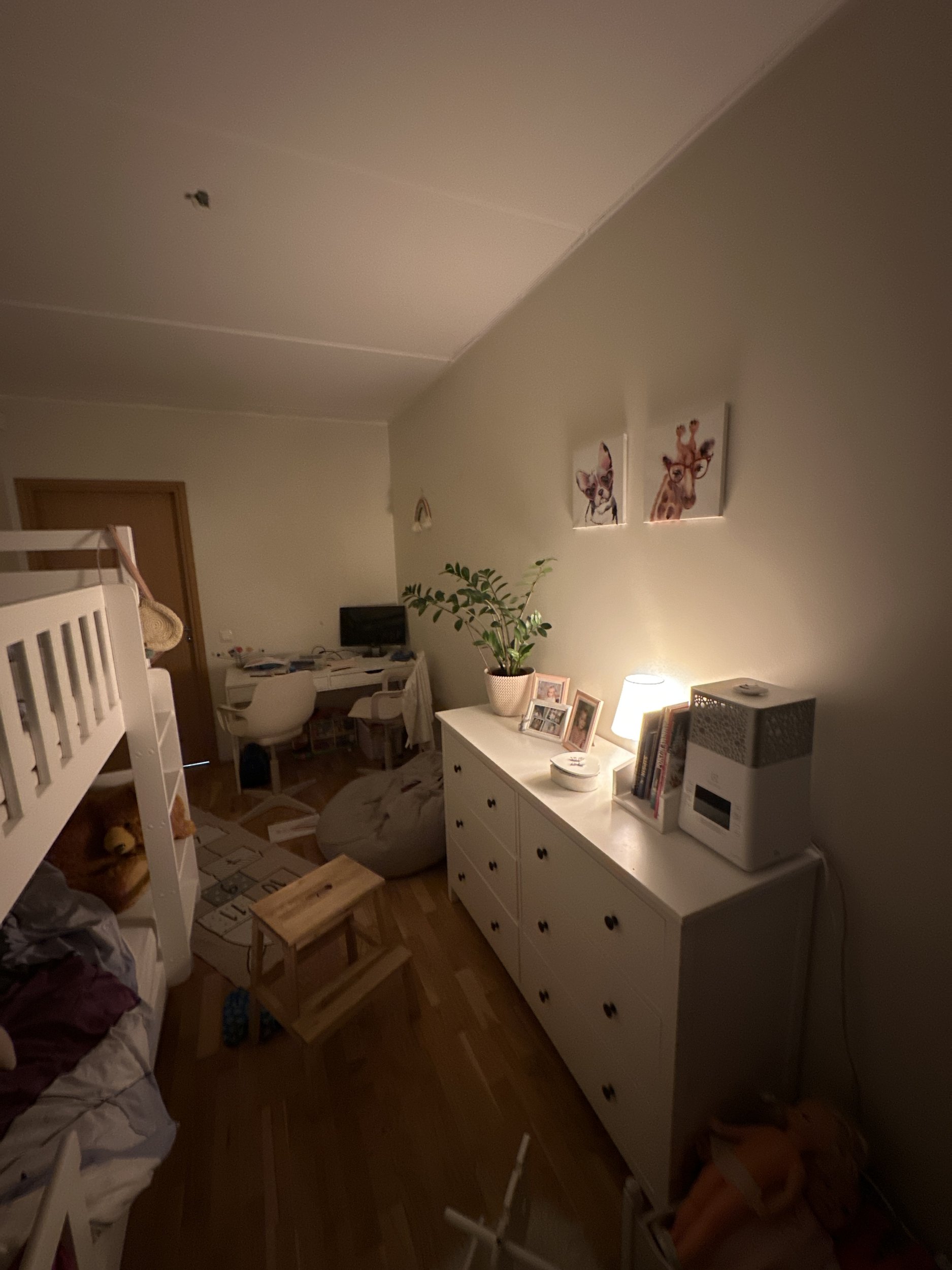 Värvida 18-20 rm lastetoa seina. Üksikud kohad vajavad pahteldust. Vahendeid ei ole, värv on vǎlja valitud. ( heleroosa). Soovin värvida 2 seina, üks pikk ja teine uksega seina (vt pilti)