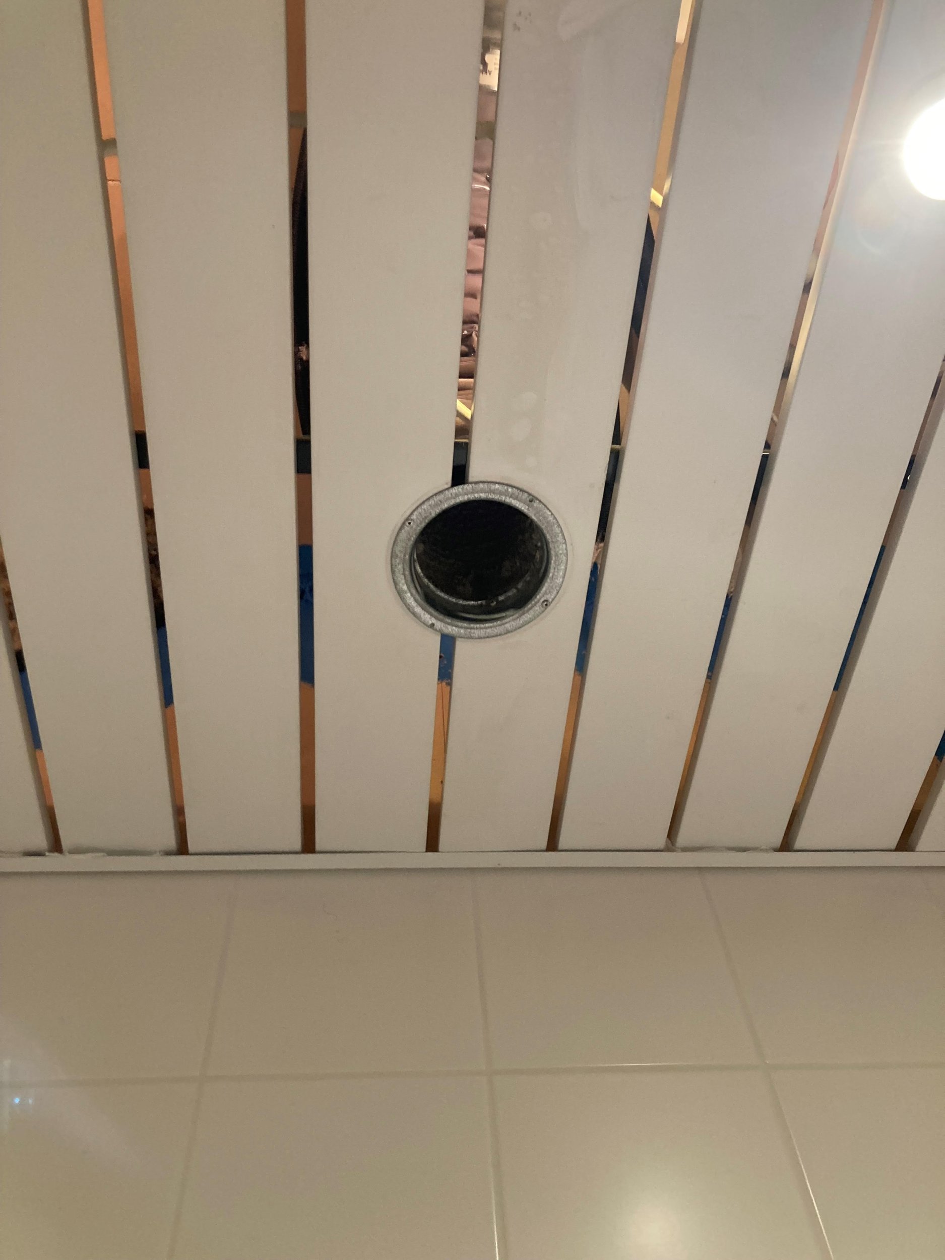 Ventilaator vannitoa laes (käivitub lambilülitist) on mõnda aega teinud põrisevat häält ja nüüd tuli plafoon ära. Vaja oleks toru puhastada ja uus plafoon/seade paigaldada.