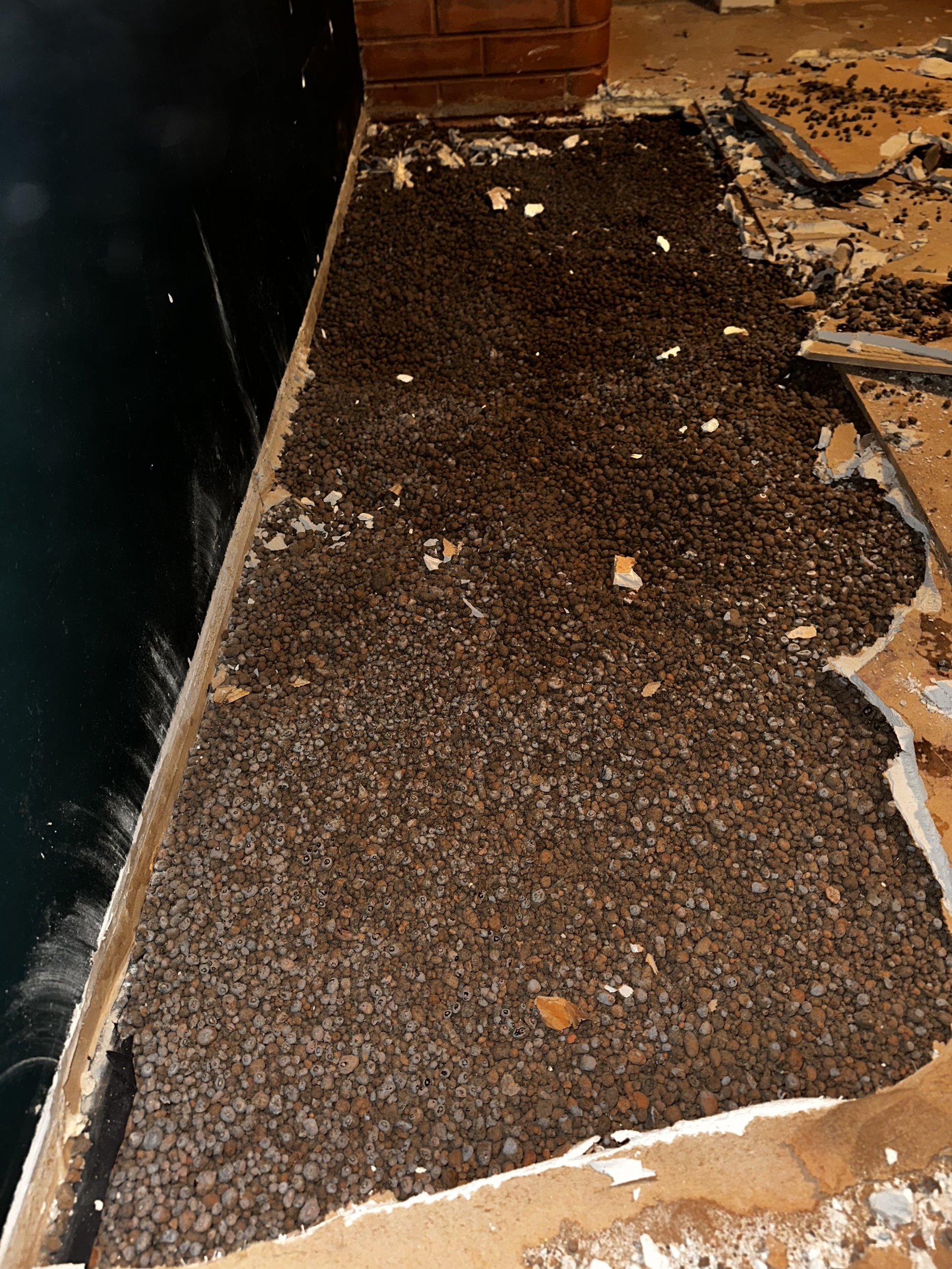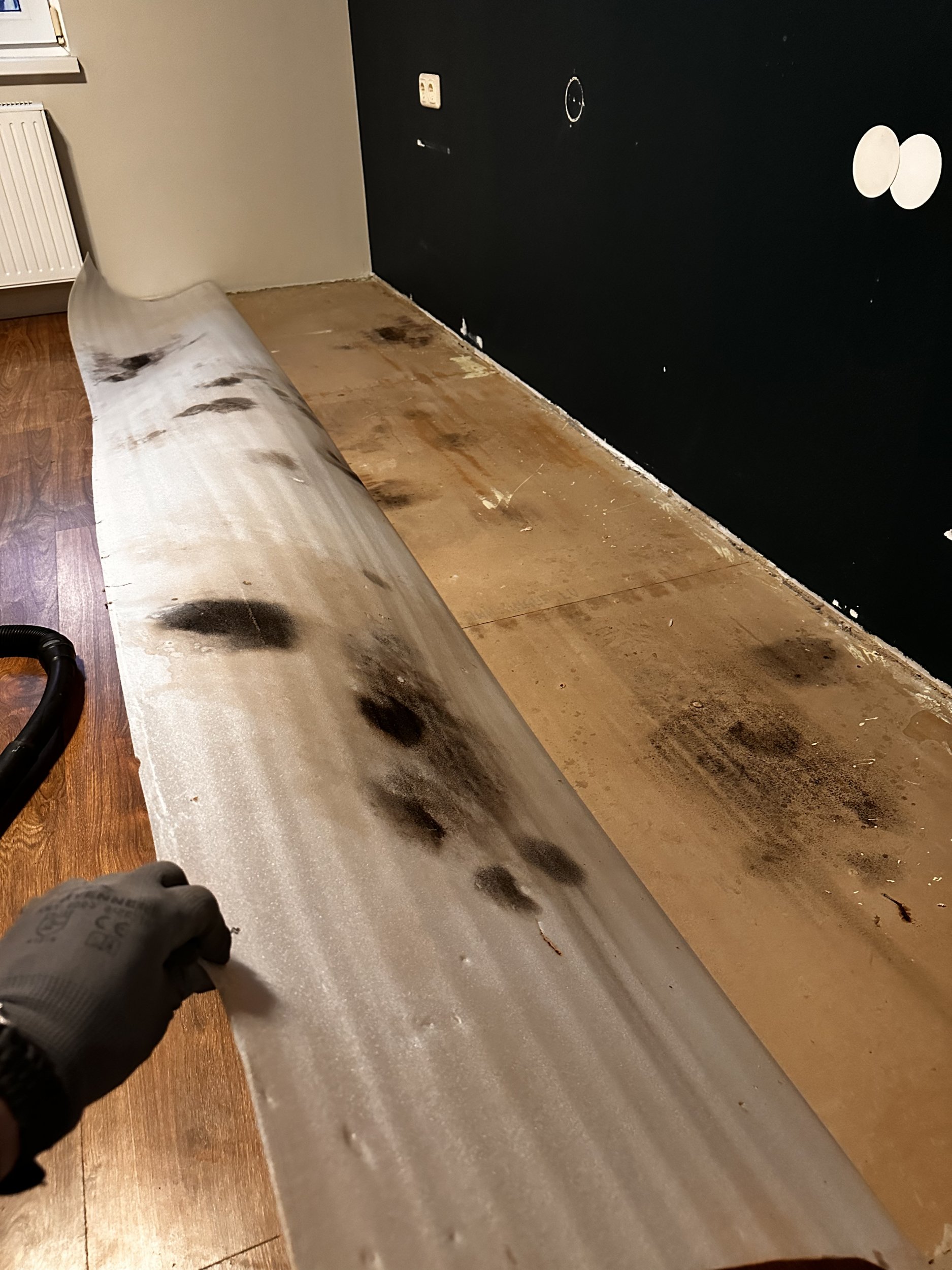 Vana põranda konstruktsioon valesti ehitatud, Maapinna peal tavaline must kile - kergkruus u.10cm - selle peal "ujuvalt"paigaldatud 2 kihti kipsi - laminaadi vaip - laminaat.