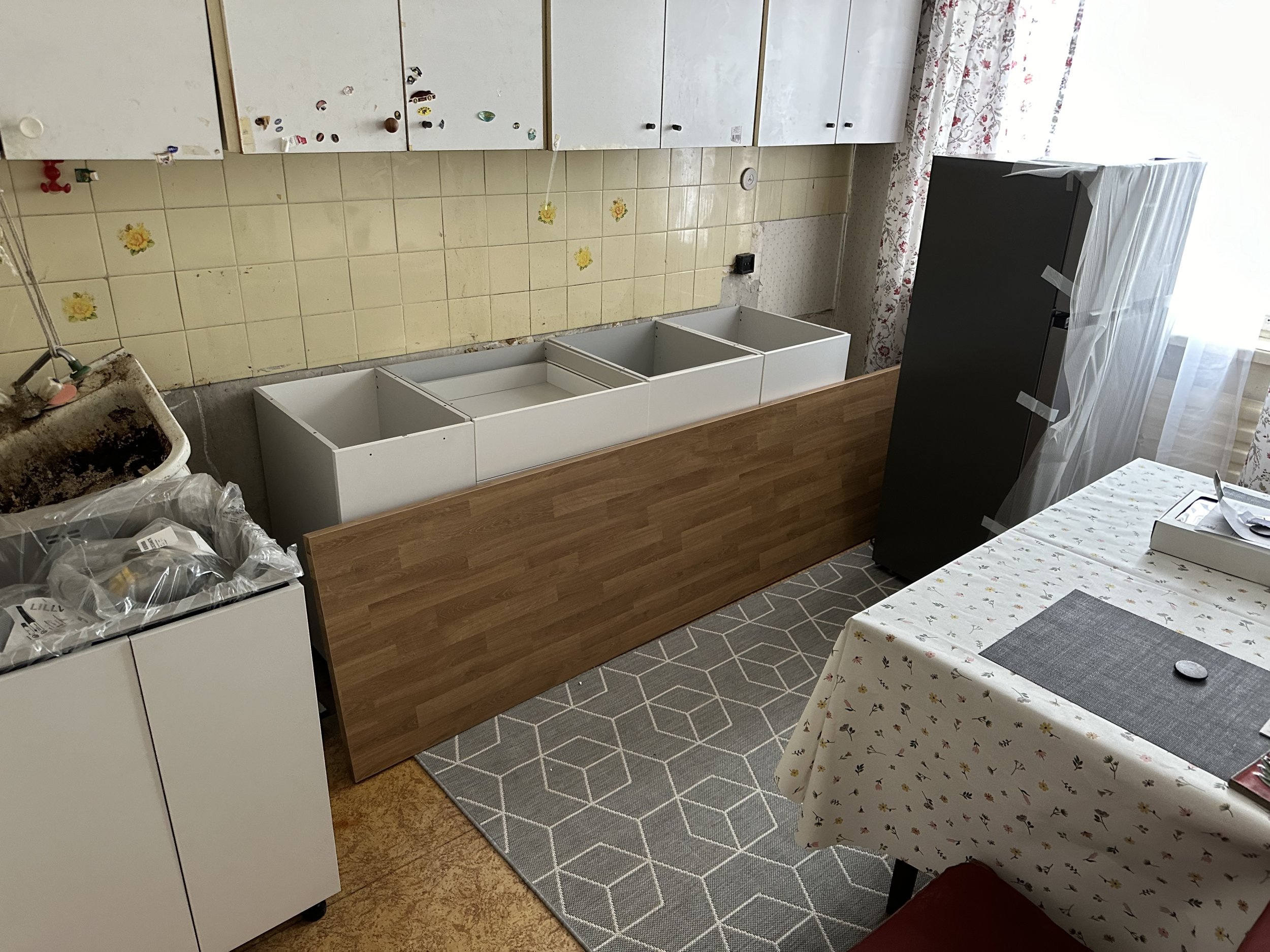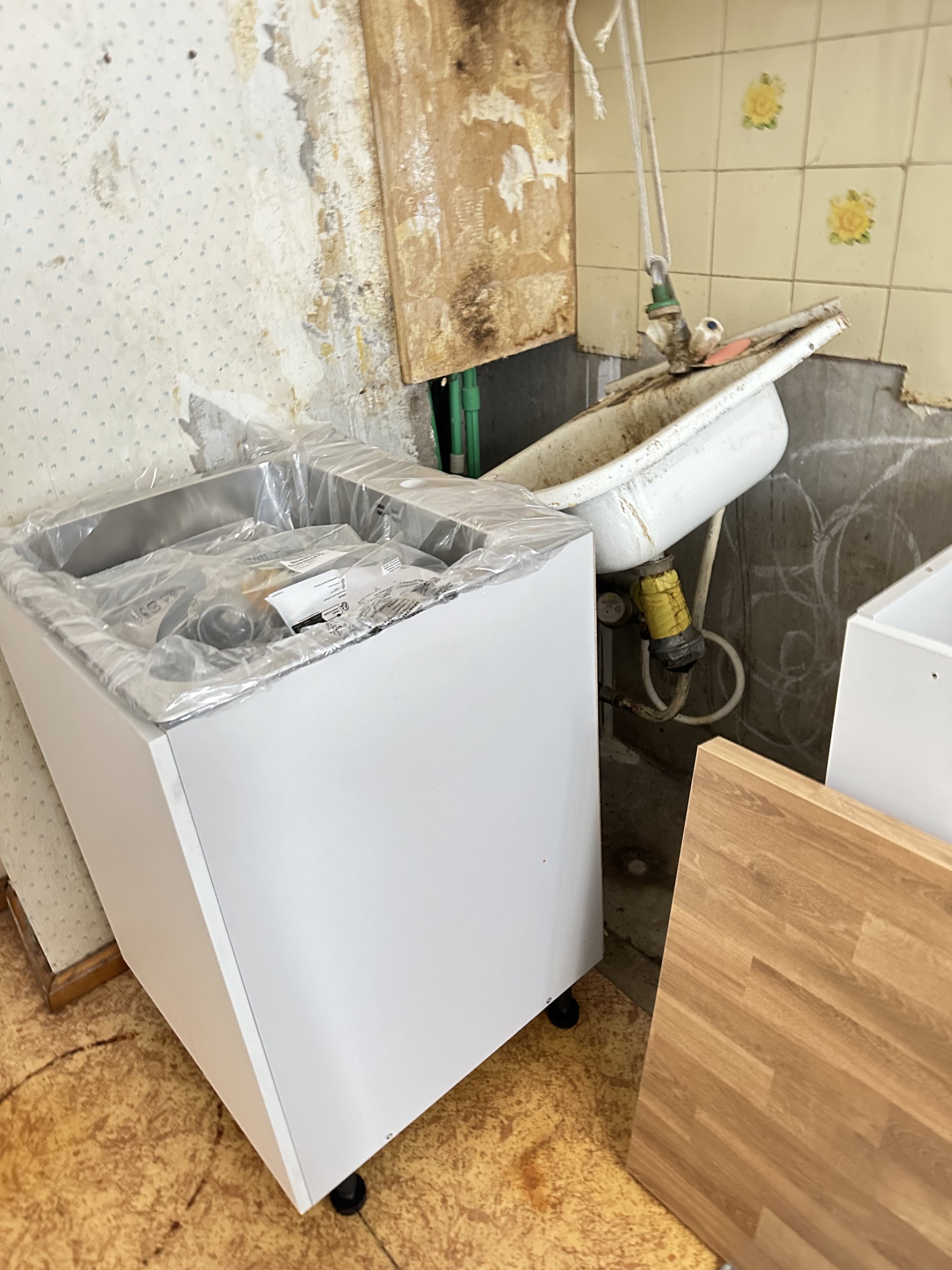 On vaja vahetada WC poti ja köögisegisti koos valamuga. Valamukappis torude jaoks on vaja auku teha. Samuti köögi valamu jaoks on vaja tööpinnas augu teha.