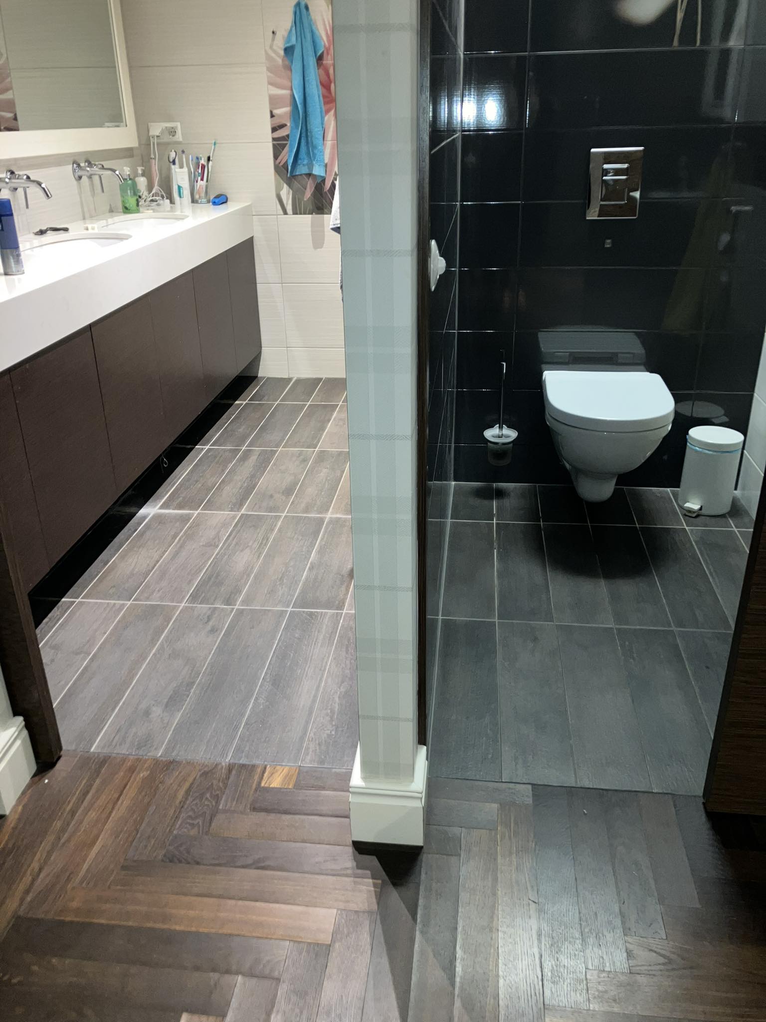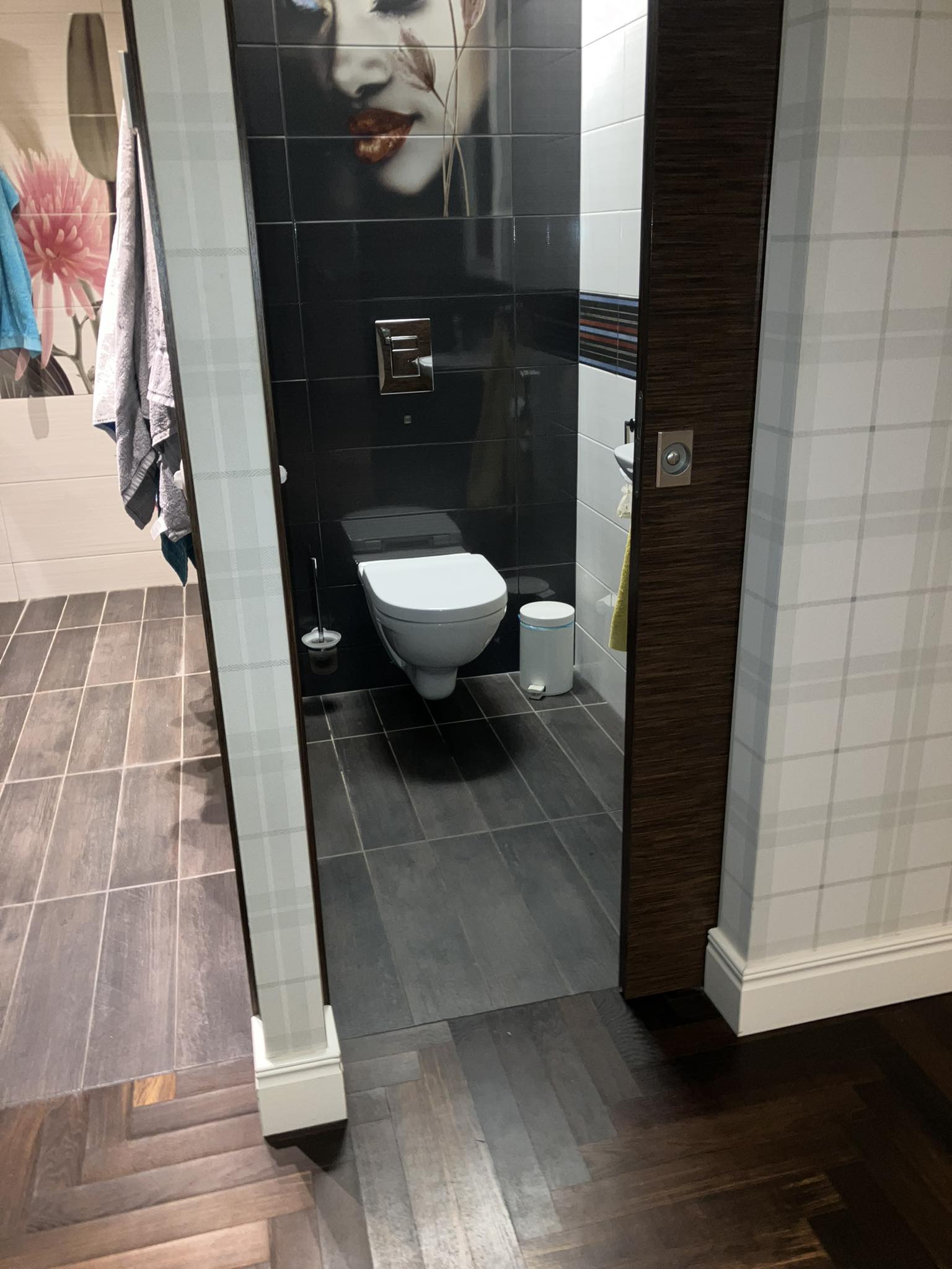 Kaks (ühelt poolt plaaditud) ukseava 10 cm laiemaks. Seestpoolt plaati lõigata. Põrandal plaaditud osa pikendada.