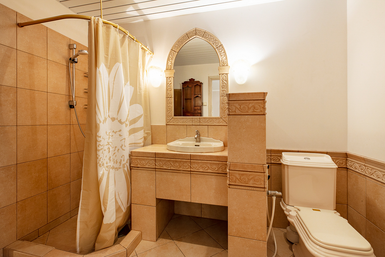 Vannituba 5,4 m2. Vanad plaadid eemaldada ja uutega asendada- plaadid dushinurgas ja valamu-wc taga, põrandal, ülejäänud seinad värvitud. Hetkel on seal sisseehitatud plaaditud valamukapp koos veidi kõrgema vaheseinaga mis tuleks lammutada, sellega seoses võib olla vajadus veidi torustikku liigutada (sinna sisse peidetud bidee vesi, millele tulek ilmselt seina peal leida uus koht).