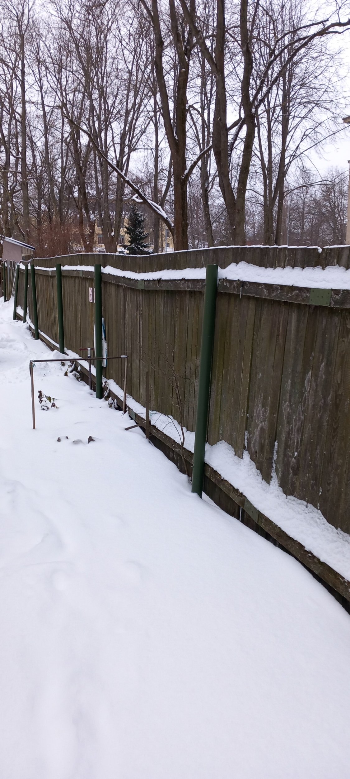 Vana 33 m piirdeaia lammutus ja uue ehitus. Metallpostid ja immutatud puit