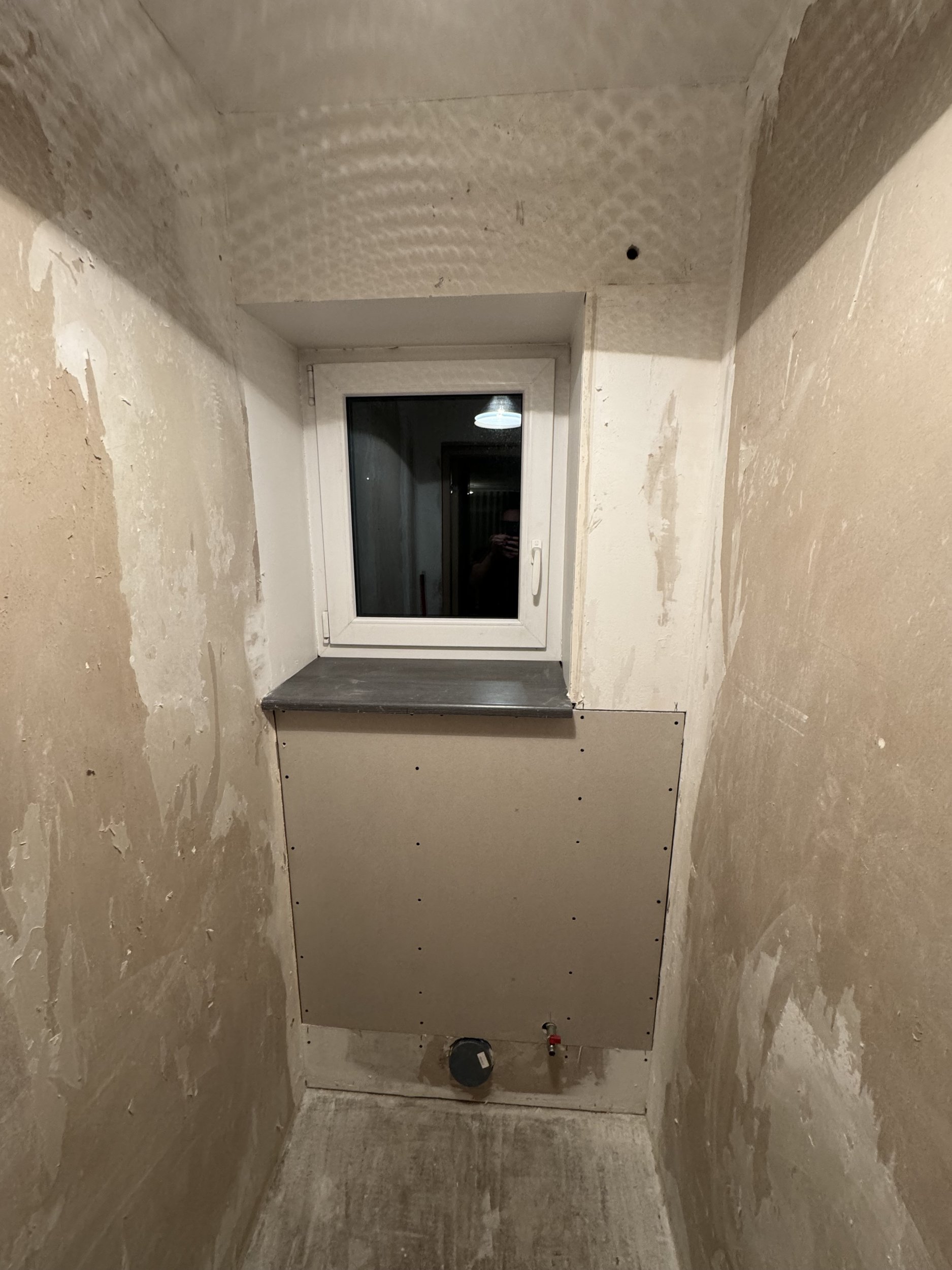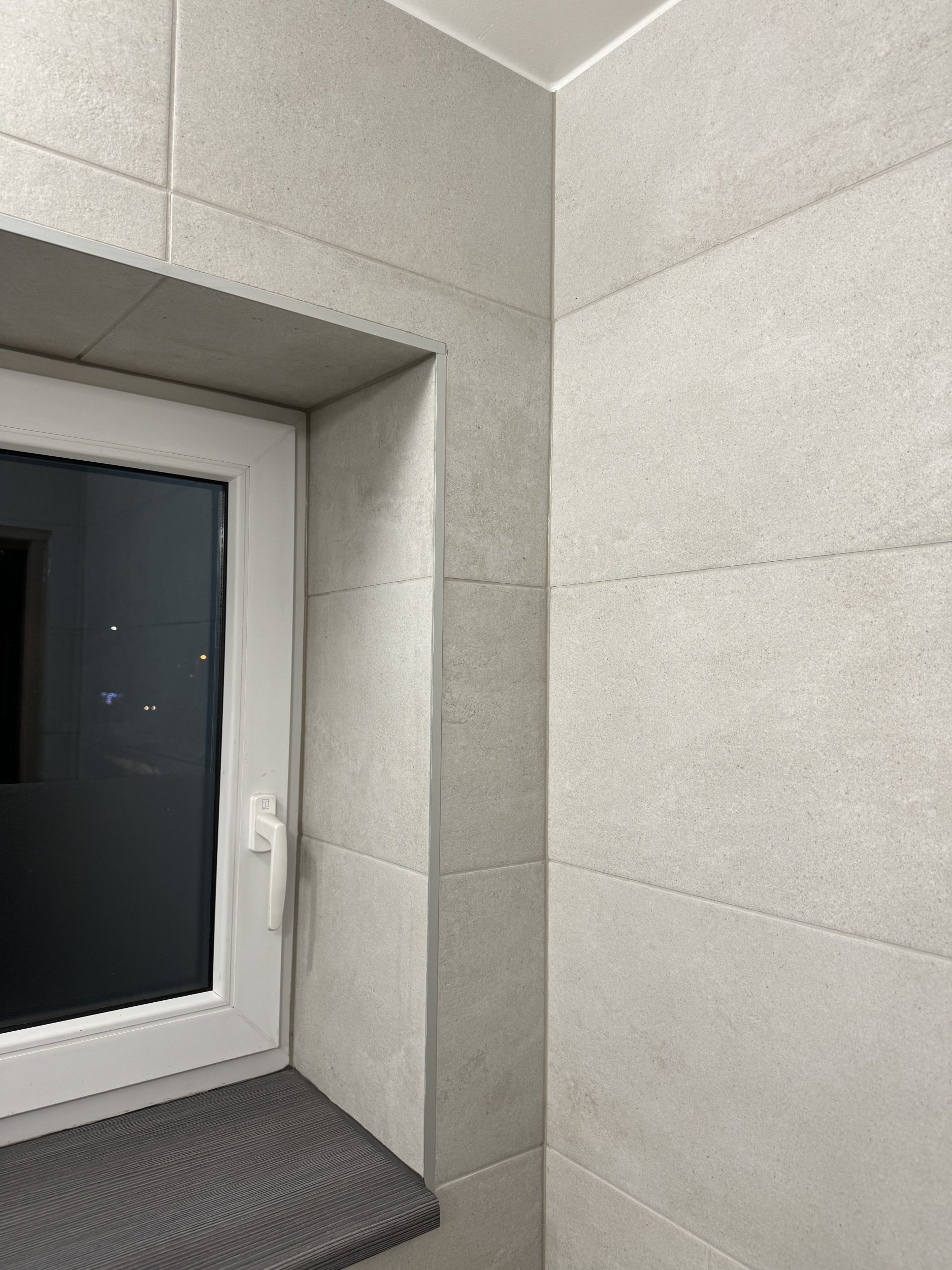 Tööde teostaja poolt vaja niiskustõke, plaatide seina kinnitamise mört, vuukide täitmine plaatidega samas toonis, sisenurkade silikoonimine, aknaümbruse alumiiniumliist nagu 2 viimasel pildil.