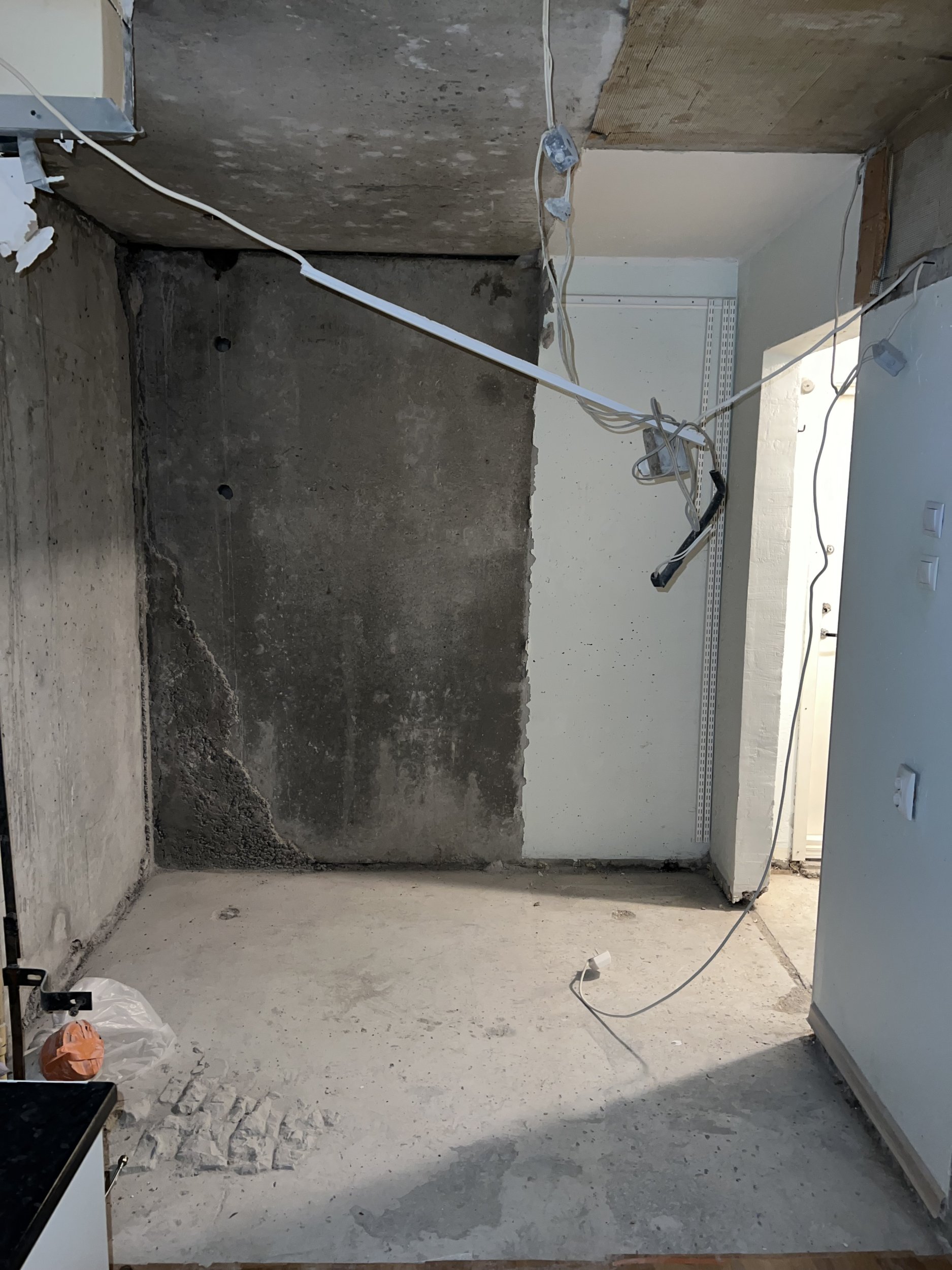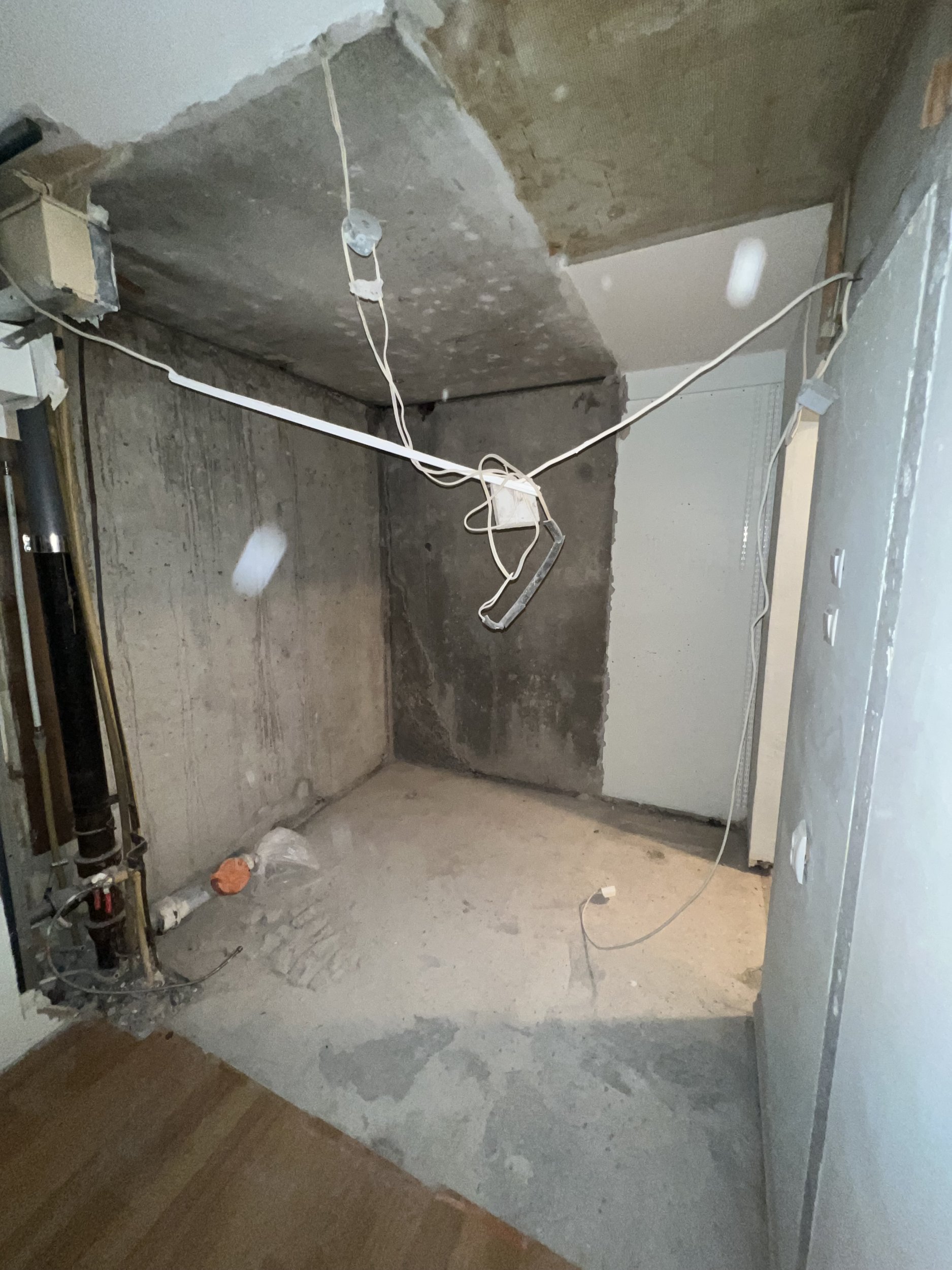 Vana WC+dušiboks välja lõhutud. Ehitada uus ruum (WC+duširuum koos, varasemalt olid eraldi).